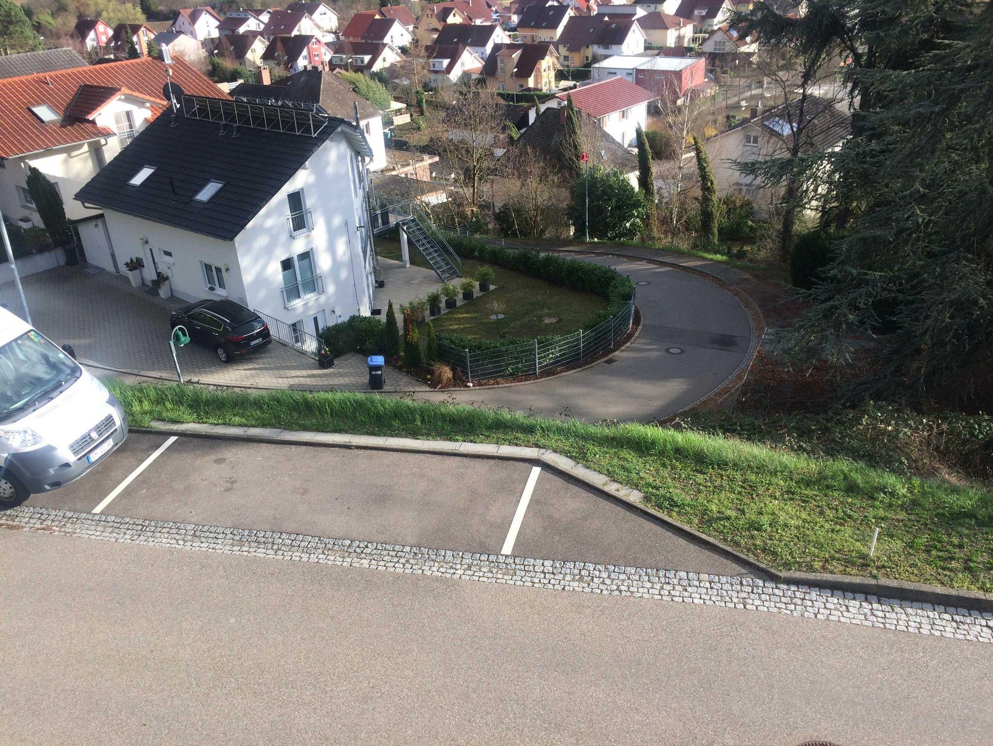 Parkplatz gegenüber des Hauses.