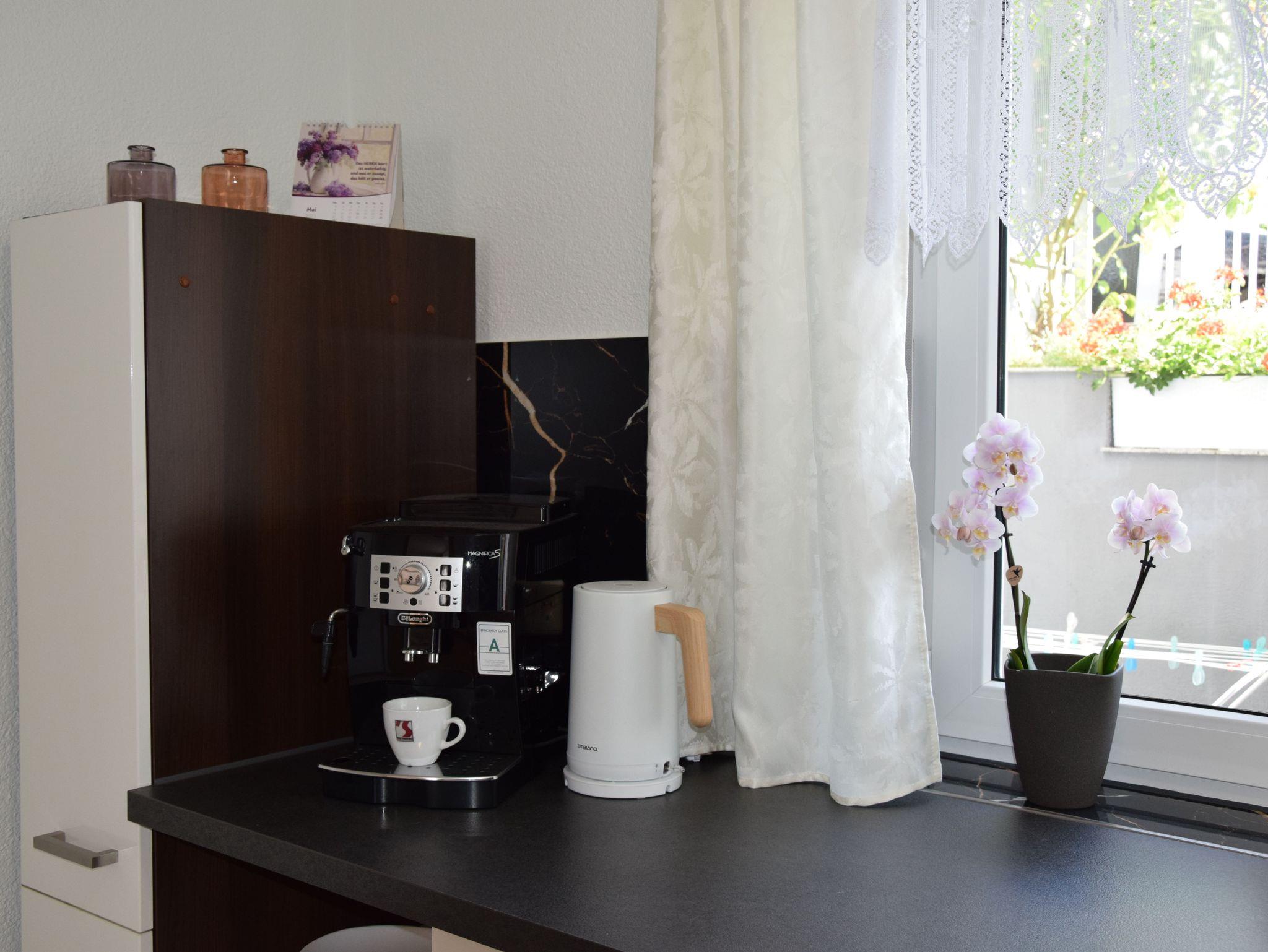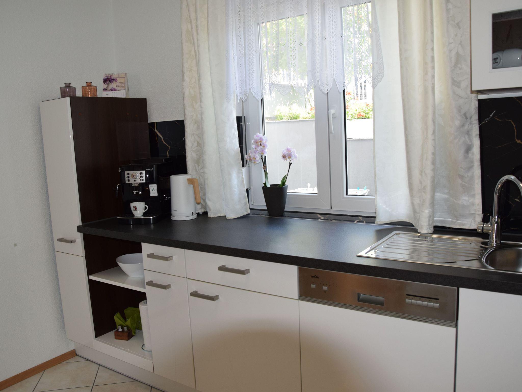 In der komplett ausgestatteten und modernen Küche mit Kochfeld, Kaffeevollautomat, Backoffen, Mikrowelle und Spülmaschine, können Sie sich Ihre eigenen Mahlzeiten zubereiten und genießen. Ein Essbereich für 4 Personen ist im Wohnbereich auch eingerichtet.
