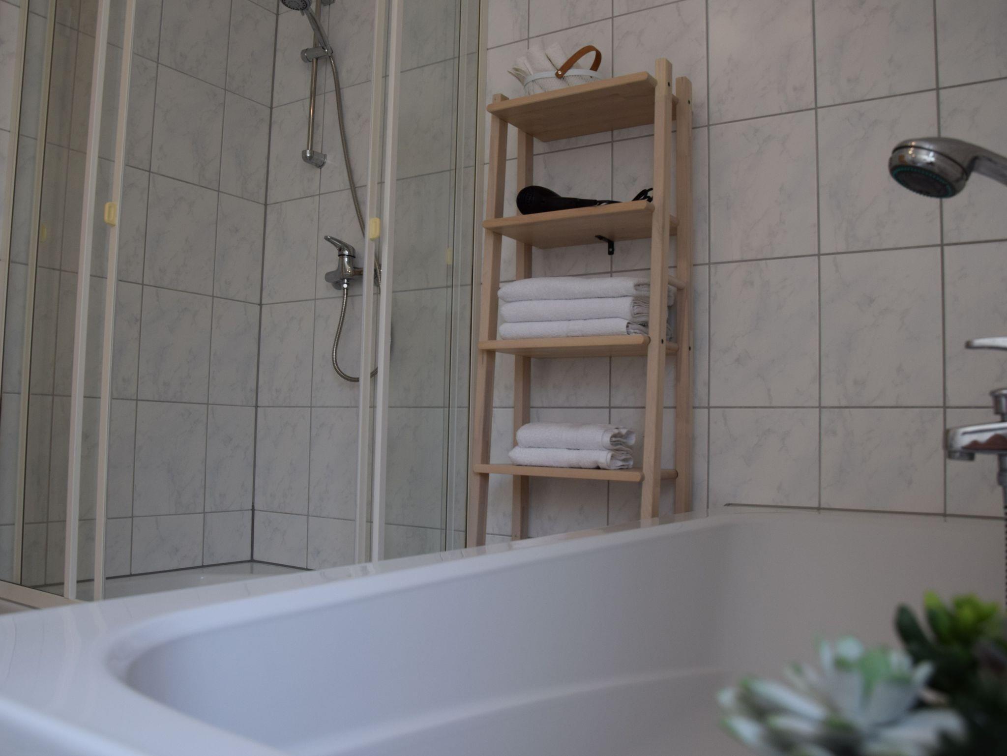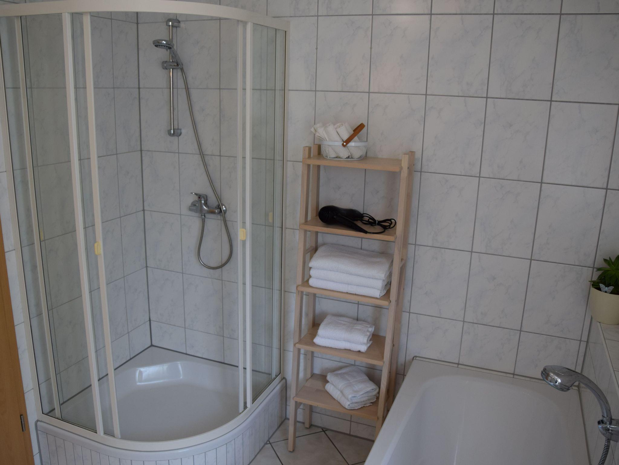 Dusche, Badewanne, Föhn, Hand- und Duschtücher, sowie Bettwäsche stehen ebenfalls zur Verfügung. Lassen Sie den Tag auf der gemütlicher Terrasse mit einem Glas Wein aus der Region ausklingen.