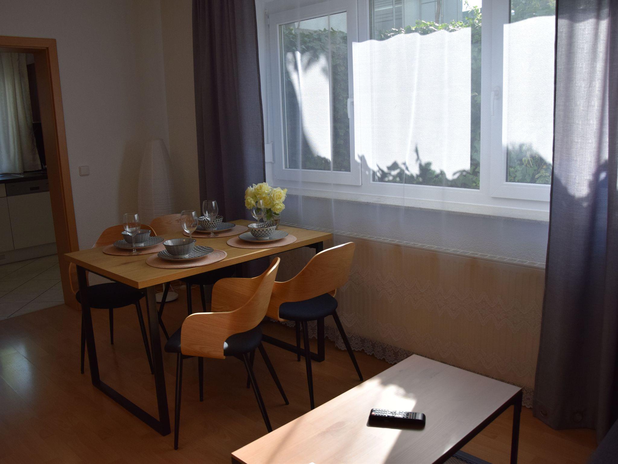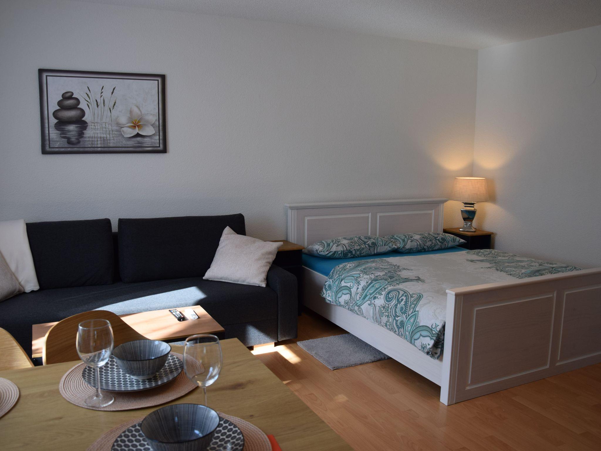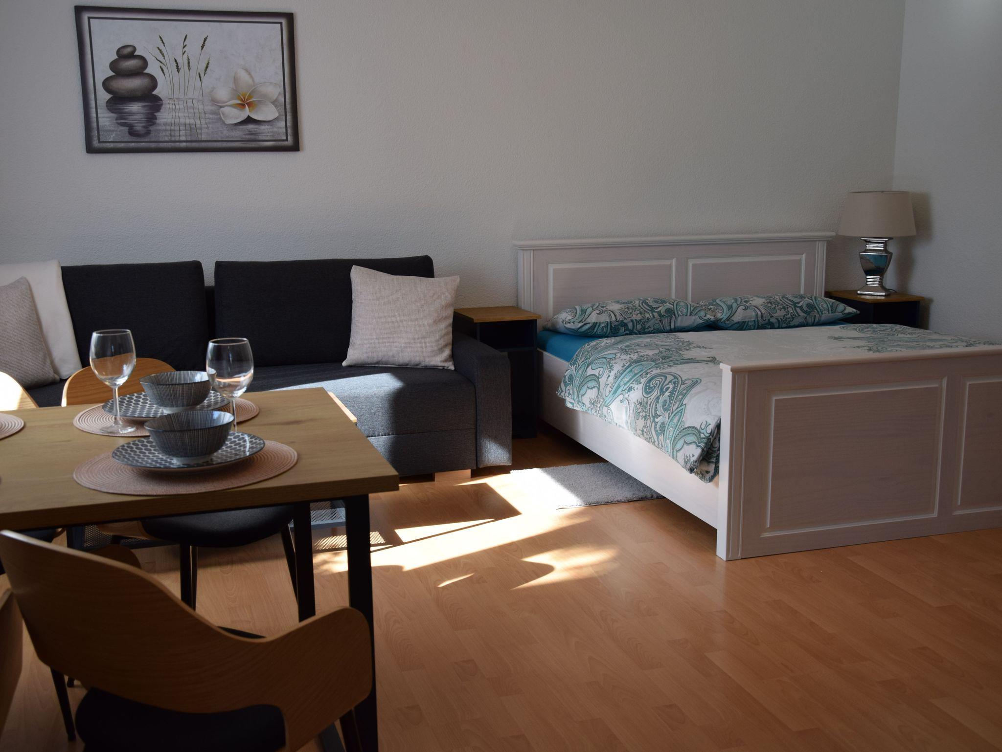 Die helle und modern eingerichtete Wohnung ist für max. 4 Personen ausgestattet. Im Wohnbereich sind ein Doppelbett (160cmx200cm) und ein Schlafsofa für 2 Personen vorhanden. Zur Ausstattung gehört auch ein Flachbild-SMART-TV.