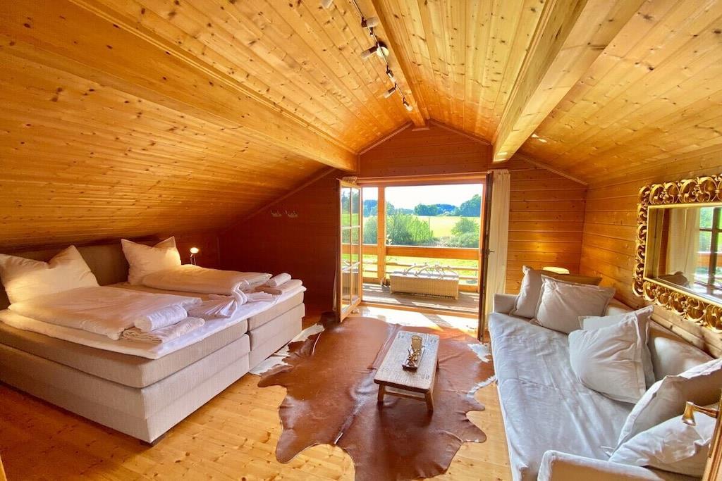 I øjeblikket er kun langtidsleje mulig: På grund af en igangværende juridisk tvist mod Lindaus distriktskontor ved forvaltningsdomstolen er lejligheden i øjeblikket kun tilgængelig til beboelse. Vi takker for din forståelse og holder dig gerne opdateret om sagens forløb. Alternativt har du mulighed for at købe hele feriehuset med et boligareal på over 250 m² på en rummelig grund på over 1.000 m². Dette giver dig mulighed for permanent at nyde din ferie i disse unikke omgivelser og designe huset helt efter dine individuelle ønsker. Et prøveophold kan naturligvis arrangeres, hvis du er seriøst interesseret i at købe. Det miljøvenlige træhus fra Baufritz har skinnet i ny pragt siden 2014. Vi renoverer huset og den udvendige facade med olie og opdaterer nogle af ferielejlighederne "Drømmeudsigt i Mollenberg" (nr. 76494) og "Oplev Luksus i Mollenberg" (nr. 48316). Vi tilføjer et nyt badeværelse i travertin natursten med gulvvarme og bruseniche til den øverste lejlighed, "Traumblick". Hvis du har spørgsmål om lejligheden, haven, beliggenheden, værelsesindretningen, booking, udflugtsmål osv., er du velkommen til at ringe til mig når som helst for at drøfte alle detaljerne personligt. WhatsApp er også muligt! Vi tilbyder en komfortabel ferielejlighed nær Lindau ved Bodensøen i grænsetrekanten. Ideel, hvis du vil slappe af fra din hektiske hverdag. Der er havemøbler i ægte teaktræ i haven. Du kan virkelig finde ro om aftenen ved husets grill og bålplads. Huset har en stor og lys stue og spisestue med et separat soveværelse på øverste etage. Et hyggeligt og lyst køkken med køleskab, fryser, ovn, komfur og en ny opvaskemaskine venter på dig. Og det absolutte højdepunkt er badeværelset i natursten. Her har vi lagt særlig vægt på eksklusive materialer. Et moderne badeværelse af høj kvalitet med tyrkisk travertin i guld og italiensk marmor.
