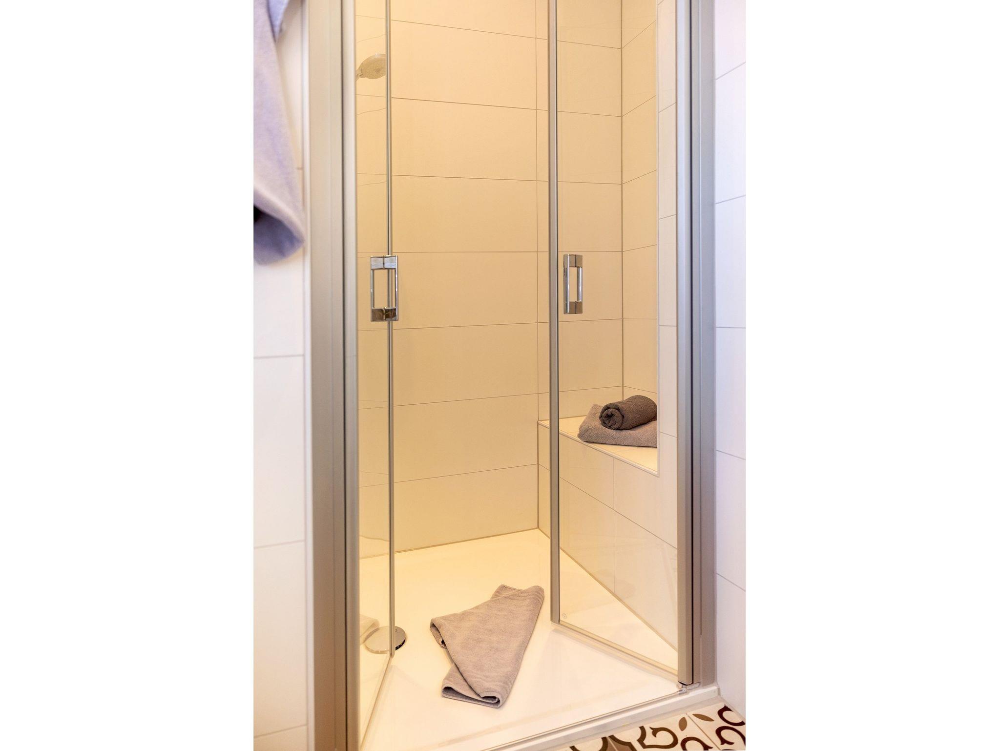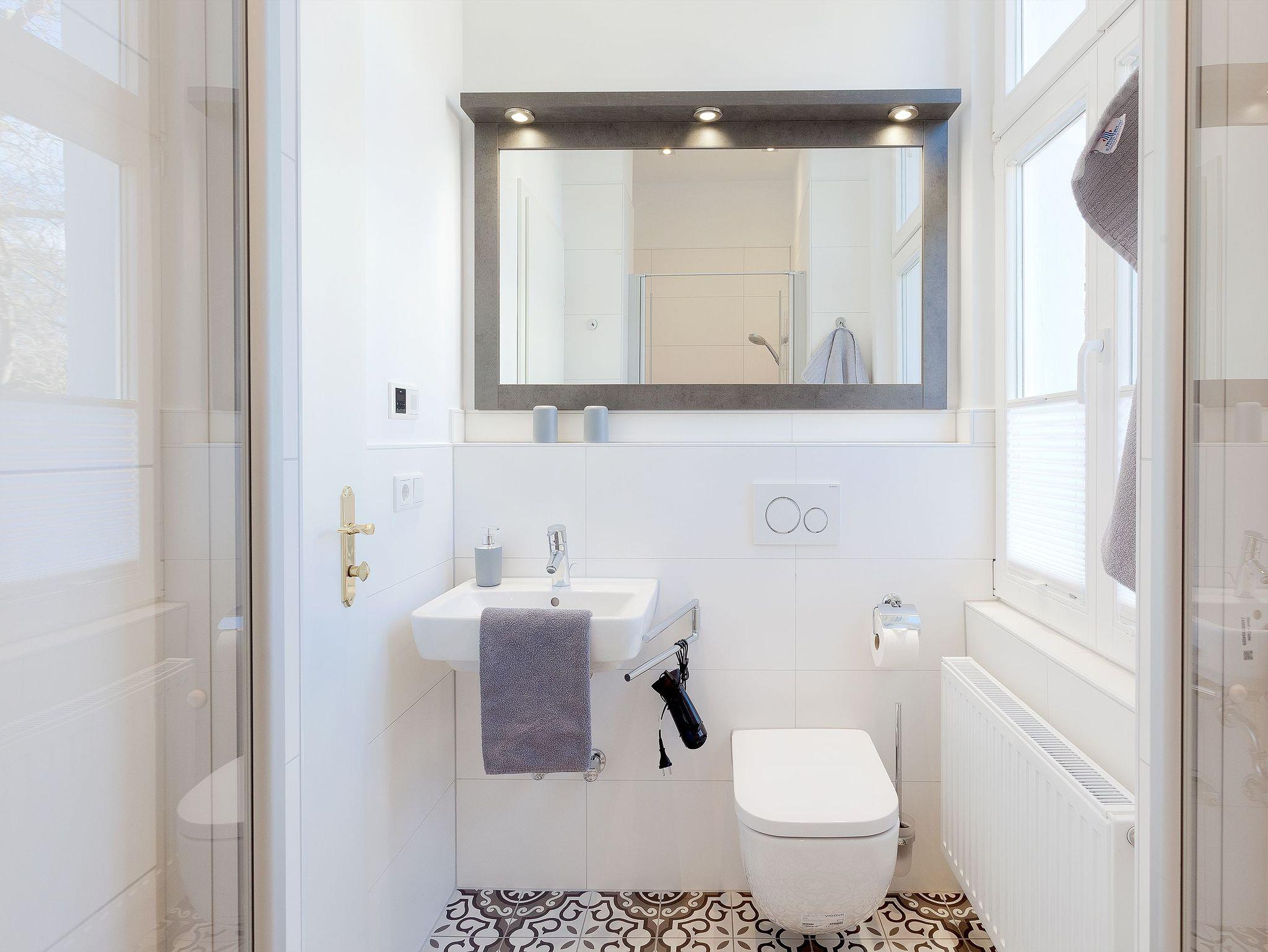 Das Tageslichtbad, ebenfalls frisch renoviert, ist ausgestattet mit einer Dusche, WC, Waschbecken, Handtuchheizkörper und einem Haartrockner ideal, für einen guten Start in den Tag.