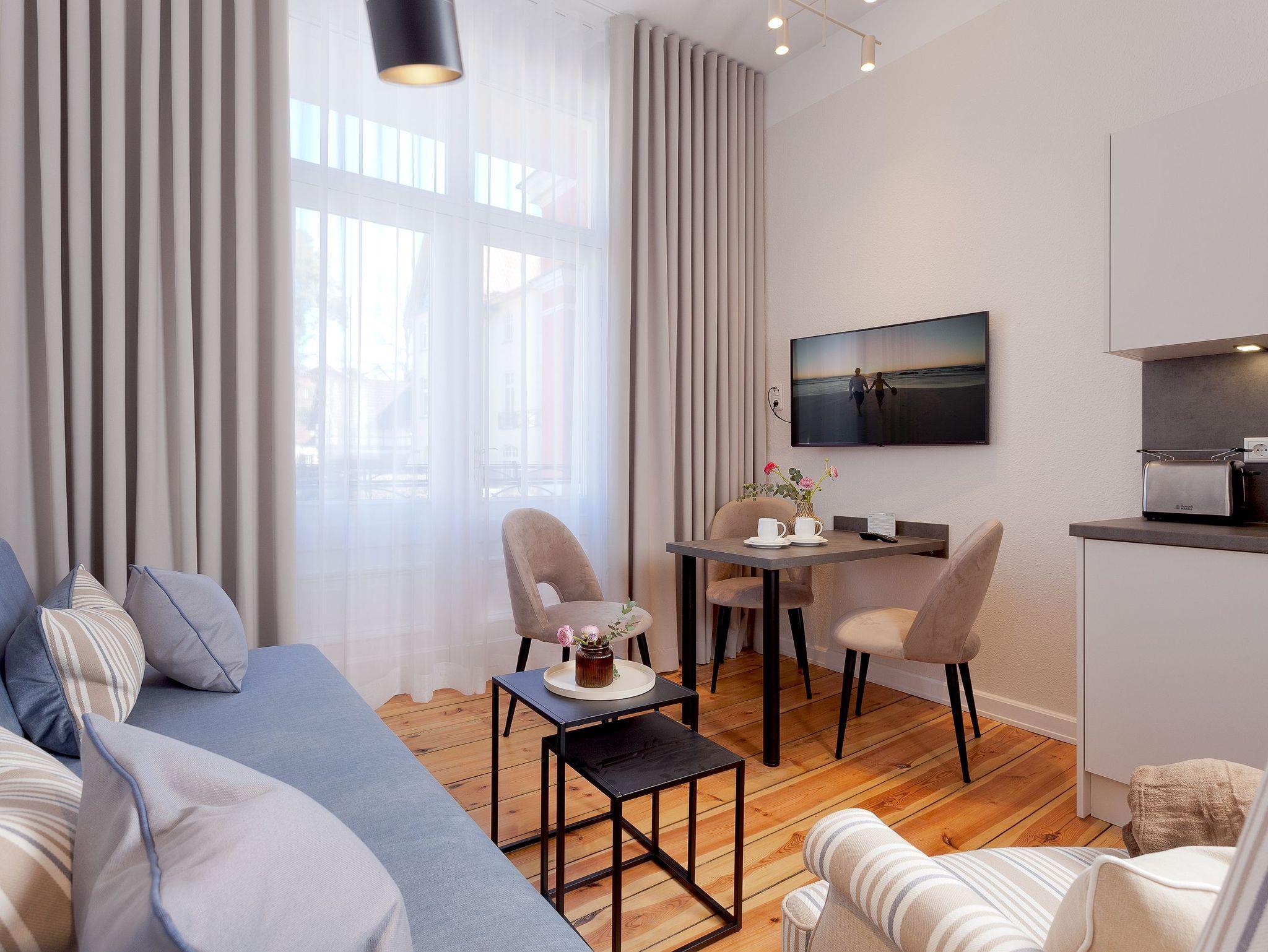 Lassen Sie sich vom Charme der Ostsee mit ihrem breiten, weißen Sandstrand im reizvollen Seebad Heringsdorf verzaubern. Zentral und strandnah gelegen finden Sie in unserer Bädervilla auf der Sonneninsel Usedom den idealen Ort für Ihre Entspannung. Ab dem ersten Urlaubstag sorgt die gemütliche und moderne Einrichtung des Hauses für Erholung. In der sonnenreichsten Region Deutschlands bieten wir Ihnen 12 flexibel buchbare und renovierte Appartements für 2 bis 4 Personen. Auch für Ihre Ausflugsmobilität ist gesorgt: Parkplätze direkt am Haus oder die abschließbare Fahrradunterbringung können kostenfrei genutzt werden.