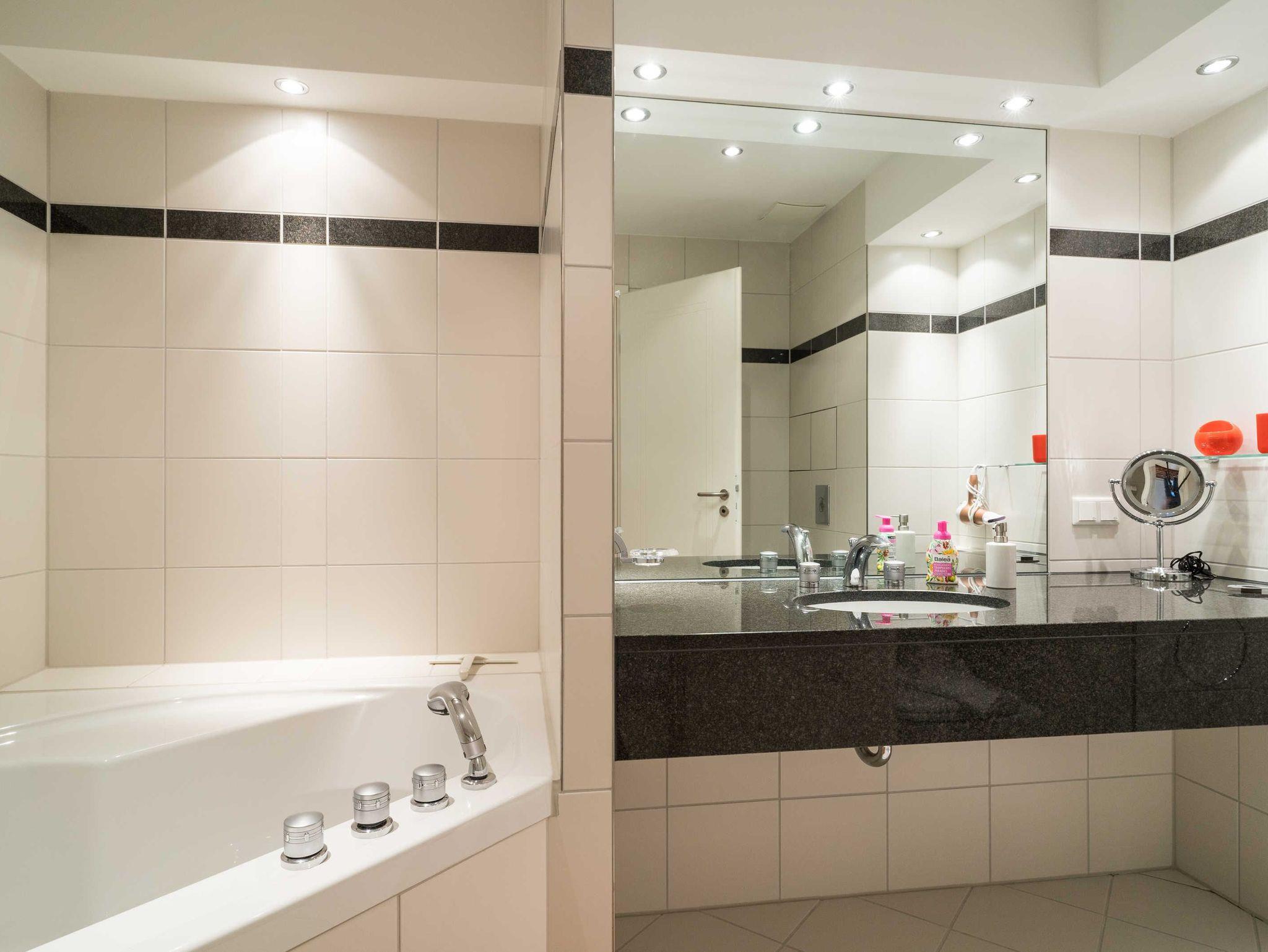 Im großen Wohnzimmer erwartet Sie eine einladende Sitzecke mit einer Ledercouch, Kabel-TV, Video/DVD und eine Radioanlage mit CD-Player. Der separate Esstisch mit Stühlen bietet Platz für gesellige Abende. Die Wohnung verfügt über zwei gemütliche Schlafzimmer: eines mit einem komfortablen Doppelbett und das andere mit einer praktischen Schlafcouch (1,40 m breit) und Kabel-TV. Zwei moderne Bäder - eines mit Dusche/WC und das andere mit Wanne/WC - runden das Angebot ab. Die Fußbodenheizung sorgt für wohlige Wärme und die komplett ausgestattete separate Küche mit Geschirrspüler, Ceranherd, Backofen, Mikrowelle und Kühl-/Gefrierkombination lässt keine Wünsche offen.