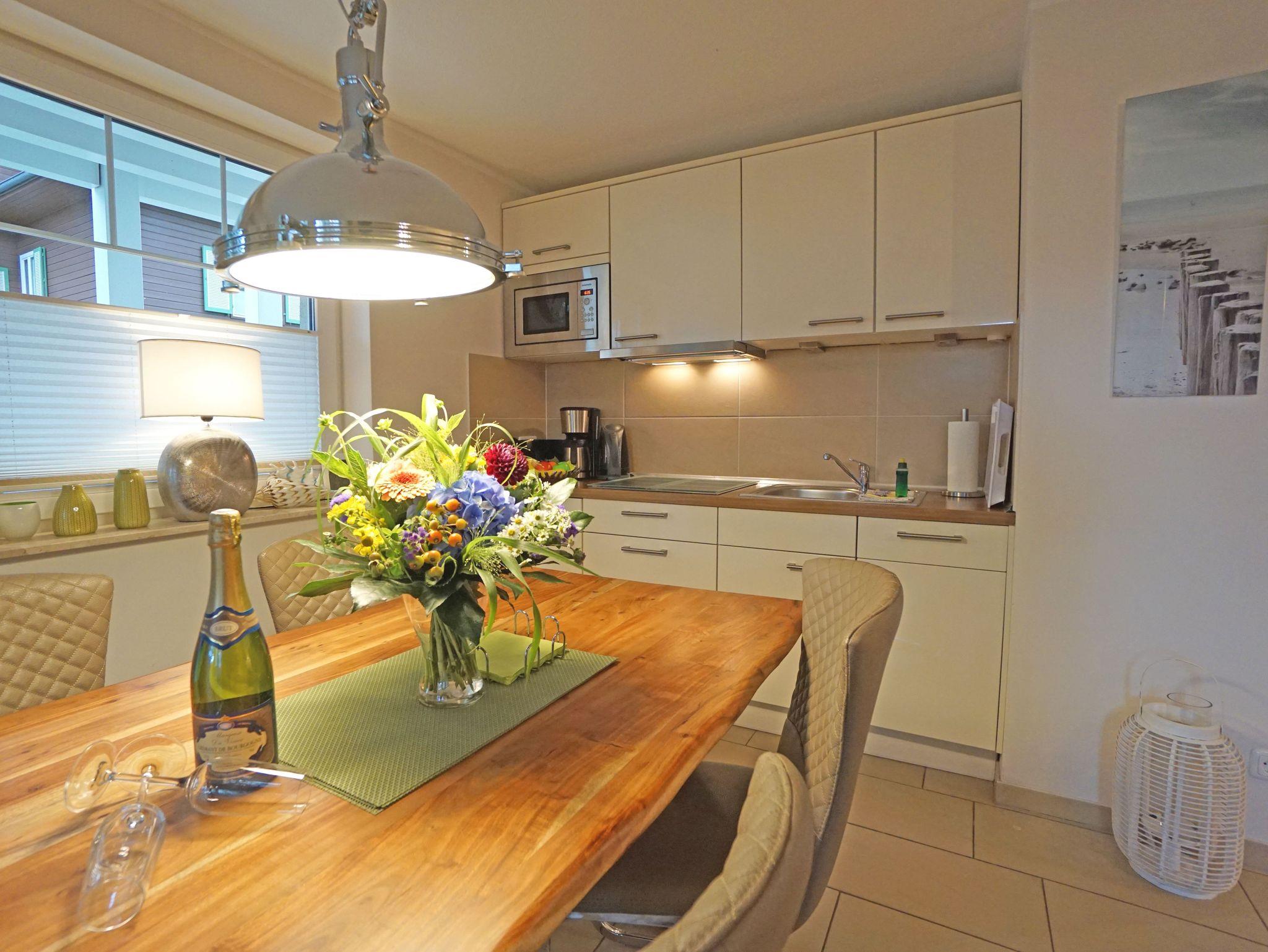 Die Wohnung ist hell gefliest und verfügt in allen Räumen über eine Fußbodenheizung. Ein geräumiges Bad mit Fenster und ebenerdiger Dusche/WC u. Föhn. Alle Fenster haben Plisseejalousien, sowie hochwertige Insektenschutztüren. In der Tiefgarage befindet sich ein kostenloser Stellplatz (bitte nur rückwärts einparken, da die Tiefgarage sehr eng ist). Ein Strandkorb (von Mai bis September) an dem am Haus befindlichen Strandabschnitt steht Ihnen kostenfrei zur Verfügung. Die Wohnung verfügt über einen direkten Strandzugang für seine Gäste.