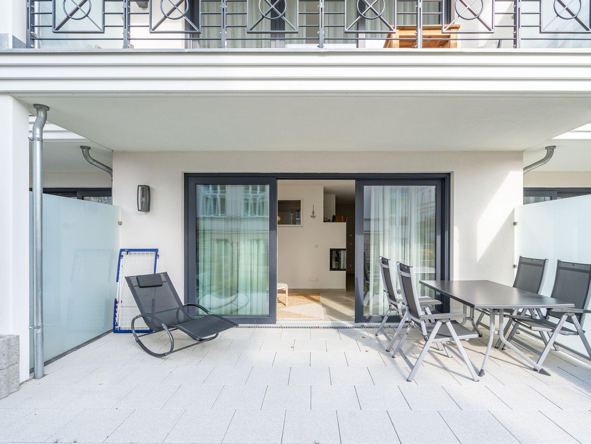 Nur 50m vom Strand entfernt und in einer kleinen Nebenstraße gelegen, empfängt Sie unser neues Domizil Quartier am Strand. Als zweites Objekt am Platz direkt an der schönen Strandpromenade gelegen, fügt sich die Anlage stilvoll zwischen Bäderstilvillen und Strandumgebung ein. Die insgesamt 9 Appartements und 2 Penthouses verfügen über helle und modern eingerichtete 2 bis 3 Zimmer. An kühleren Tagen sorgen Saunen und Kamin, die zu jedem Appartement gehören, für Entspannung in Ihrem Urlaub. Dem Klang der Wellen können Sie bequem von den Terrassen, Balkonen und Dachterrassen aus zuhören, denn jedes Appartement besitzt einen separaten Außenbereich. Der Blick auf die Ostsee ist Ihnen aus einigen Appartements möglich, aus den Penthouses garantiert. Offene Wohnbereiche und voll ausgestattete Küchen komplettieren das neue Objekt Quartier am Strand. Zudem gibt es eine hauseigene Tiefgarage (Einfahrthöhe 2,05 m) sowie einen Außenstellplatz (für Appartement 3), so dass ein eigener PKW-Stellplatz garantiert ist. Zu den weiteren Annehmlichkeiten des Objektes zählt ein Fahrstuhl, der Sie von der Tiefgarage bequem bis in die Etage Ihres Urlaubsdomizils leitet. Kostenfreies W-Lan rundet das Domizil ab. Wir wünschen Ihnen einen schönen Urlaub!