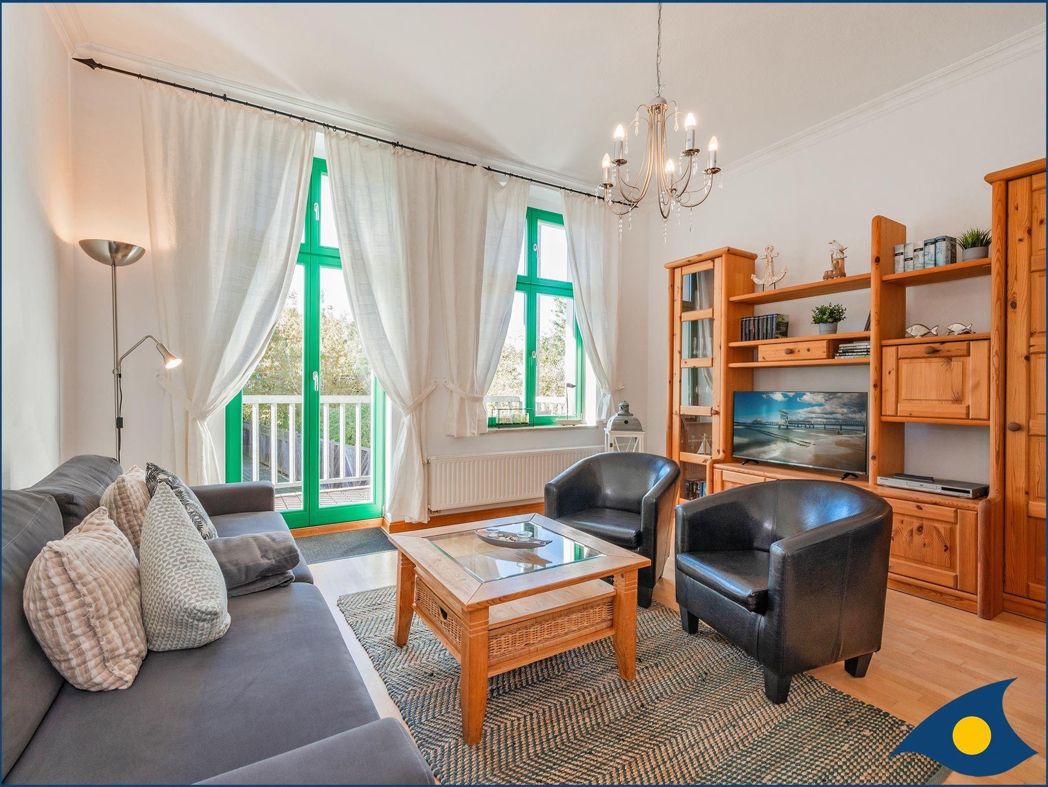 Vom großzügigen Wohnzimmer gelangen Sie auf den Balkon, auf dem zwei Personen bequem Platz finden. Ein Schlafsofa im Wohnzimmer bietet die Möglichkeit der Aufbettung für die 3. und 4. Person.