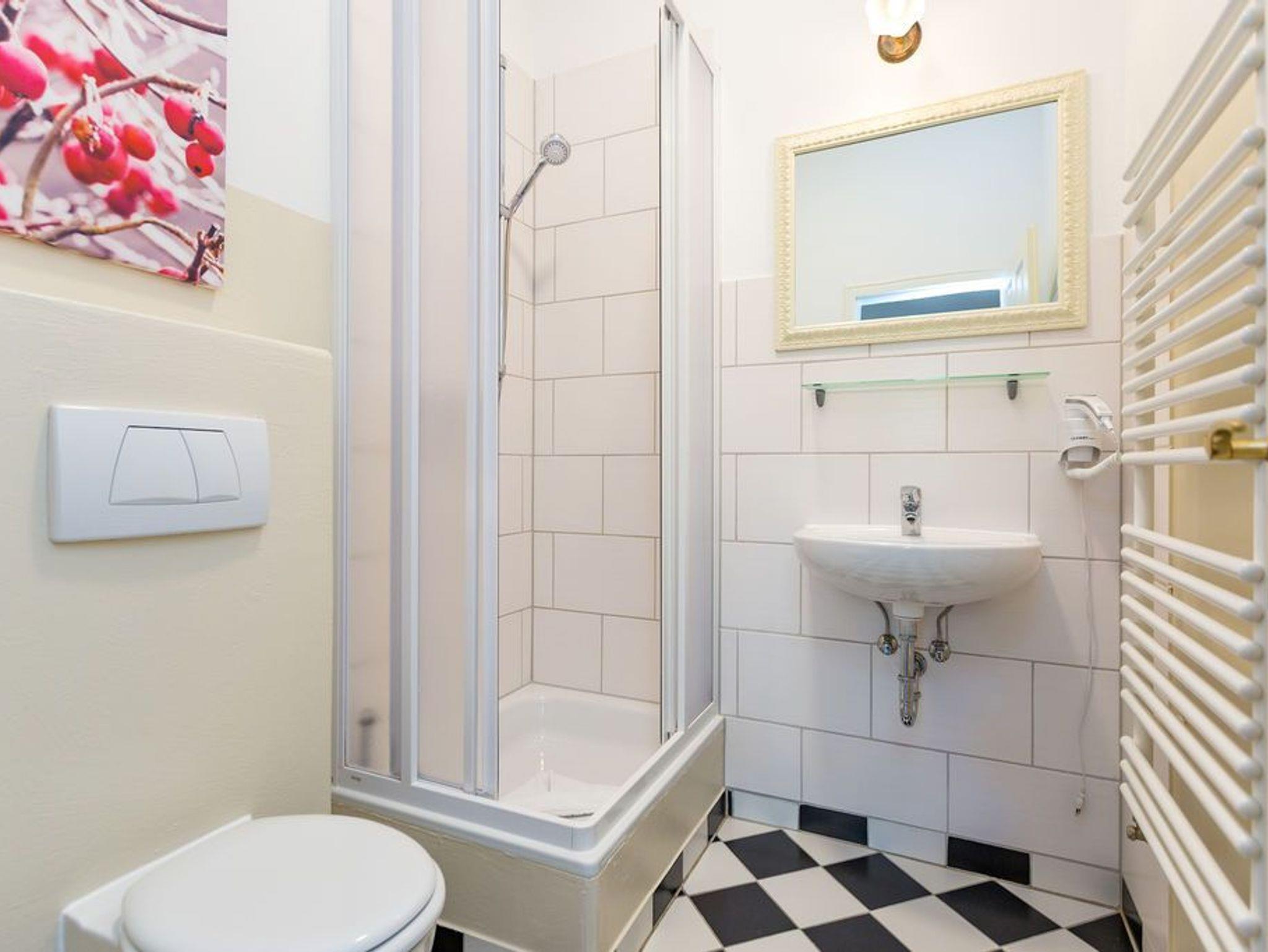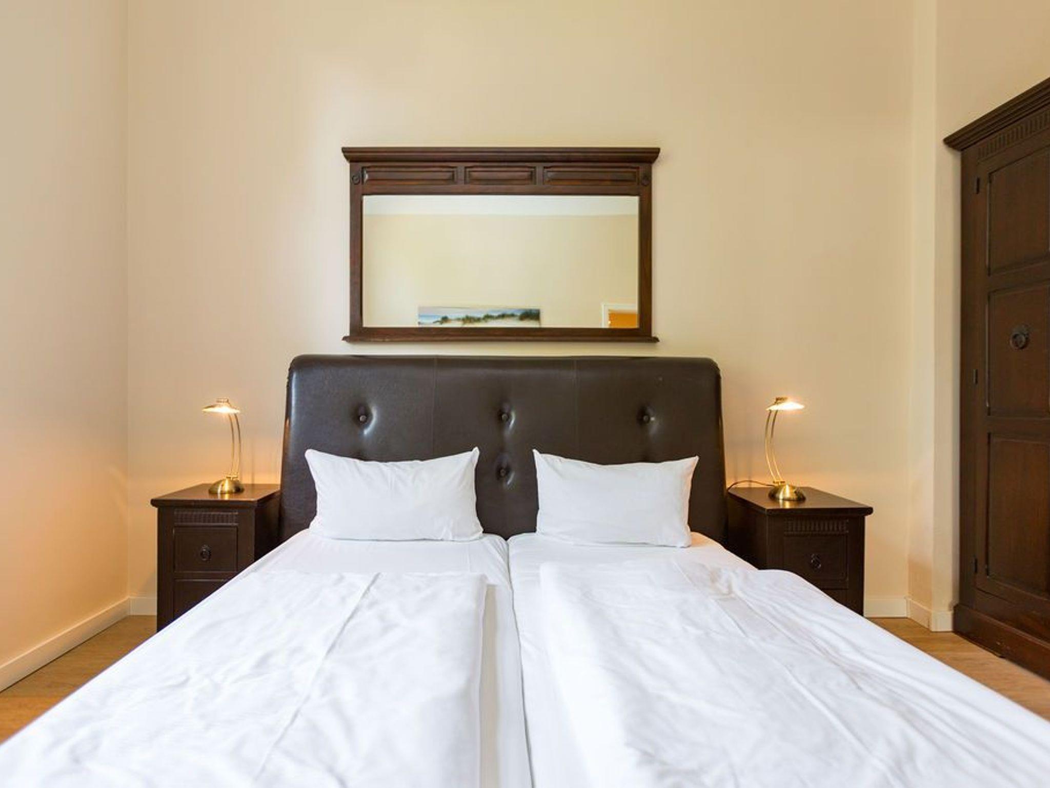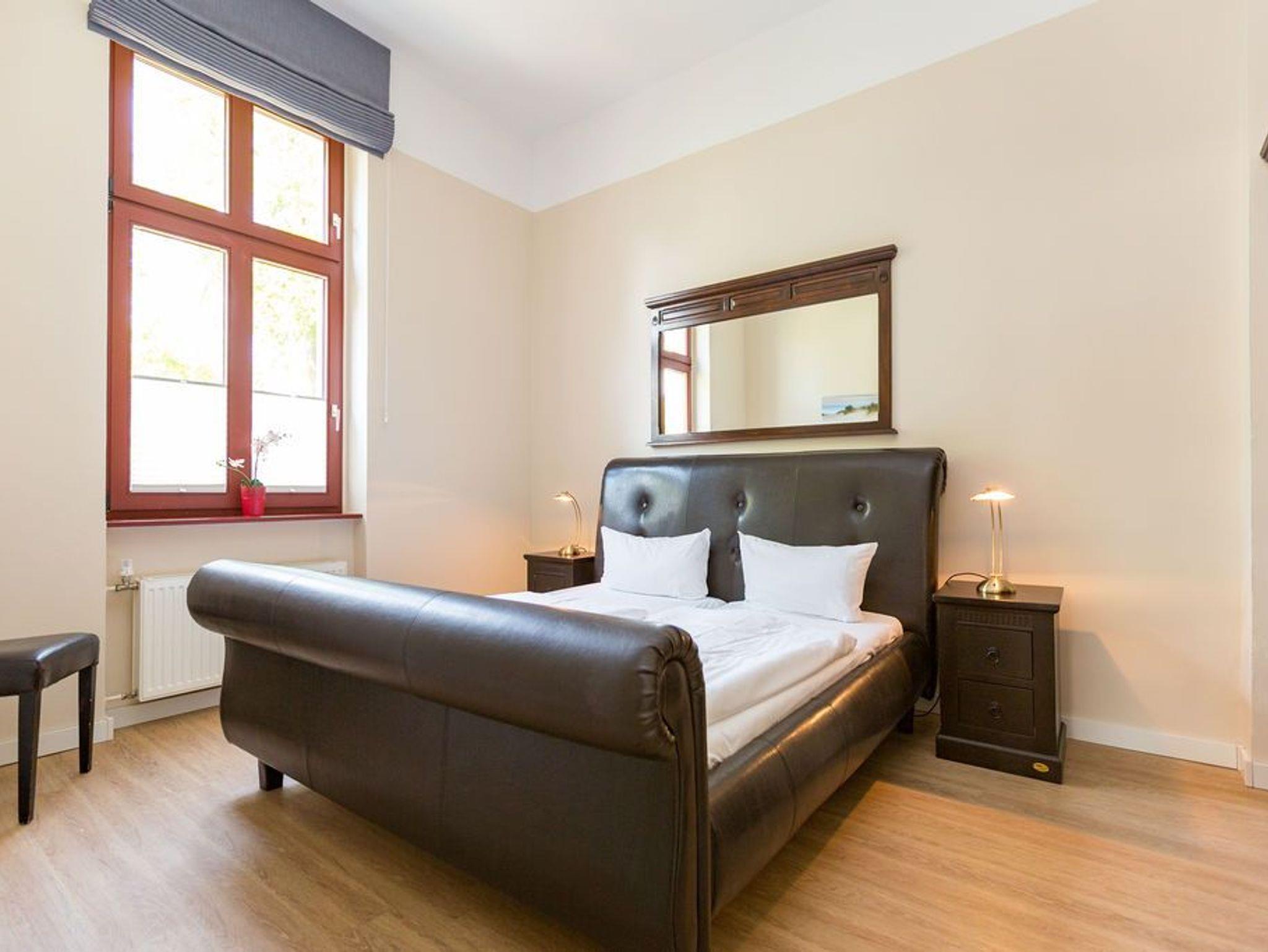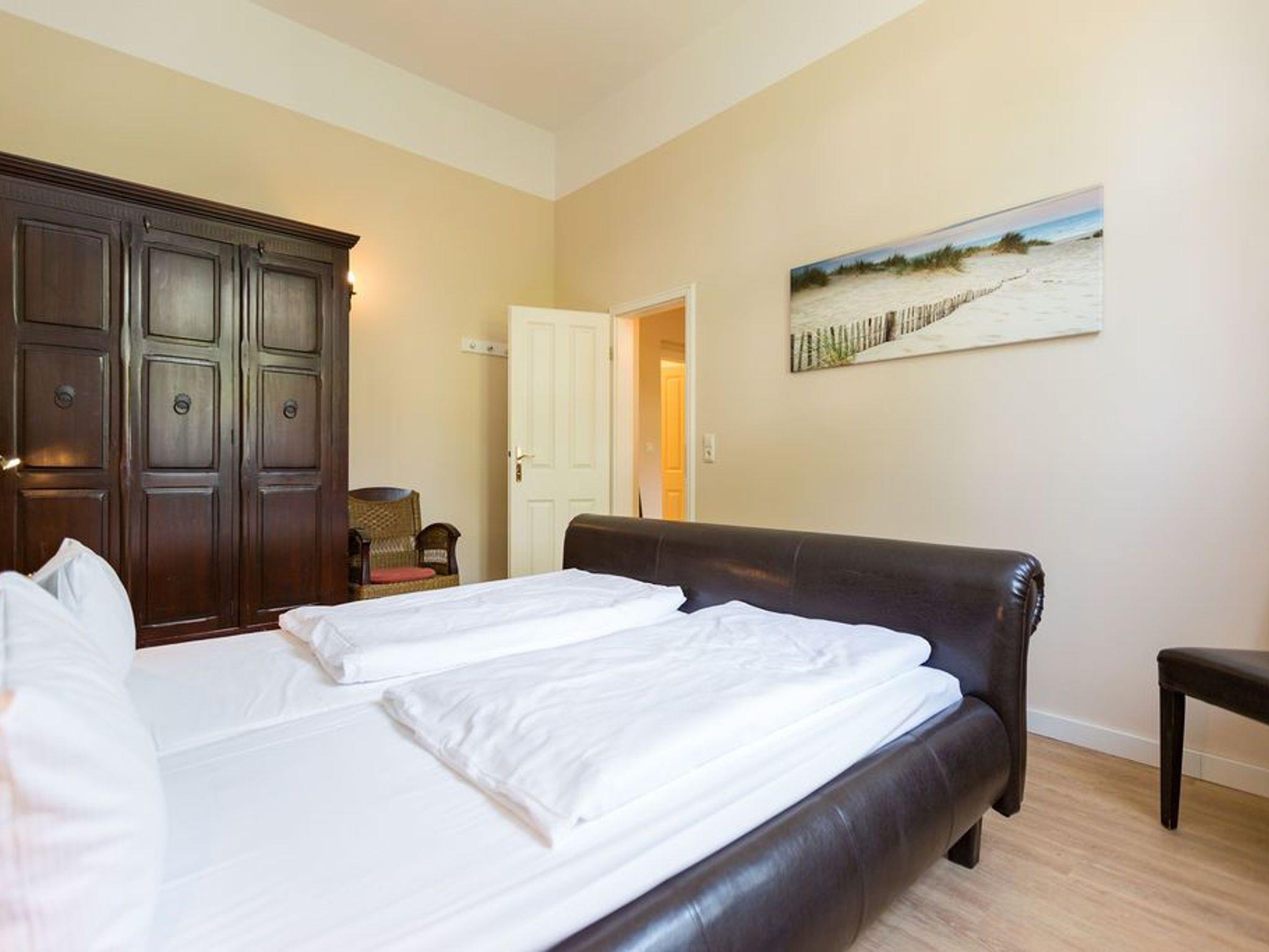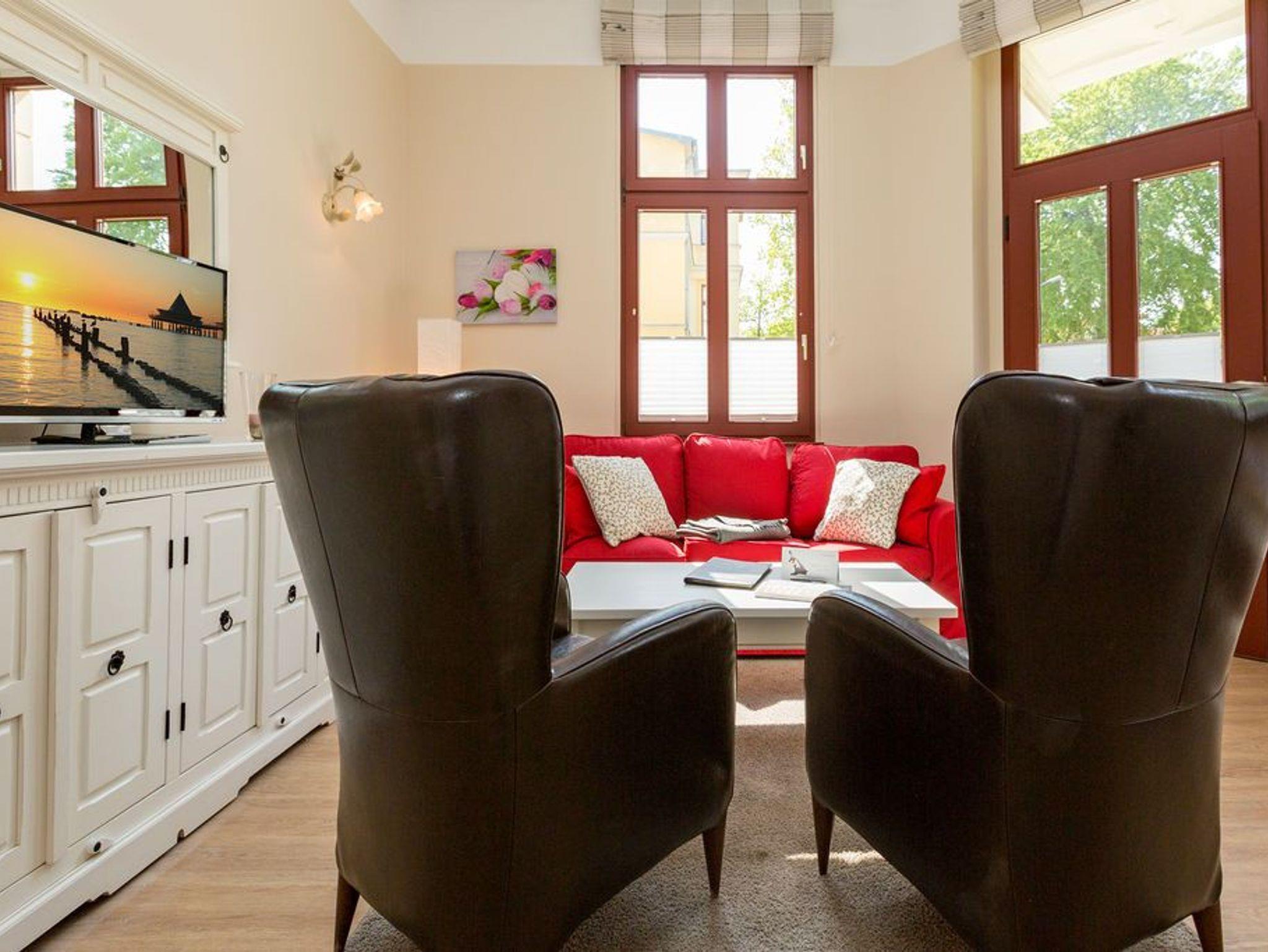 Diese traumhafte 3-Raum-Ferienwohnung begrüßt Sie Hochparterre im Kaiserbad Heringsdorf! Mit einer großzügigen Fläche von 60 qm bietet sie ausreichend Platz für bis zu 4 Personen und lädt zu einem unvergesslichen Urlaub ein. Das Wohnzimmer ist der perfekte Ort, um gemütliche Abende zu verbringen. Hier finden Sie eine bequeme Sitzgruppe und einen Fernseher, der zum Entspannen und Ausruhen einlädt. Die angrenzende Küchenzeile ist mit allem ausgestattet, was Sie zum Kochen und Zubereiten köstlicher Mahlzeiten benötigen. Ein Essplatz rundet das Wohnzimmer ab und schafft einen gemütlichen Raum für gemeinsame Mahlzeiten. Die Ferienwohnung verfügt über zwei Schlafzimmer, die Ihnen einen erholsamen Schlaf garantieren. Neben einem komfortablen Doppelbett im ersten Schlafzimmer, erwarten Sie im zweiten Schlafzimmer zwei Einzelbetten (0,90m x 2,00m). Egal ob Sie als Paar reisen oder mit Freunden, hier finden Sie den perfekten Rückzugsort. Das Badezimmer ist mit einer Dusche und einem WC ausgestattet. Darüber hinaus verfügt die Wohnung über eine kleine Terrasse, auf der Sie entspannte Momente im Freien verbringen können. Für Ihren Komfort sind die Betten bei Ihrer Anreise bereits bezogen und Handtücher liegen für Sie bereit (Erstausstattung). Darüber hinaus steht Ihnen unser kostenfreies WLAN-Netzwerk im gesamten Haus zur Verfügung. Ein weiteres Highlight ist der PKW-Stellplatz direkt am Haus.