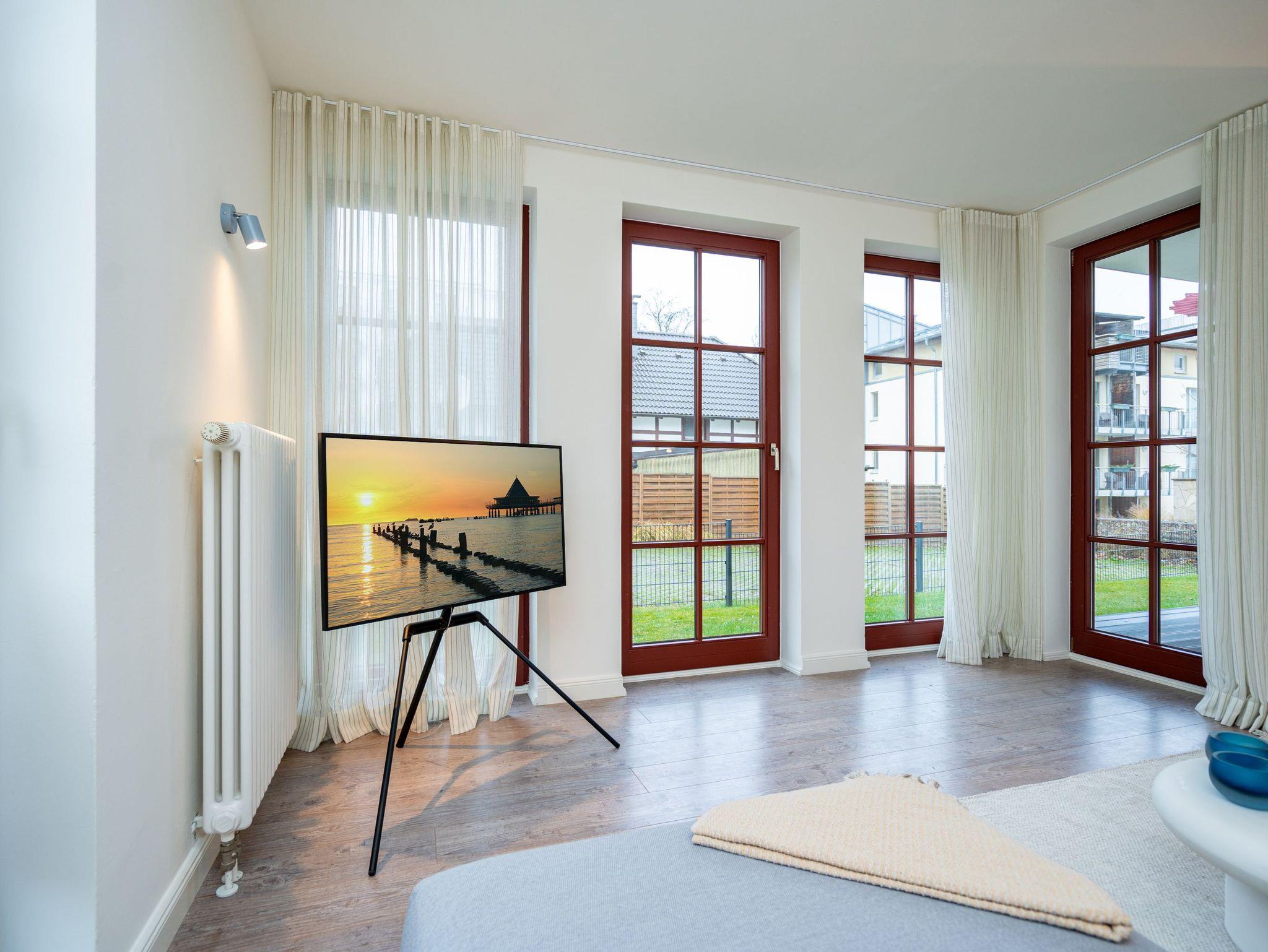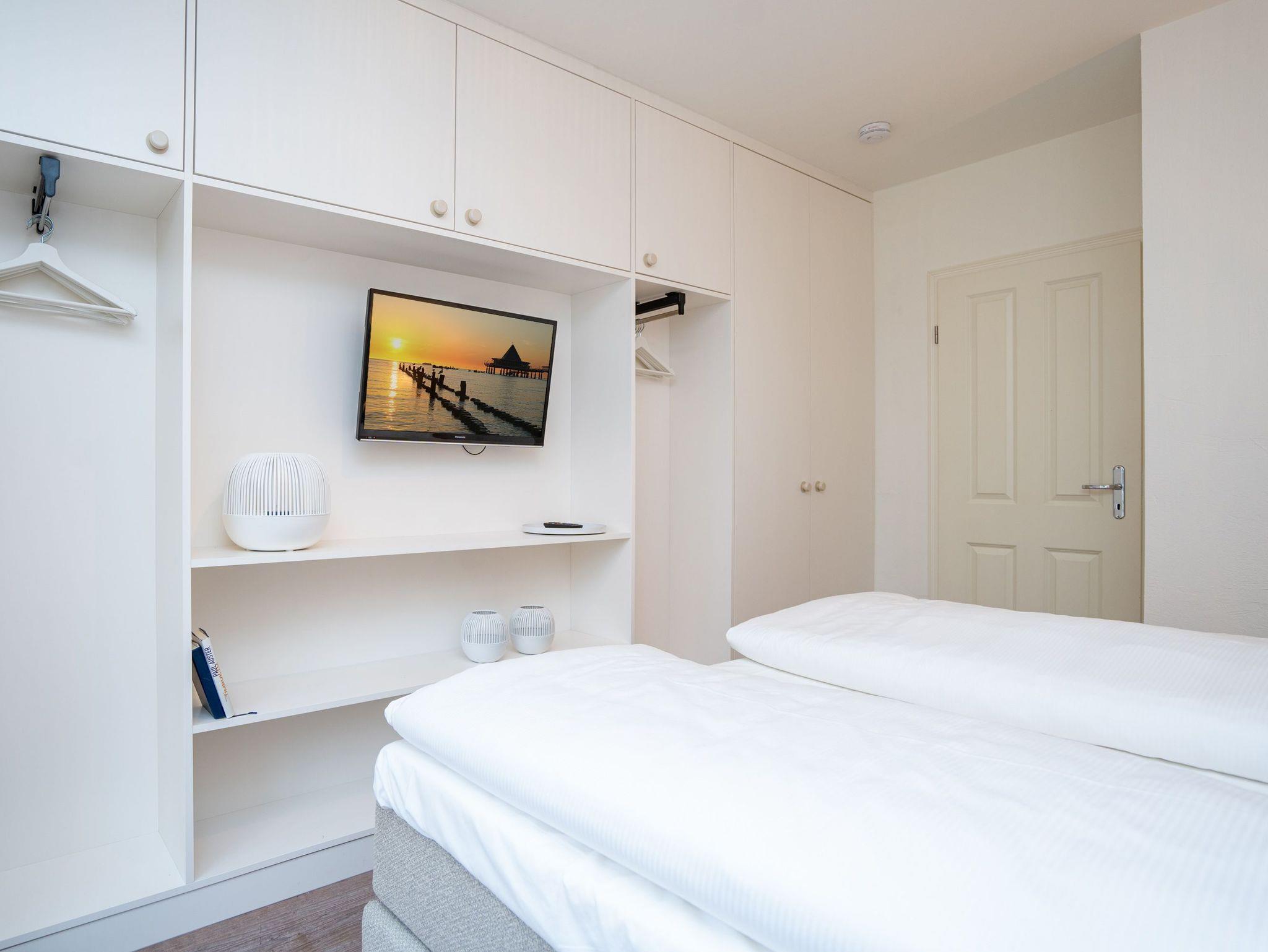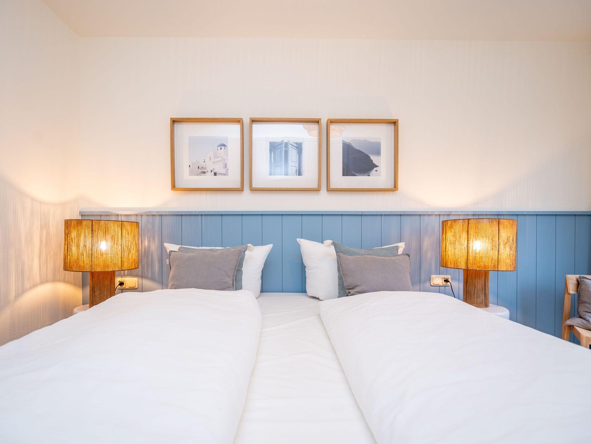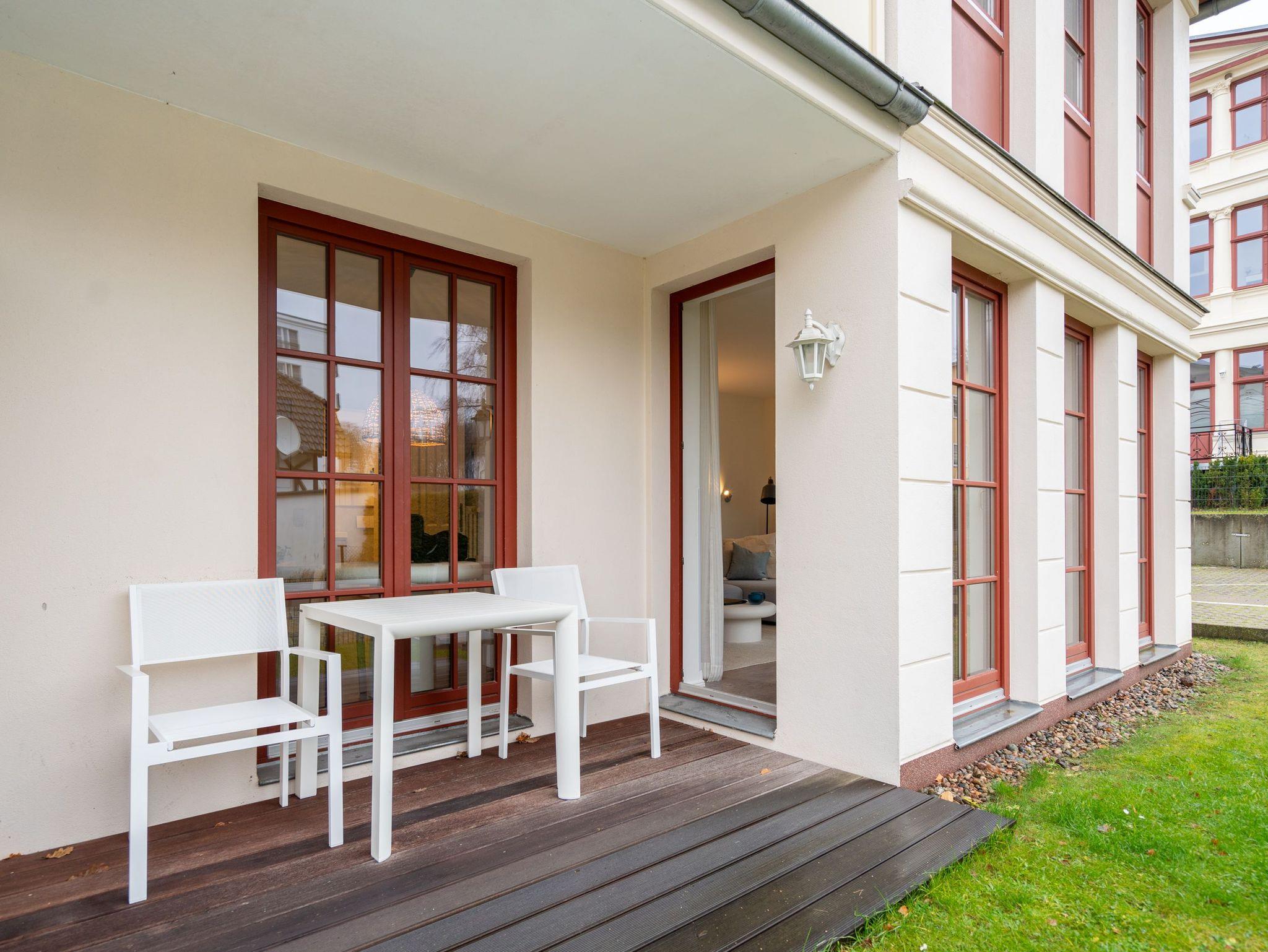 Willkommen in der neu gestalteten 2-Raum-Ferienwohnung (46 m²), Nummer 03, die ab Winter 2024 in frischem Glanz erstrahlt! Die Wohnung befindet sich im Erdgeschoss der charmanten Villa Damaris und bietet Platz für 2 Erwachsene und 1 Kleinkind bis 3 Jahre (im Kinderreisebett). Freuen Sie sich auf eine moderne Ausstattung und stilvolle Dekorationen, die für eine angenehme Urlaubsatmosphäre sorgen. Der lichtdurchflutete Wohnbereich ist mit einer gemütlichen Sitzgruppe und einem Flat-TV ausgestattet. Angrenzend befindet sich eine offene, vollständig eingerichtete Küchenzeile mit Essbereich, die keine Wünsche offenlässt. Das separate Schlafzimmer verfügt über ein komfortables Boxspringdoppelbett, einen Kleiderschrank und einen weiteren Flat-TV. Das moderne Badezimmer bietet eine Dusche, einen Waschtisch und ein WC. Zusätzlich lädt die Terrasse mit einem Tisch und zwei Gartenstühlen zum Verweilen im Freien ein. Für unsere kleinen Gäste stellen wir auf Anfrage gerne ein Kinderreisebett (ohne zusätzliche Matratze und Bettzeug) sowie einen Kinderhochstuhl bereit (gegen Aufpreis). Ihr Fahrzeug parken Sie bequem auf dem zur Wohnung gehörenden Stellplatz Nr. 3 direkt am Haus. Zudem steht Ihnen während Ihres Aufenthalts kostenfreies WLAN zur Verfügung.