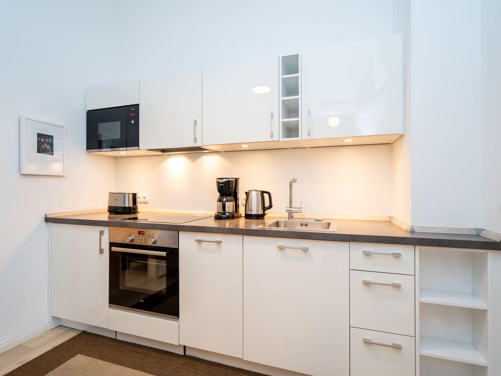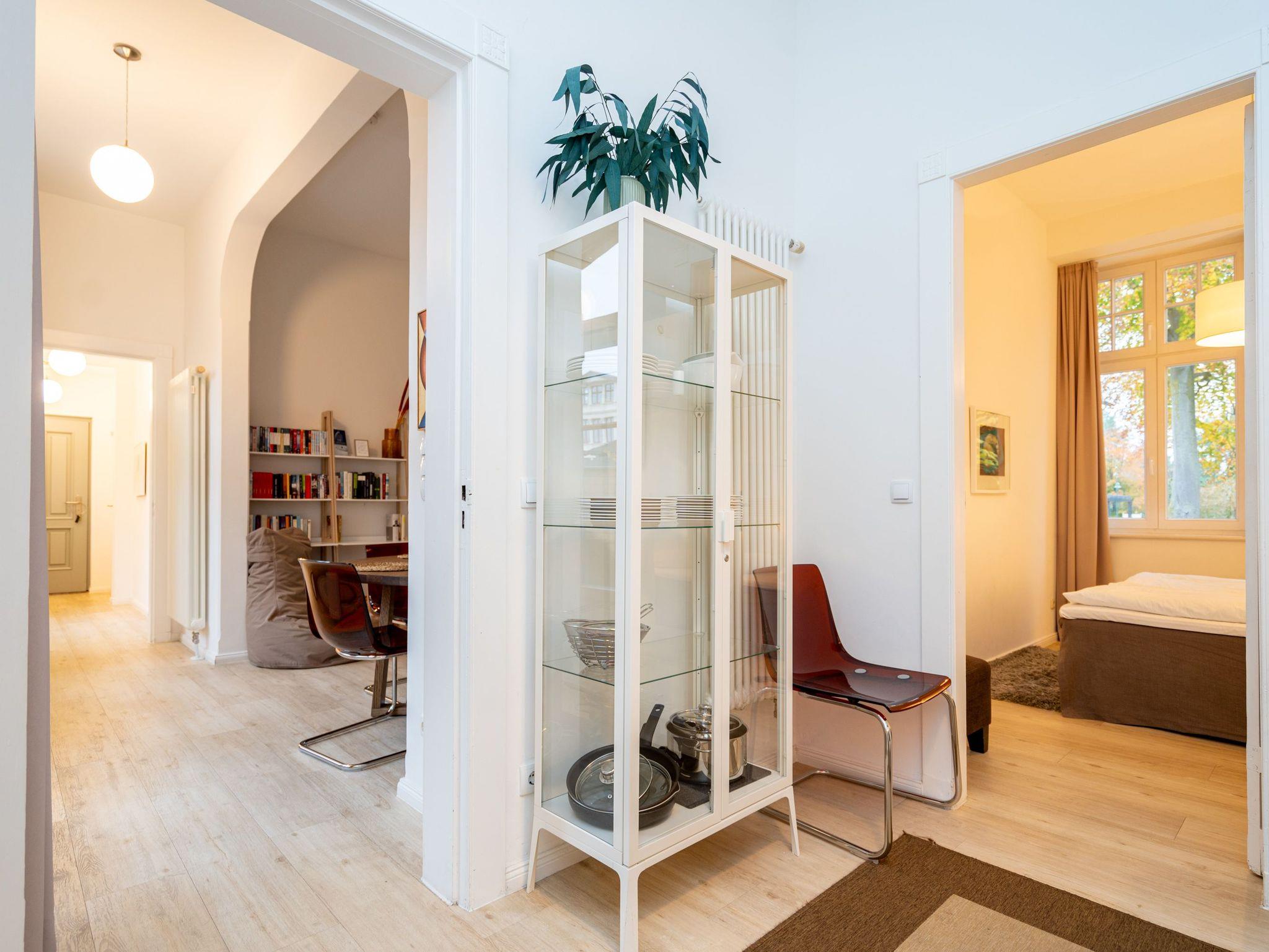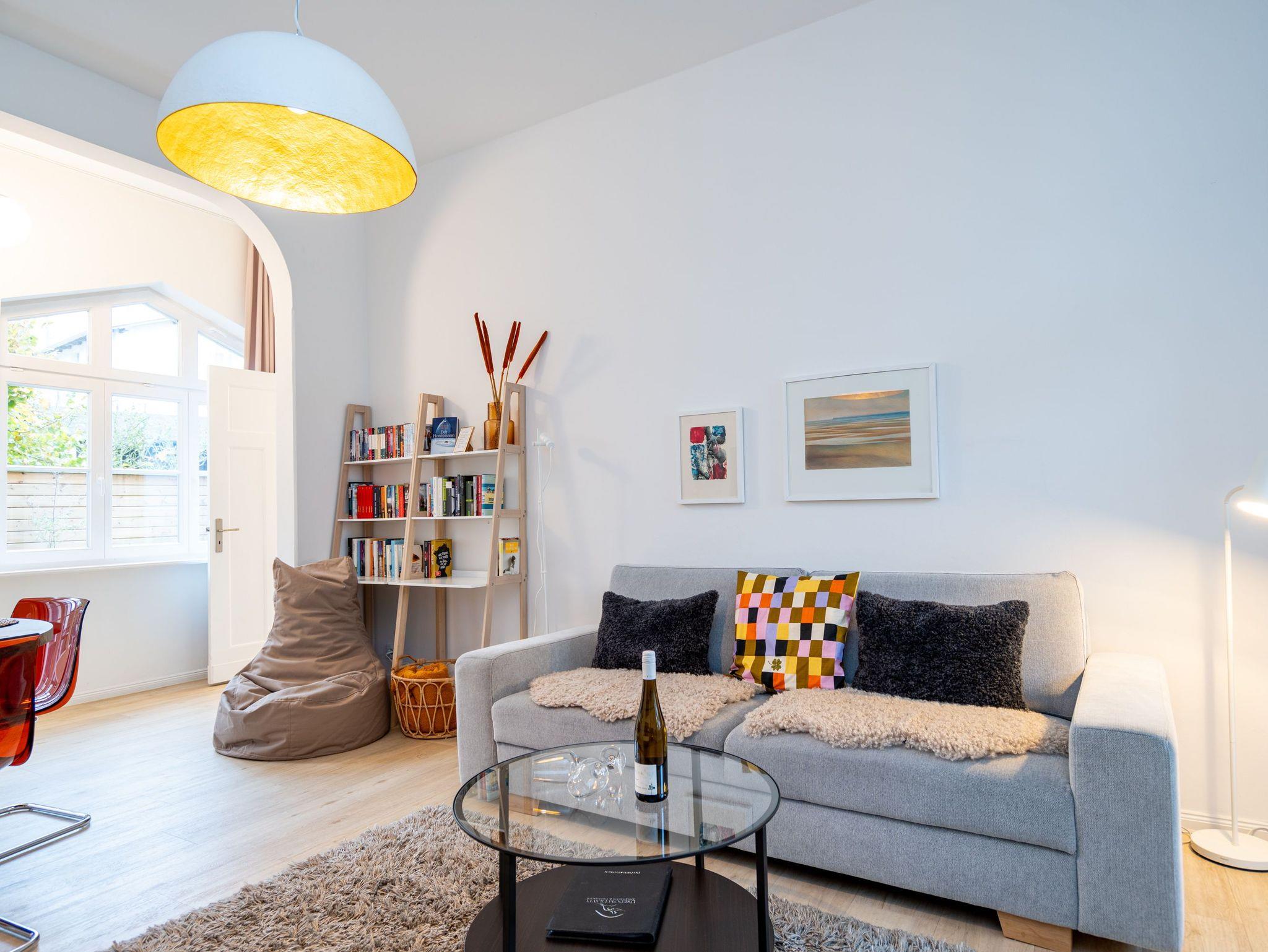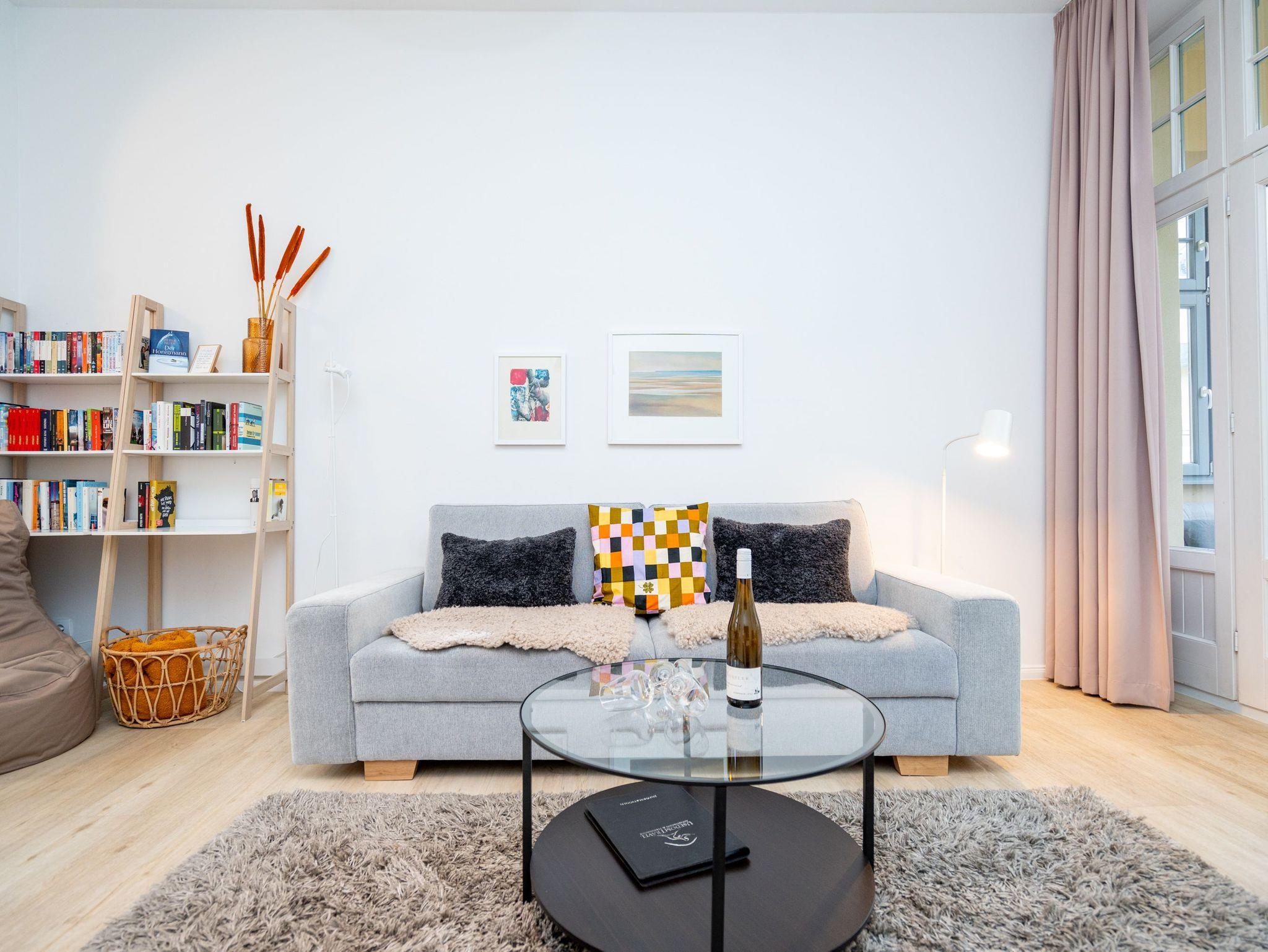Kaiserzeitliches Villenflair kombiniert mit nordischem Design und modernem Komfort erwartet Sie im Appartement 1 im Erdgeschoss der Heringsdorfer Villa Diehl. Genießen Sie die frische Ostseeluft und das sanfte Rauschen des Meeres auf der wunderschönen, offenen Loggia. Sie ist ein echtes Highlight und entführt Sie in eine andere Zeit ? eine Zeit, in der es keine Hektik, keinen Stress und keinen Arbeitsalltag gibt. Hier können Sie ausspannen und entspannen mit Stil. Im Inneren des 98 Quadratmeter großen Drei-Zimmer-Appartements empfängt Sie viel Bewegungsfreiheit in hellen, lichtdurchfluteten Räumen. Dieses Nichtraucher-Urlaubsdomizil bietet Platz für 4 Personen. Der Gas-Kamin im Wohnzimmer ist ein Hingucker und sorgt für kuschelige Gemütlichkeit. Genauso wie die bequeme Couch. Am großen Flat-TV ist ein Blue-Ray-Player angeschlossen. Die sich dem Wohnbereich unmittelbar anschließende, offene Küche mit schönem Essplatz ist komplett mit hochwertigen Geräten und Geschirr ausgestattet. In jedem der beiden Schlafzimmer sorgt ein Doppelboxspringbett für erholsame Träume. In einem Schlafzimmer befindet sich ebenfalls ein Flat-TV. Ideal für kühle Tage ist die kleine Infrarot-Sauna im Badezimmer. Zur Bad-Ausstattung gehört neben dem Waschtisch und dem WC eine geräumige Echtglas-Dusche. Zudem verfügt das Appartement über ein separates Gäste-WC. Für Ihren uneingeschränkten Komfort sind die Betten bezogen und Handtücher liegen für Sie bereit. Der WLAN-Zugang ist kostenfrei nutzbar. Zu Ihrem Urlaubsparadies gehört ein Pkw-Stellplatz auf dem Hof.
