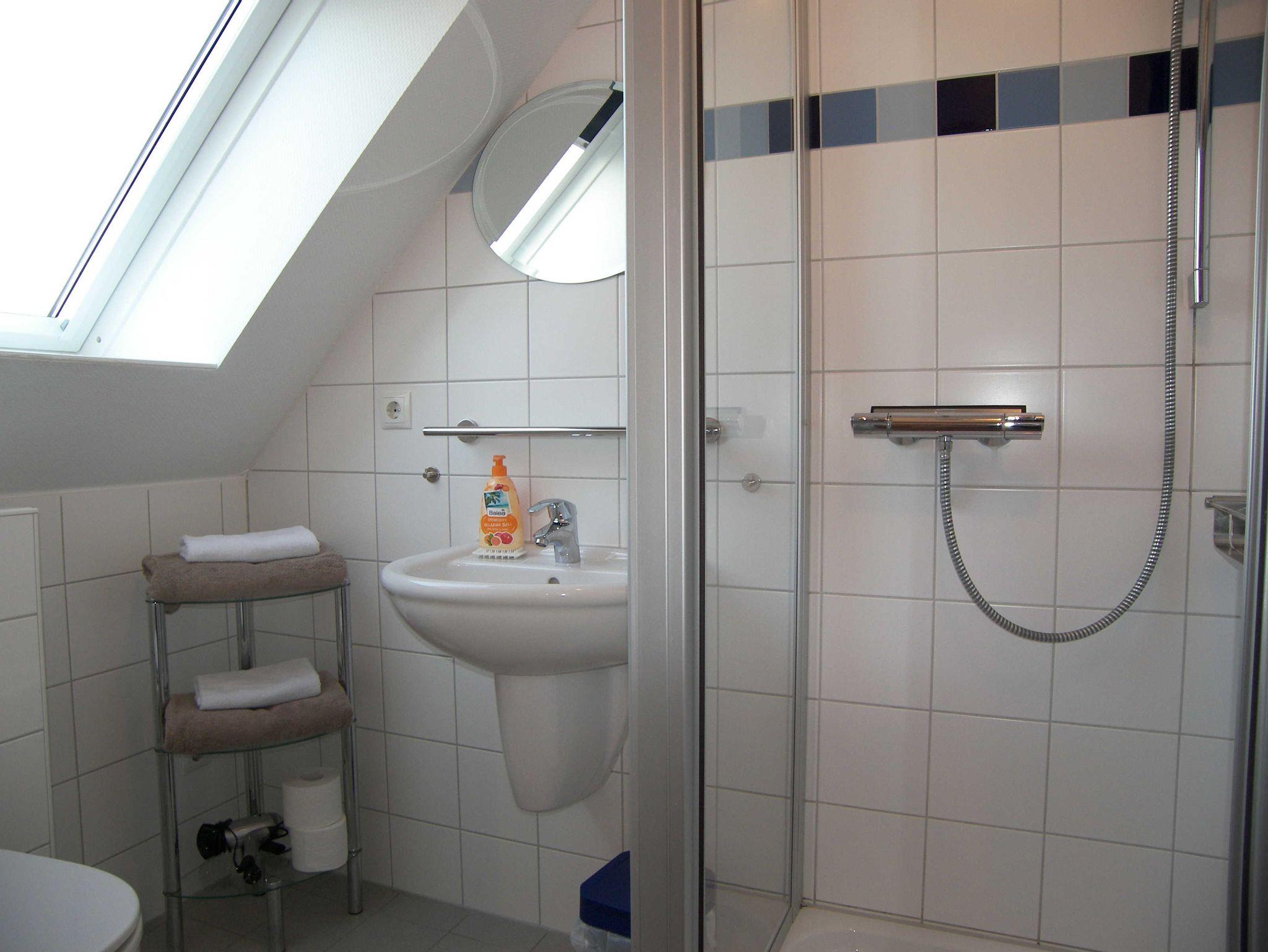 Haus Seestern, Ferienwohnung Muschel, im 1. OG & DG, Raumspartreppe