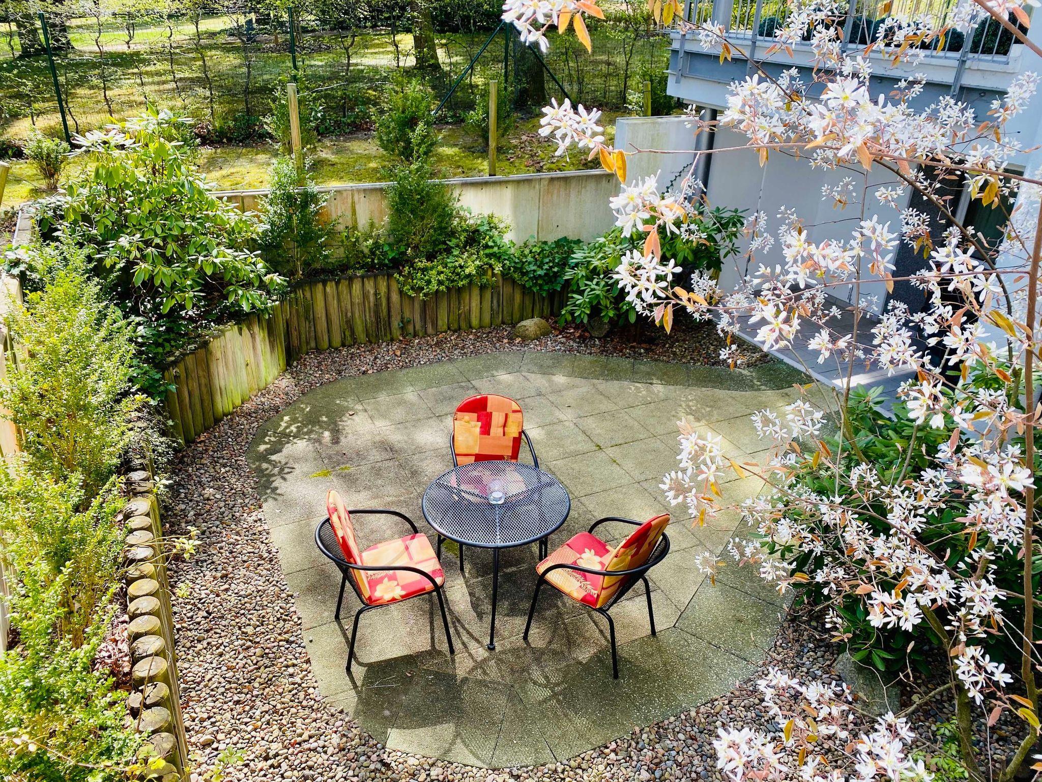 Ein Höhepunkt ist die große überdachte und abgeschlossene freie Terrasse mit Liegen.