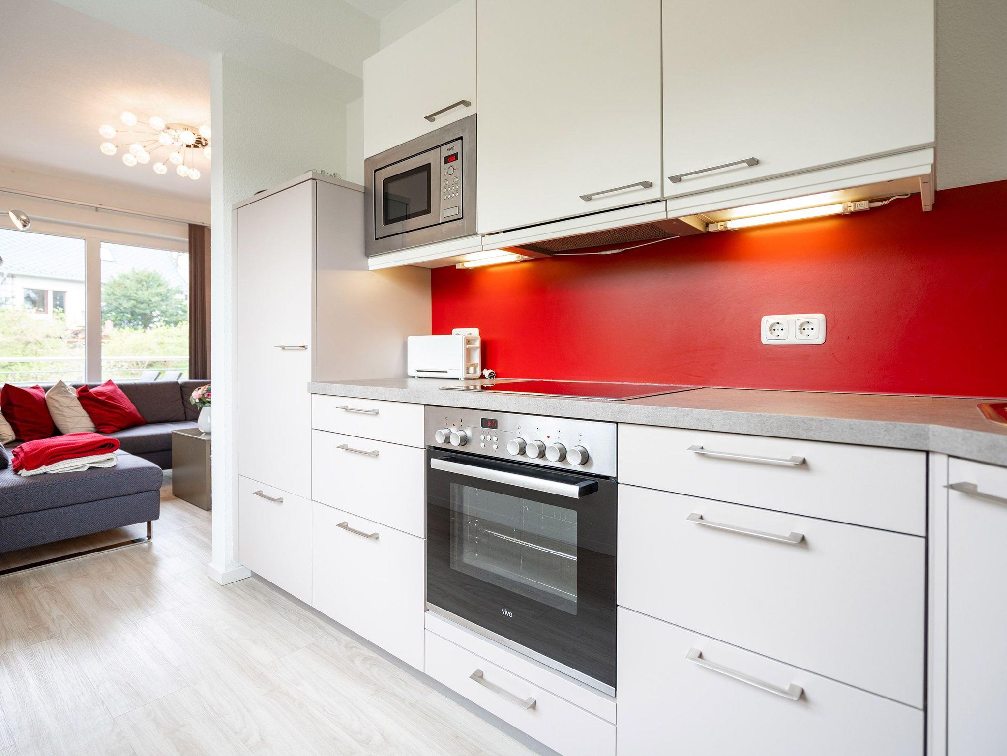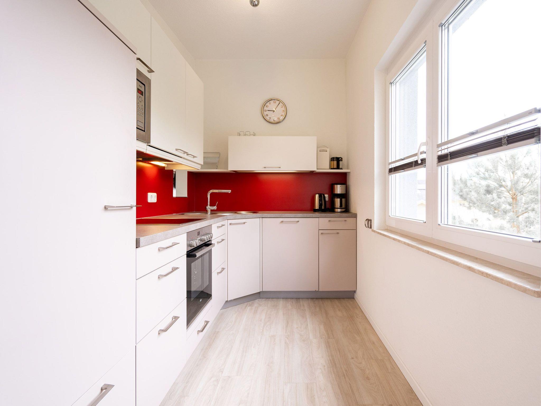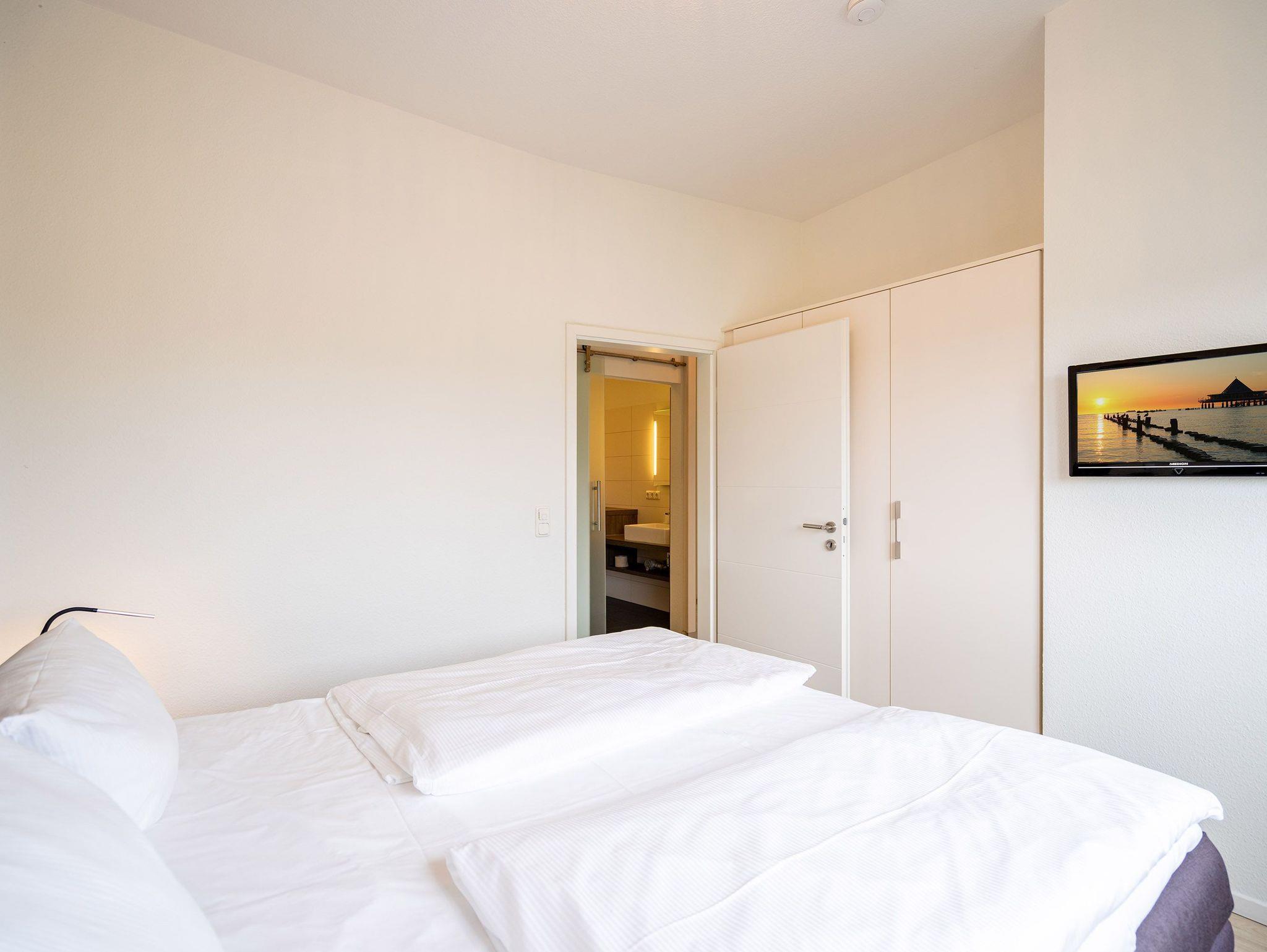Sonne über Sonne lassen Sie in diesem Appartement auf alle möglichen Arten entspannen und neue Energie tanken. Das 61 Quadratmeter große Ferien-Appartement, zu dem Sie ganz bequem per Fahrstuhl gelangen können, ist für einen Urlaub an der Ostsee die ideale Ruhe-Oase. Dazu passt der Spruch Ihres Domizils ideal: Gönne dir einen Augenblick der Ruhe und achte auf das, was dir Freude macht. Bis zu drei Personen und ein Kleinkind (im kostenpflichtig dazu buchbaren Kinderreisebett) können es sich hier gut gehen lassen. Auf Wunsch stellen wir auch einen Kinderhochstuhl in die Wohnung. Das Urlaubsdomizil ist hell und modern eingerichtet. Frische Farben, Bilder und Accessoires sorgen für Akzente. Das Wohnzimmer ist großzügig geschnitten, bietet viel Platz zum Kuscheln auf dem Sofa vor dem flackernden Flammenspiel des Gas-Kamins oder dem großen Flat-TV. Genießen Sie darüber hinaus den großen Südbalkon oder essen Sie entspannt am schönen Esstisch. Die Küche ist offen und mit Geräten wie Herd, Kühlschrank, Spülmaschine, Mikrowelle, Toaster etc. voll ausgestattet. Und da man für ein gemeinsames Essen auch Geschirr braucht, ist dieses dort ebenfalls zu finden. Den großen Südbalkon (17 Quadratmeter groß) mit Strandkorb können Sie vom Wohnzimmer aus betreten. Ob beim Sonnenbaden auf den Liegen oder beim Frühstück im Freien ? die frische Ostseeluft erfrischt so oder so Körper und Seele. Das Appartement hat zwei Schlafzimmer. Eines verfügt über ein bequemes Boxspringdoppelbett, einen stummen Diener zum Aufhängen Ihrer Sachen, einen geräumigen Schrank und einen Flat TV. Im zweiten Schlafzimmer steht eine ausziehbare Schlafcouch (1,40 m x 2,00 m). Auch hier gibt es einen Fernseher und einen großen Schrank. Das Badezimmer verfügt über Dusche, Waschtisch und WC. Handtücher liegen für Sie bereit und die Betten sind bei Anreise bezogen. Das WLAN ist kostenfrei. Ein Pkw-Stellplatz ist in der Tiefgarage vorhanden.
