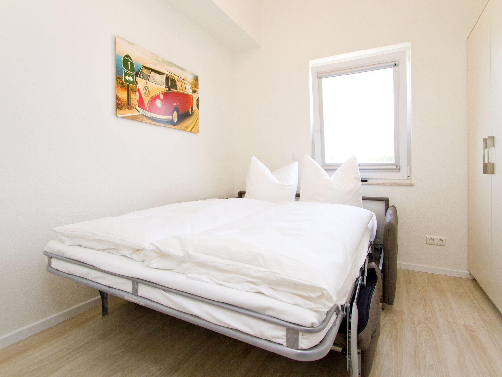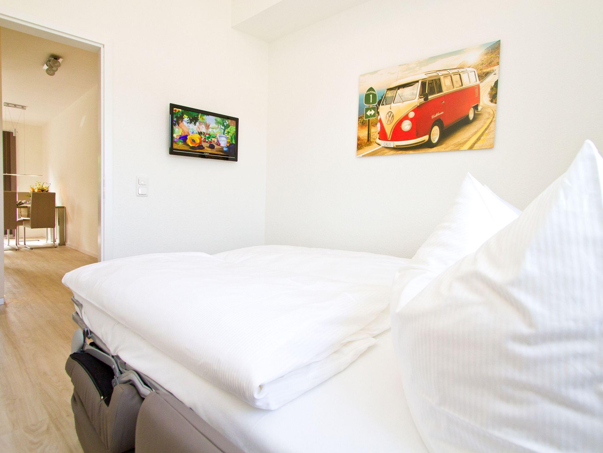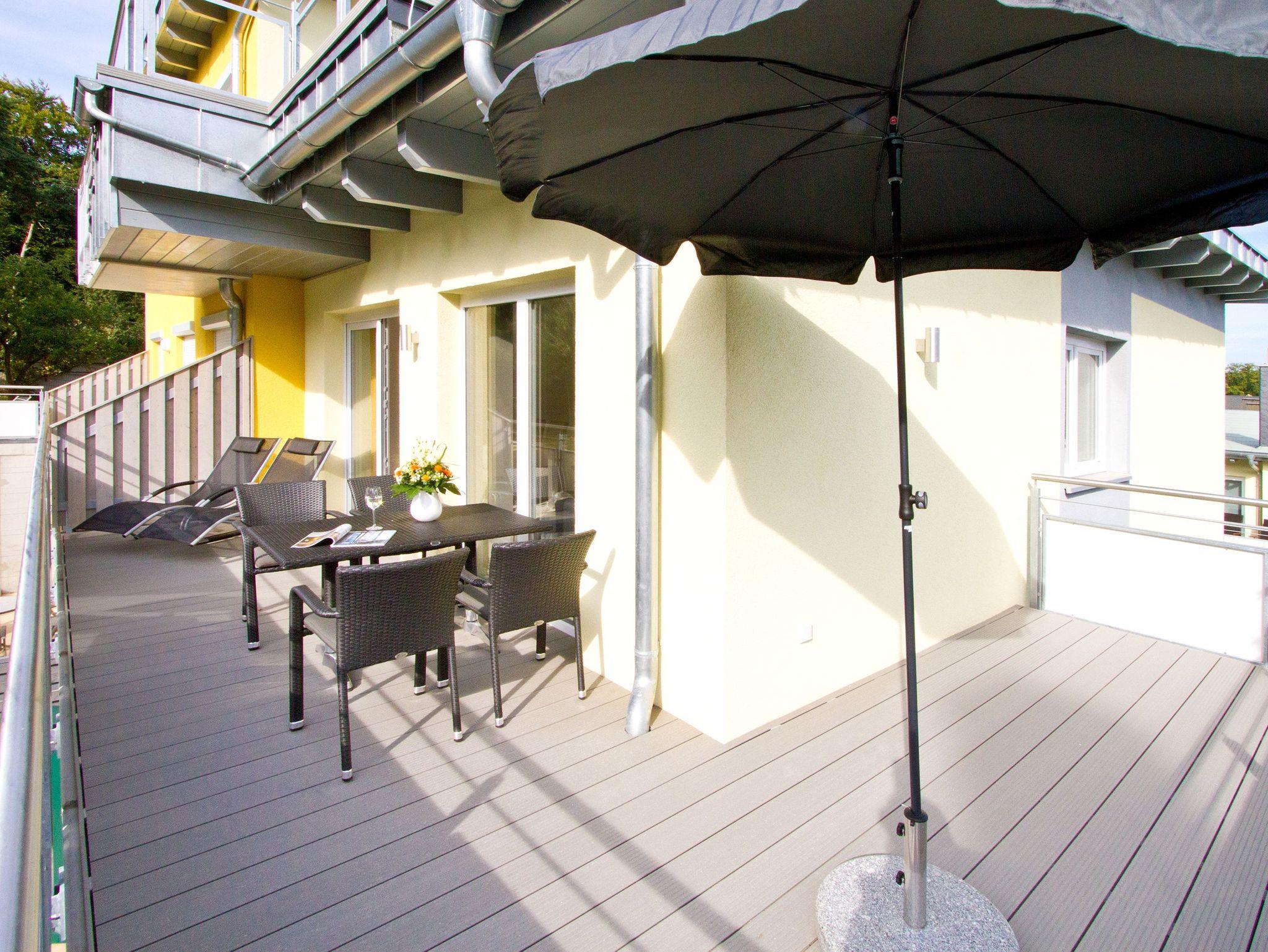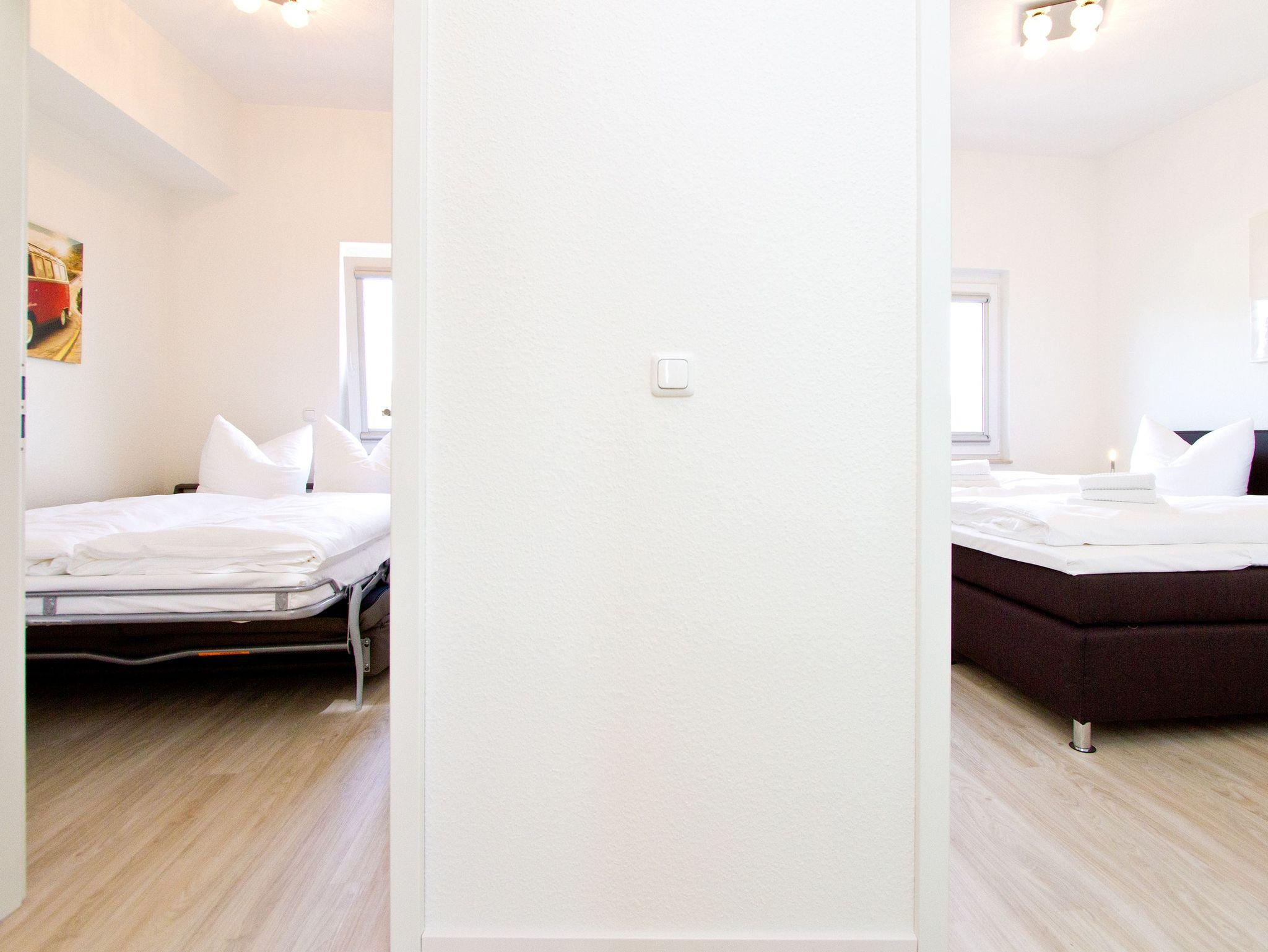 Sonne über Sonne lassen Sie in diesem Appartement auf alle möglichen Arten entspannen und neue Energie tanken. Das 61 Quadratmeter große Ferien-Appartement, zu dem Sie ganz bequem per Fahrstuhl gelangen können, ist für einen Urlaub an der Ostsee die ideale Ruhe-Oase. Dazu passt der Spruch Ihres Domizils ideal: Gönne dir einen Augenblick der Ruhe und achte auf das, was dir Freude macht. Bis zu drei Personen und ein Kleinkind (im kostenpflichtig dazu buchbaren Kinderreisebett) können es sich hier gut gehen lassen. Auf Wunsch stellen wir auch einen Kinderhochstuhl in die Wohnung. Das Urlaubsdomizil ist hell und modern eingerichtet. Frische Farben, Bilder und Accessoires sorgen für Akzente. Das Wohnzimmer ist großzügig geschnitten, bietet viel Platz zum Kuscheln auf dem Sofa vor dem flackernden Flammenspiel des Gas-Kamins oder dem großen Flat-TV. Genießen Sie darüber hinaus den großen Südbalkon oder essen Sie entspannt am schönen Esstisch. Die Küche ist offen und mit Geräten wie Herd, Kühlschrank, Spülmaschine, Mikrowelle, Toaster etc. voll ausgestattet. Und da man für ein gemeinsames Essen auch Geschirr braucht, ist dieses dort ebenfalls zu finden. Den großen Südbalkon (17 Quadratmeter groß) mit Strandkorb können Sie vom Wohnzimmer aus betreten. Ob beim Sonnenbaden auf den Liegen oder beim Frühstück im Freien ? die frische Ostseeluft erfrischt so oder so Körper und Seele. Das Appartement hat zwei Schlafzimmer. Eines verfügt über ein bequemes Boxspringdoppelbett, einen stummen Diener zum Aufhängen Ihrer Sachen, einen geräumigen Schrank und einen Flat TV. Im zweiten Schlafzimmer steht eine ausziehbare Schlafcouch (1,40 m x 2,00 m). Auch hier gibt es einen Fernseher und einen großen Schrank. Das Badezimmer verfügt über Dusche, Waschtisch und WC. Handtücher liegen für Sie bereit und die Betten sind bei Anreise bezogen. Das WLAN ist kostenfrei. Ein Pkw-Stellplatz ist in der Tiefgarage vorhanden.