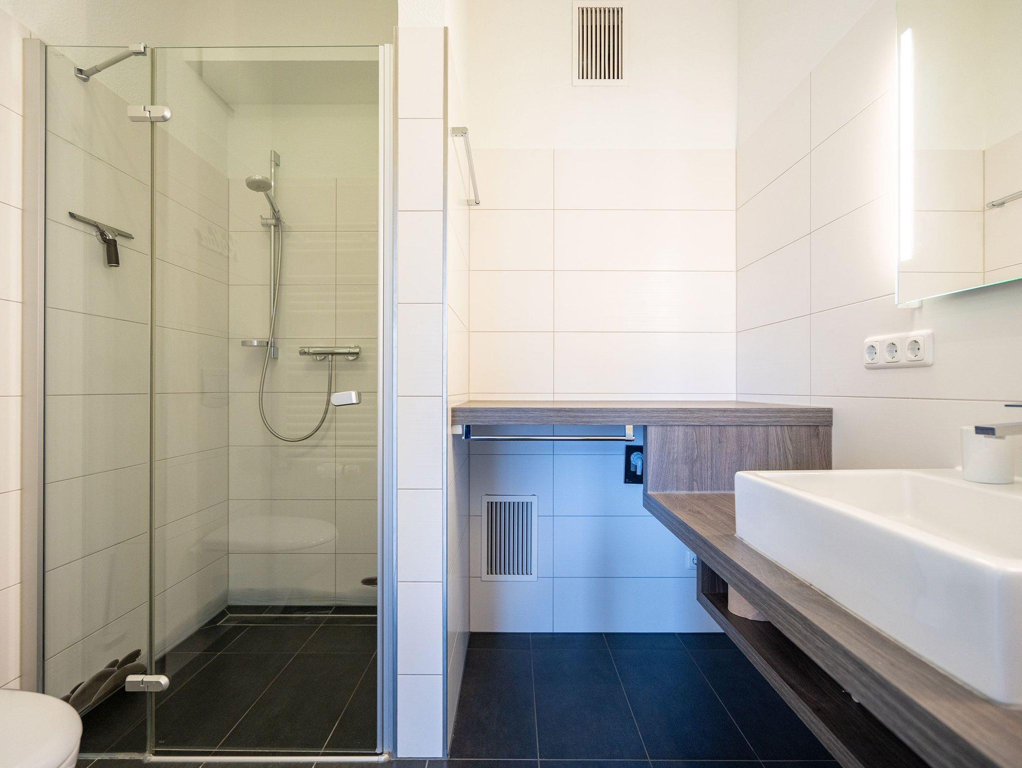 Etwas versteckt, aber dennoch zentral gelegen, empfängt Sie das Domizil am Hang, bestehend aus Haus A [&] Haus B. Es erwarten Sie individuell gestaltete 2- und 3-Raum-Appartements mit Balkonen, Terrassen und hochwertiger Ausstattung. Fu?r beide Ha?user steht eine Tiefgarage zur Verfu?gung, in der fu?r jede Wohnung ein PKW- Stellplatz vorhanden ist. Aus dieser Tiefgarage ist ein Zugang zum Aufzug und zu den Wohnungen des Hauses B möglich (unabha?ngig davon ob man mit oder ohne PKW anreist). Von dort haben Sie Zugang zum Haus A, welches über keinen Aufzug verfügt. Die oberen Appartements sind ausschließlich über Treppen zu erreichen. Bis zum Strand und zur Promenade sind es ca. 400m Fußweg. Im Haus sind die Waschmaschine und Trockner gegen Gebühr nutzbar. Außerdem steht für jede Wohnung ein Briefkasten am Haus zur Verfügung.