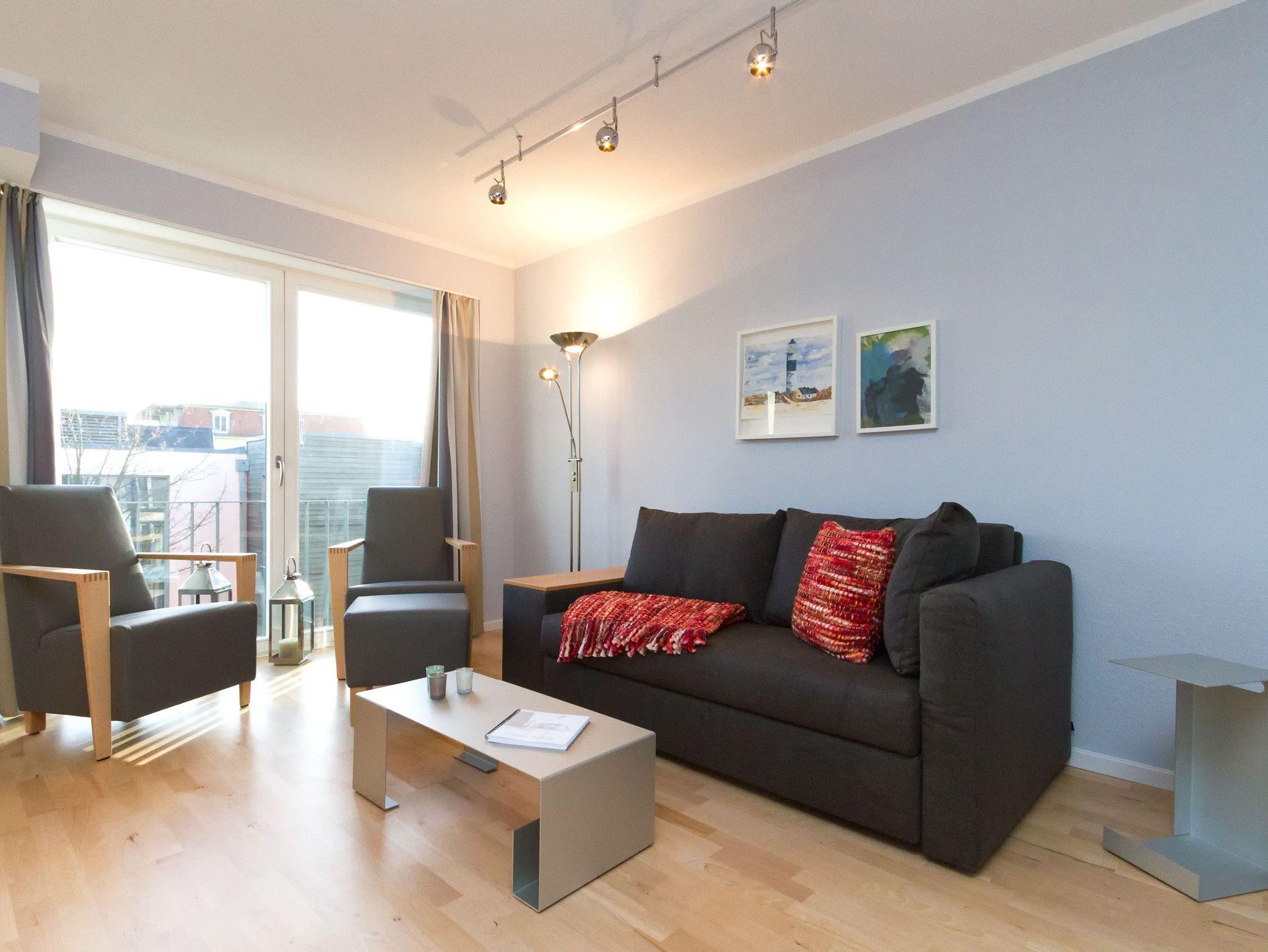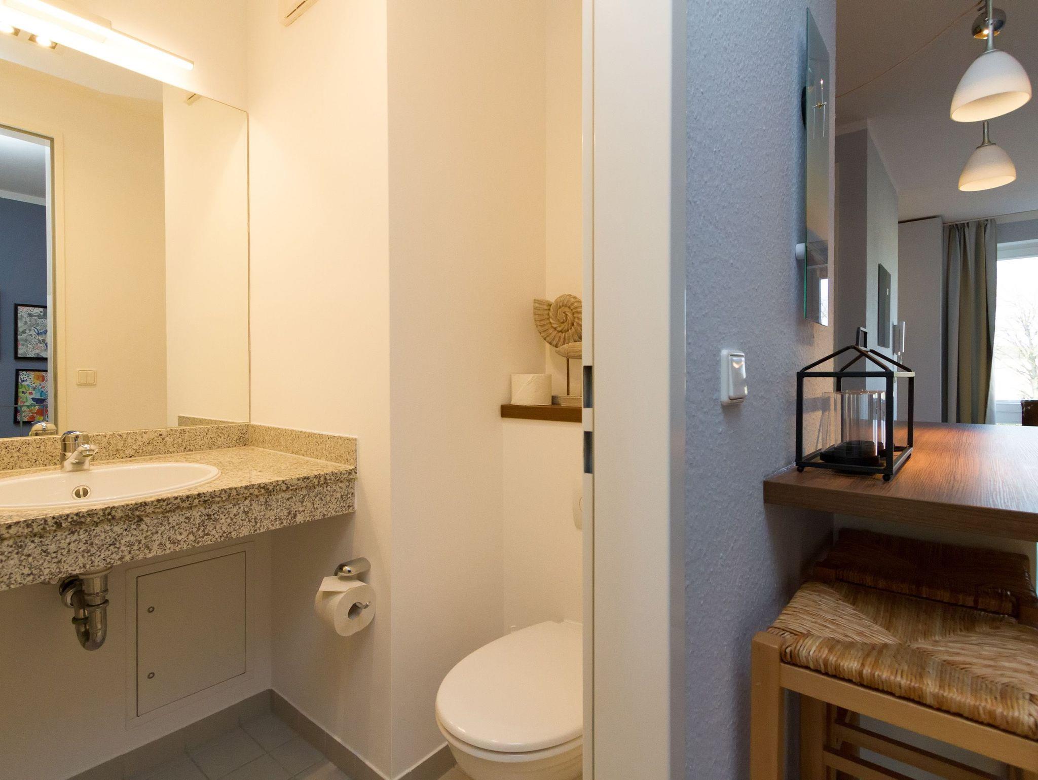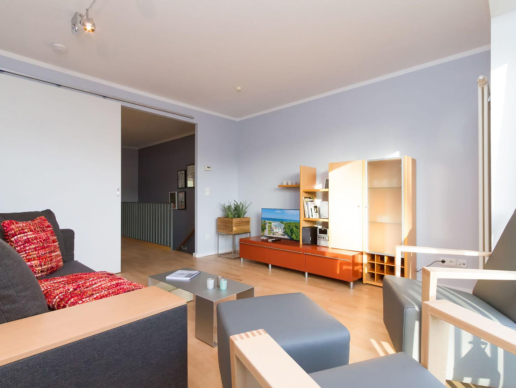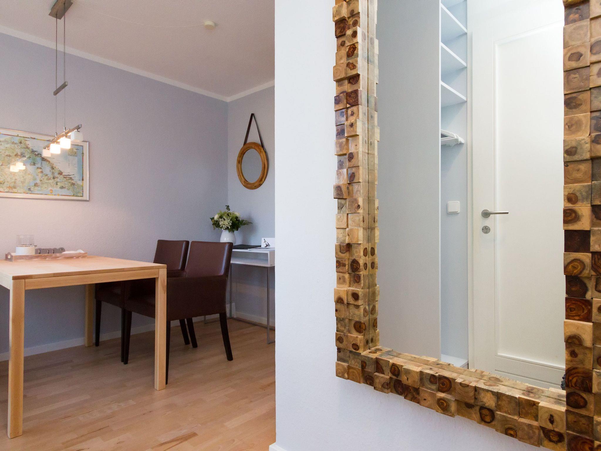 Modern, gemütlich und lichtdurchflutet hell präsentiert sich das Appartement Nummer 15 im Forum Marinar. Über zwei Etagen lädt die stilvolle Maisonette-Wohnung mit ihren 58 Quadratmetern zum ausgiebigen Entspannen und Urlauben ein. Zumal der feine, weiße Ostseestrand in unmittelbarer Nähe und sogar seitlicher Sichtweite liegt und an stürmischen Tagen für die richtige Wellenrauschkulisse sorgt. Ein schöner, großer Wohnbereich mit einem Kuschelsofa, das zur Schlafcouch umfunktioniert werden kann, zwei komfortablen Sesseln und einem Flat-TV empfängt Sie in der 2. Etage. Platz ist in den zwei Zimmern für zwei bis vier Personen. Eine offene Küchenzeile ist mit allem ausgestattet, was zum Kochen und Essen gebraucht wird. Ein schöner Esstisch nebst Stühlen und Bank sorgt beim Zusammensitzen für Gemütlichkeit. Auf der Wohnetage befindet sich zudem ein Gäste-WC. In der ersten Etage liegt das Schlafzimmer mit einem bequemen Boxspringdoppelbett (1,60 m x 2,00 m), einem großen Schrank und Flat-TV und ein schönes und geräumiges Badezimmer mit Waschtisch, WC und Badewanne. Entspannung pur, denn Sie brauchen sich um nichts kümmern. Handtücher liegen bereit und das Bett ist bezogen. Zu der Wohnung gehört ein Pkw-Stellplatz. In den Monaten April bis Juni und September bis November haben Sie zudem freien und kostenlosen Zugang zum Wellnessbereiches des 750 Meter entfernten Kaiser Spa Hotel Zur Post.