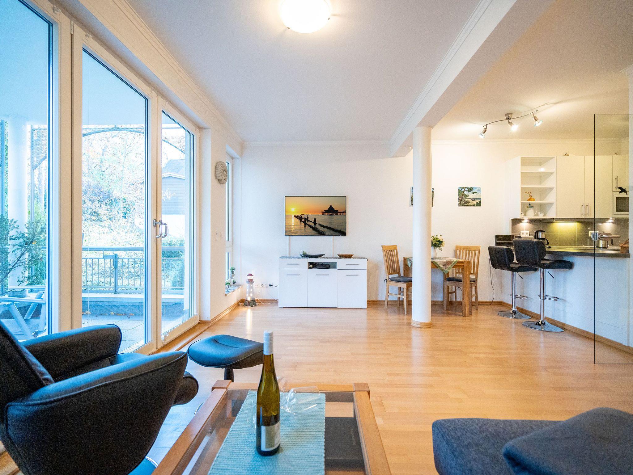 Willkommen in unserer schönen, lichtdurchfluteten 1-Raum-Ferienwohnung direkt an der Promenade von Heringsdorf, perfekt für 2 Personen und befindlich in der 1. Etage. Treten Sie ein in den kombinierten Wohn- und Schlafbereich, der mit einem bequemen Boxspringbett (1,80m x 2,00m), einer gemütlichen Sitzgruppe mit Flat-TV sowie einem CD- und DVD-Player ausgestattet ist. Die offene und komplett ausgestattete Küche verfügt über alles, was Sie benötigen, einschließlich einer zusätzlichen Senseo-Kapselmaschine. Ein Essplatz am Tresen sowie ein separater Essbereich laden zum Genießen Ihrer Mahlzeiten ein. Das Badezimmer ist mit einer Dusche und einem WC ausgestattet. Genießen Sie die frische Luft auf dem großzügigen und überdachten Balkon (ca. 12 qm) mit Blick zur Seeseite. Für zusätzlichen Komfort sorgt eine Fußbodenheizung, und ein PKW-Außenstellplatz (Nr. 17) steht Ihnen direkt am Haus zur Verfügung. Kostenloses WLAN ist ebenfalls verfügbar. Als besonderes Highlight bieten wir Ihnen von April bis Ende September (abhängig von der Witterung) einen kostenlosen Strandkorb am Strand an. Erleben Sie erholsame Tage in unserer charmanten Ferienwohnung und lassen Sie sich von der Schönheit der Region verzaubern.