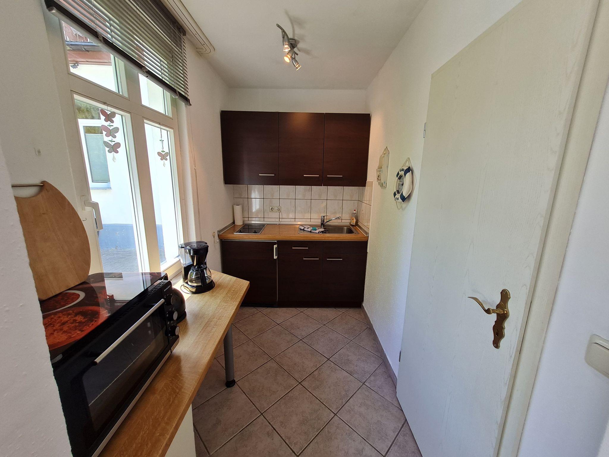 Das Appartement 10 befindet sich in einem kleinen Nebenhaus auf dem Grundstück. Auf 46m² finden zwei Erwachsene und ein Kleinkind bis drei Jahre genug Platz, um einen wundervollen Aufenthalt in Heringsdorf zu verbringen. Aufgeteilt ist die Wohnung in ein Schlafzimmer mit Doppelbett und Kleiderschrank. Ein Badezimmer mit Dusche und WC, welches sich direkt neben der Küche befindet. Diese ist voll ausgestattet, bis auf einen Ofen. Im Wohnzimmer können Sie auf der großen Couch entspannen und zusammen sitzen.