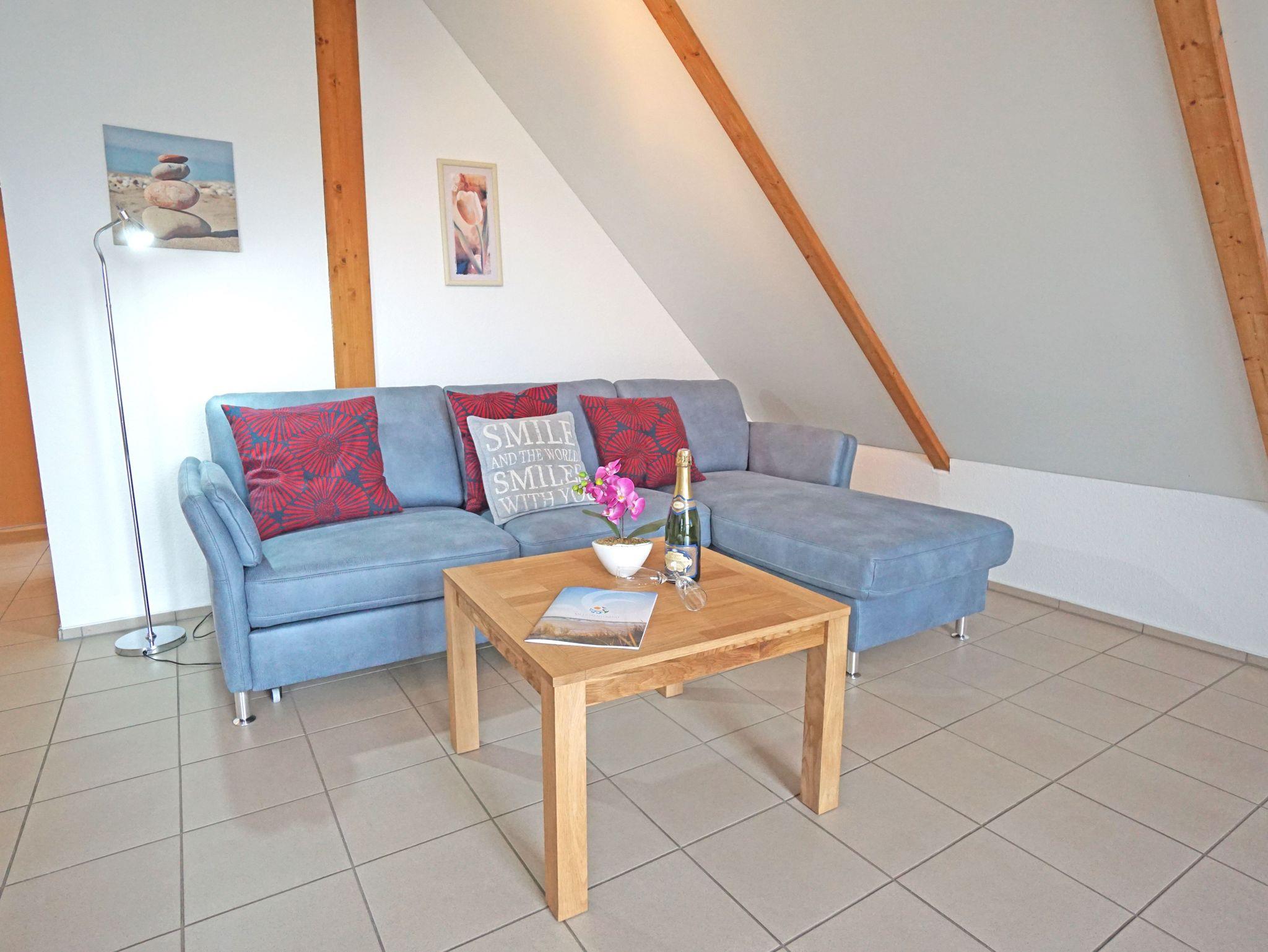 Die Wohnungen im Dachgeschoss bieten Platz für 2 Personen und sind ca. 45 m ² groß. Sie sind aufgeteilt in ein Schlafzimmer, einen Wohnraum mit Einliegerküche, ein komfortables Bad und ein Balkon.