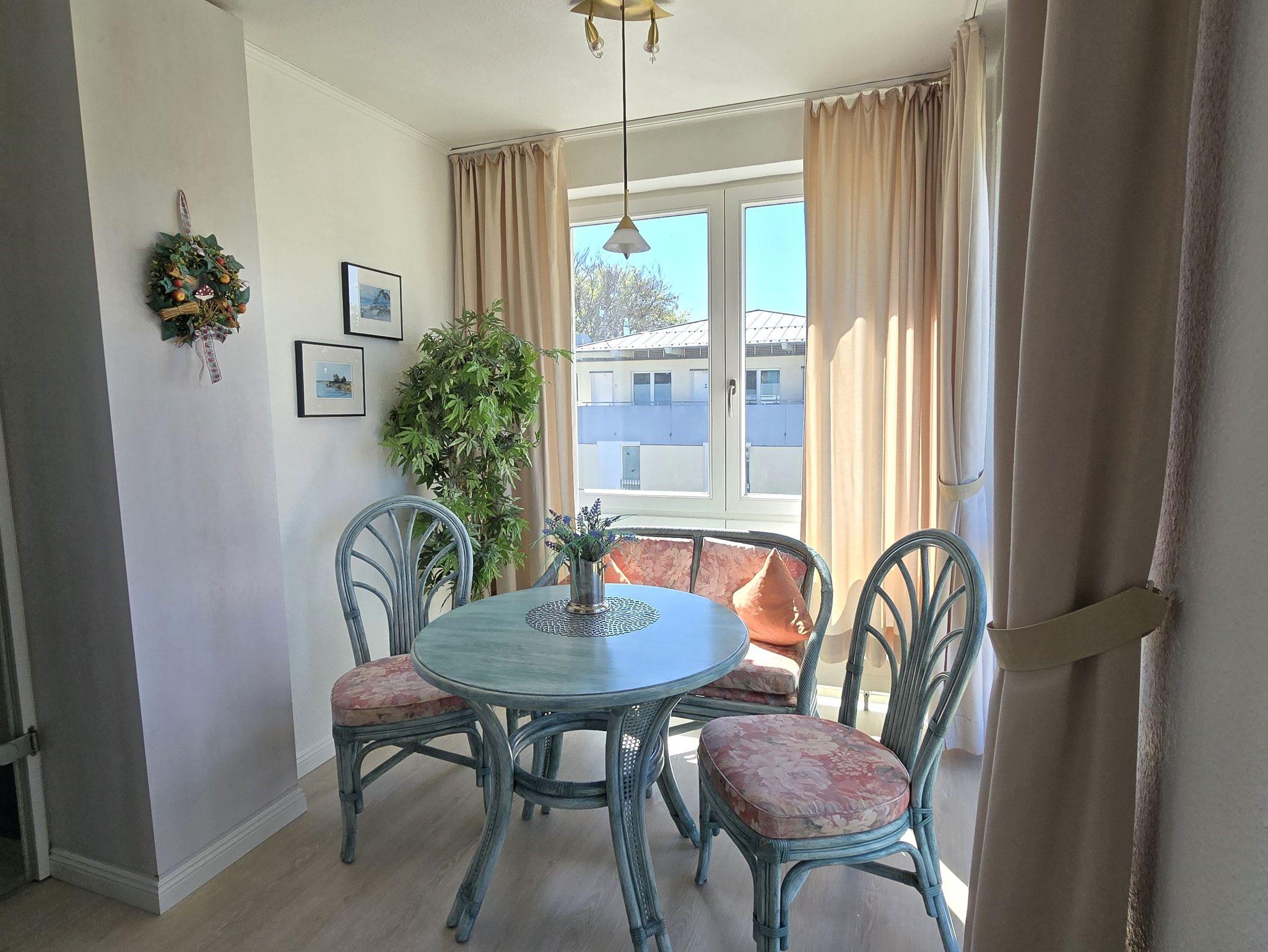 Komfortables, modernes 1 1/2-Raum-Appartement (32 qm) in der 3. Etage mit Balkon und einem herrlichen Meerblick. Ein kombinierter Wohn-und Schlafraum, einer Küchenzeile (mit Geschirrspüler, Mikrowelle, E-Herd, Kühlschrank, Kaffeemaschine etc.), W-Lan, Kabel-TV, Radio, Safe sowie ein Bad mit DU/WC + Haarfön. Parkplatz. Die Erstausstattung Bettwäsche und Handtücher ist inklusive.
