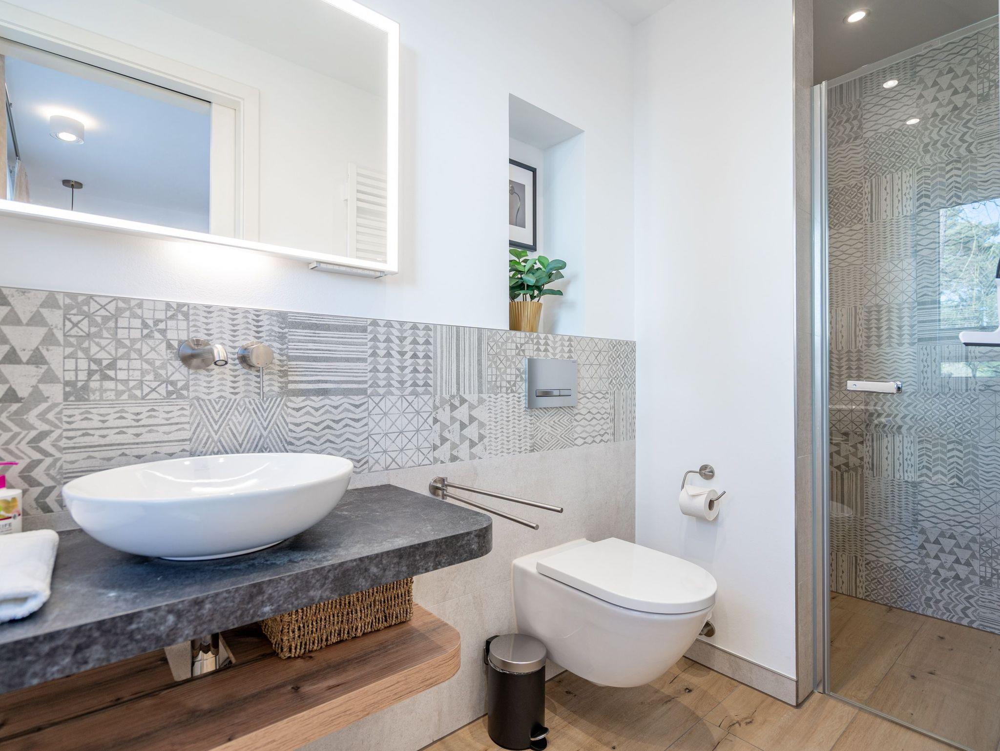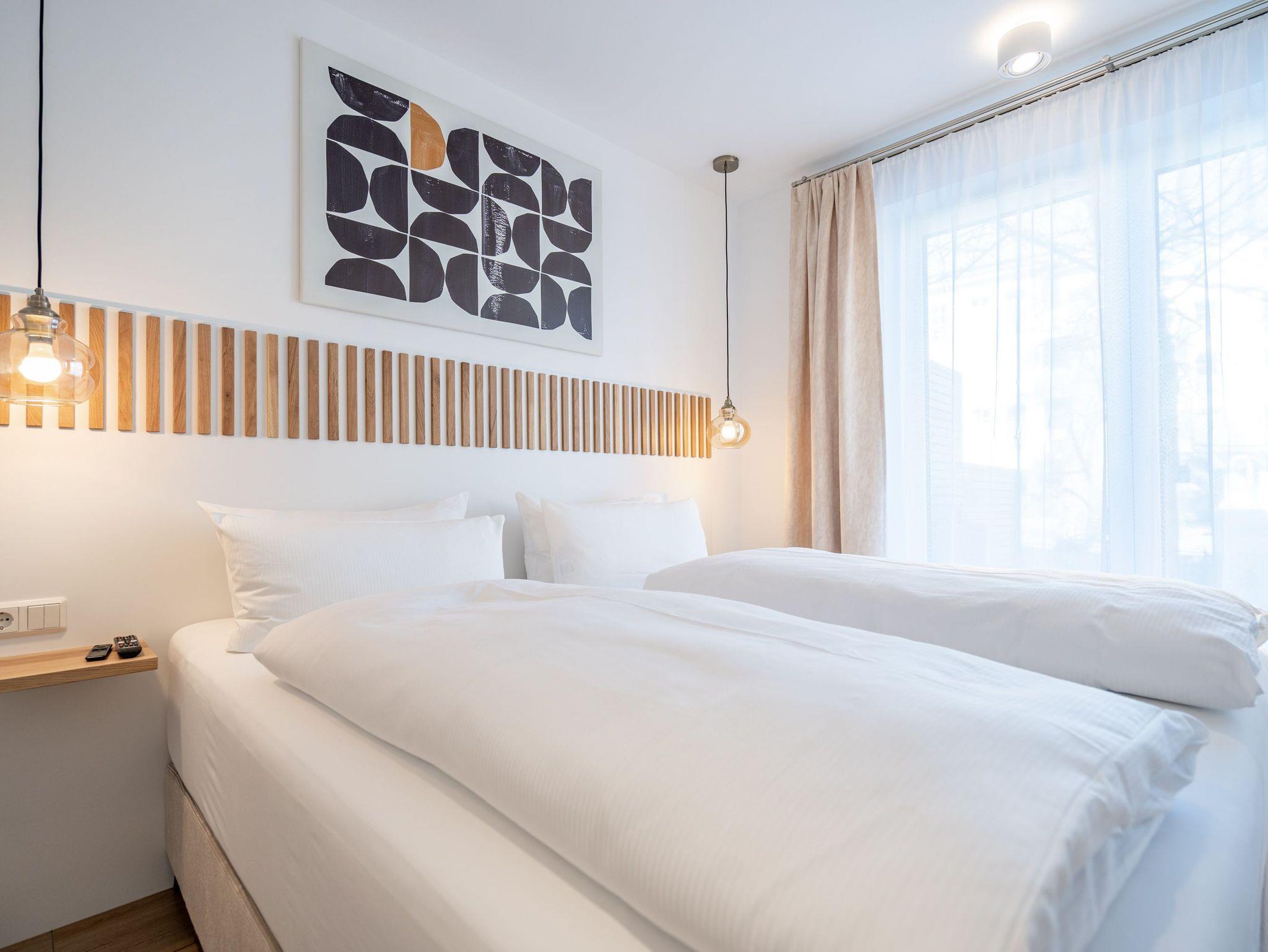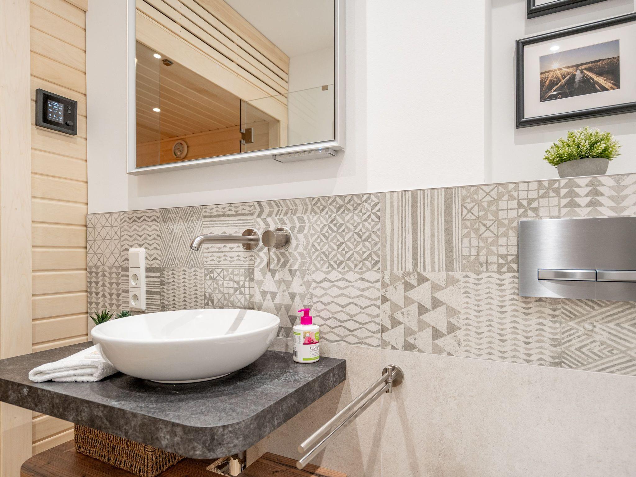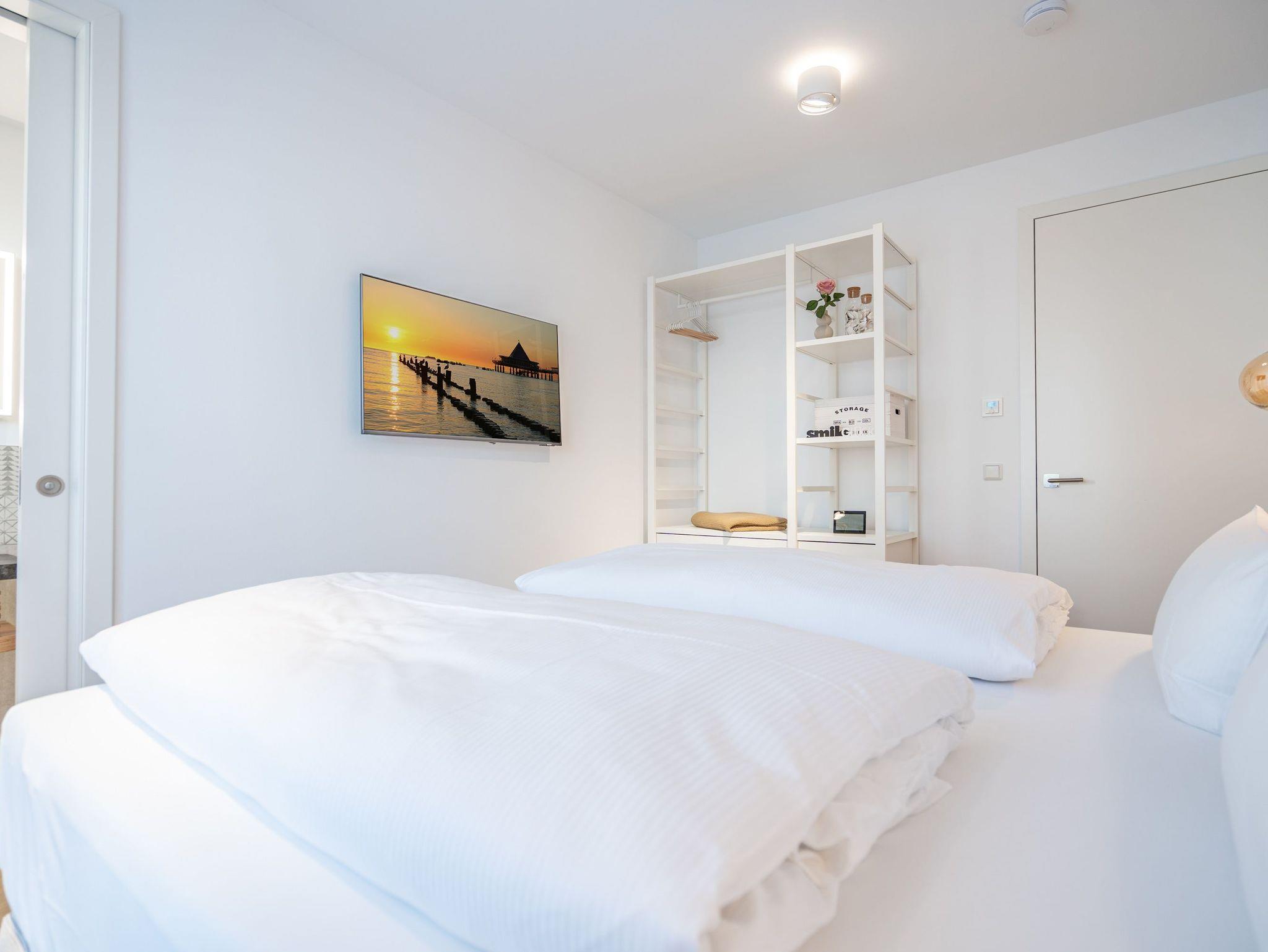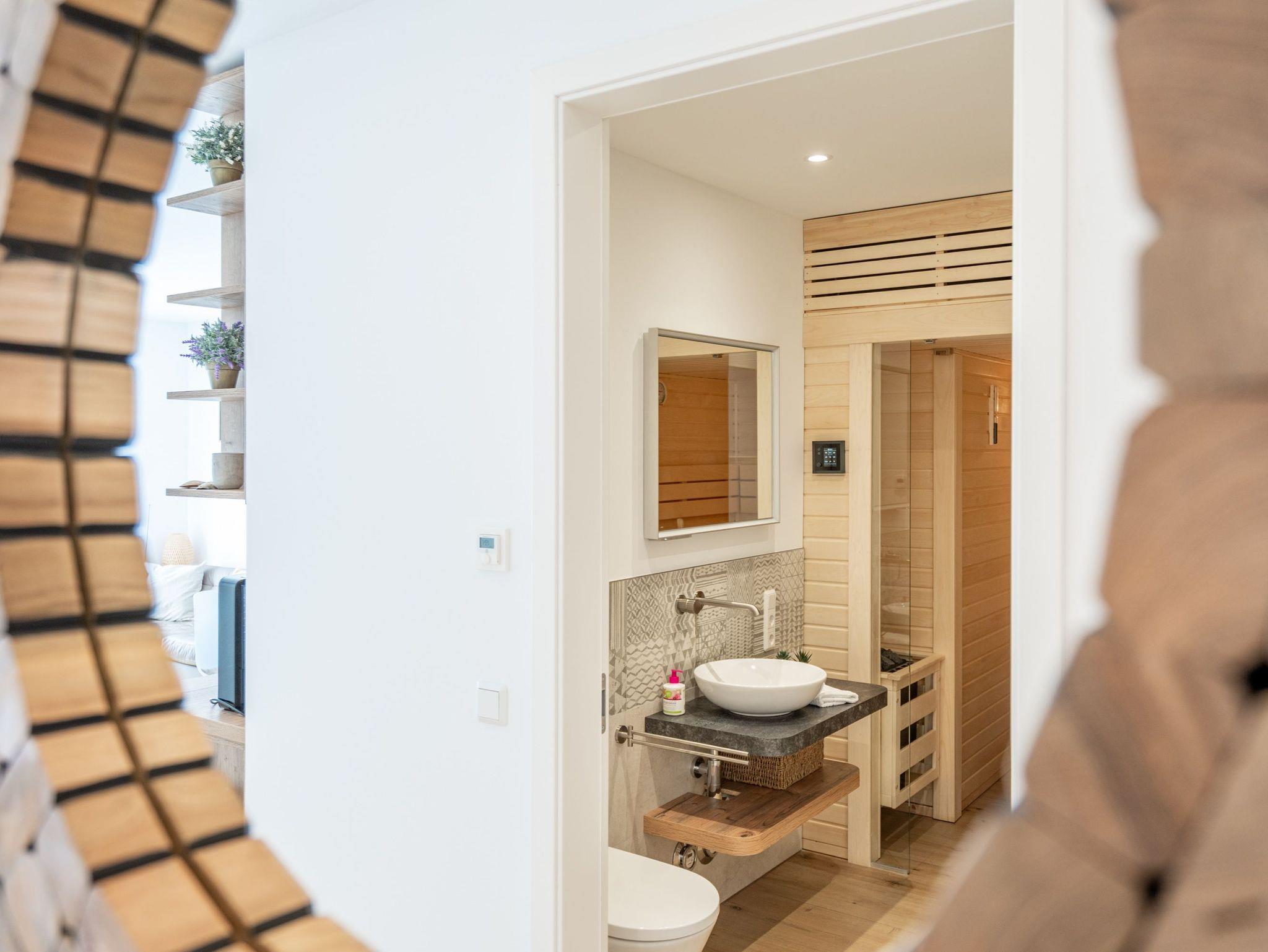 Willkommen in der stilvollen 3-Raum-Ferienwohnung Nr. 3 im exklusiven Quartier Maxim! Auf großzügigen 72 qm im Erdgeschoss bietet diese geschmackvoll eingerichtete Wohnung Platz für bis zu 4 Personen und vereint modernen Komfort mit Wohlfühl-Ambiente. Der offene Wohnbereich lädt mit einer bequemen Sitzgruppe, einem Kaminofen für gemütliche Abende sowie einem 65-Zoll-Flat-TV und Bluetooth-Radio zum Entspannen ein. Direkt angrenzend befindet sich die offene Wohnküche, die mit Backofen, Mikrowelle, Kühlschrank mit Gefrierfach und einer Nespresso-Kapselmaschine bestens ausgestattet ist. Der Essplatz für 4 Personen rundet den Wohnbereich harmonisch ab. Für höchsten Komfort sorgen zwei moderne Duschbäder: Ein innenliegendes Bad mit Finnischer Sauna lädt nach einem erlebnisreichen Tag zum Relaxen ein, während das Tageslichtbad als Masterbad mit direktem Zugang vom zweiten Schlafzimmer überzeugt. Die beiden stilvollen Schlafzimmer sind jeweils mit Boxspringdoppelbetten, einem Kleiderschrank und einem Flat-TV ausgestattet ? ideal für erholsame Nächte. Für sonnige Stunden stehen Ihnen zwei Terrassen mit Gartenmöbeln zur Verfügung: Eine Süd-West-Terrasse, auf der Sie die Nachmittagssonne genießen können, sowie eine Nord-Ost-Terrasse, die sich perfekt für ein Frühstück an der frischen Luft eignet. Für Ihre Fahrräder steht ein wohnungseigener Abstellraum sowie ein Fahrradständer am Haus bereit. Zwei Haustiere bis mittlerer Größe sind gegen Aufpreis herzlich willkommen. Erleben Sie erholsame Urlaubstage in dieser exklusiven Ferienwohnung ? wir freuen uns auf Sie!