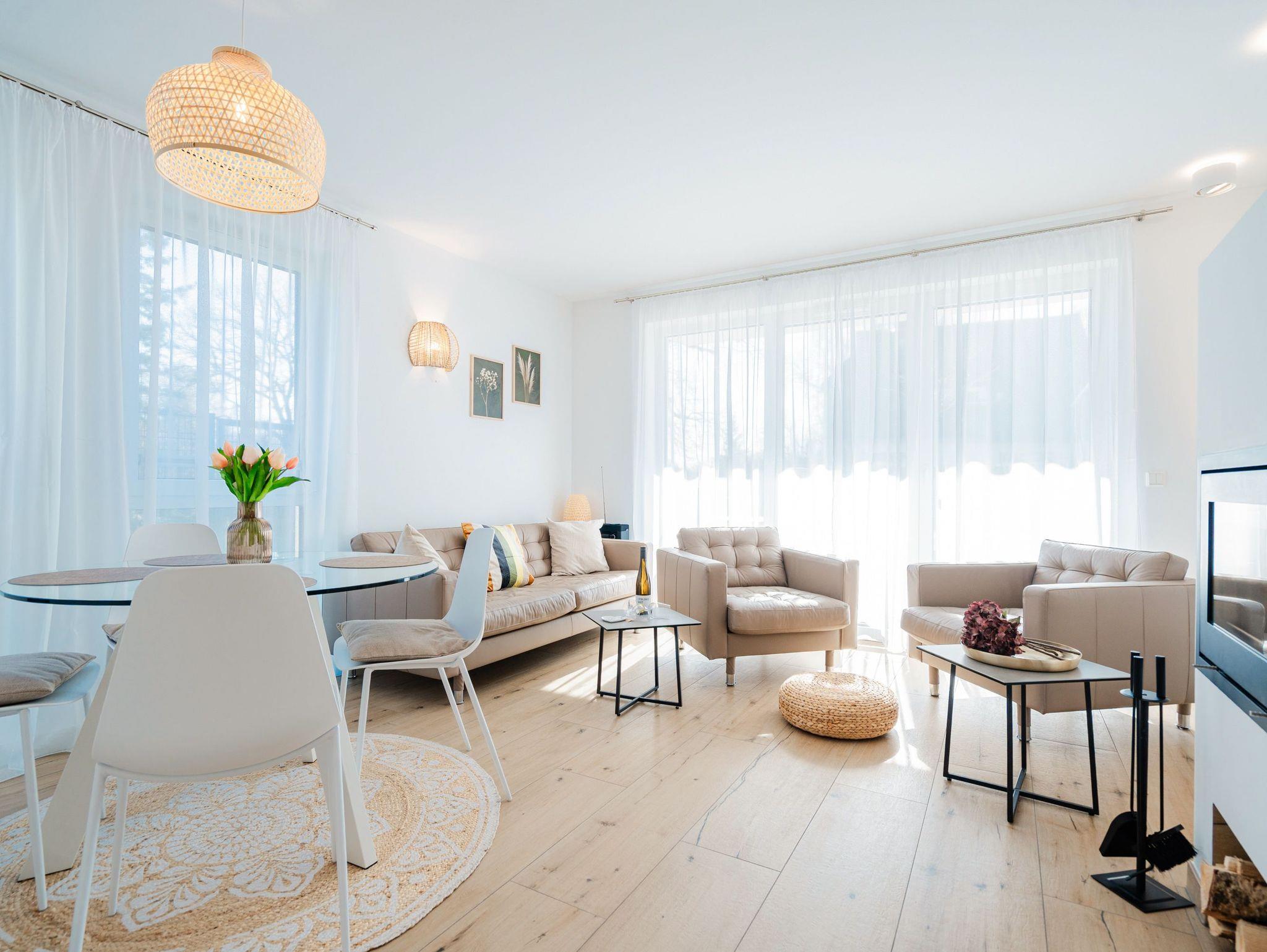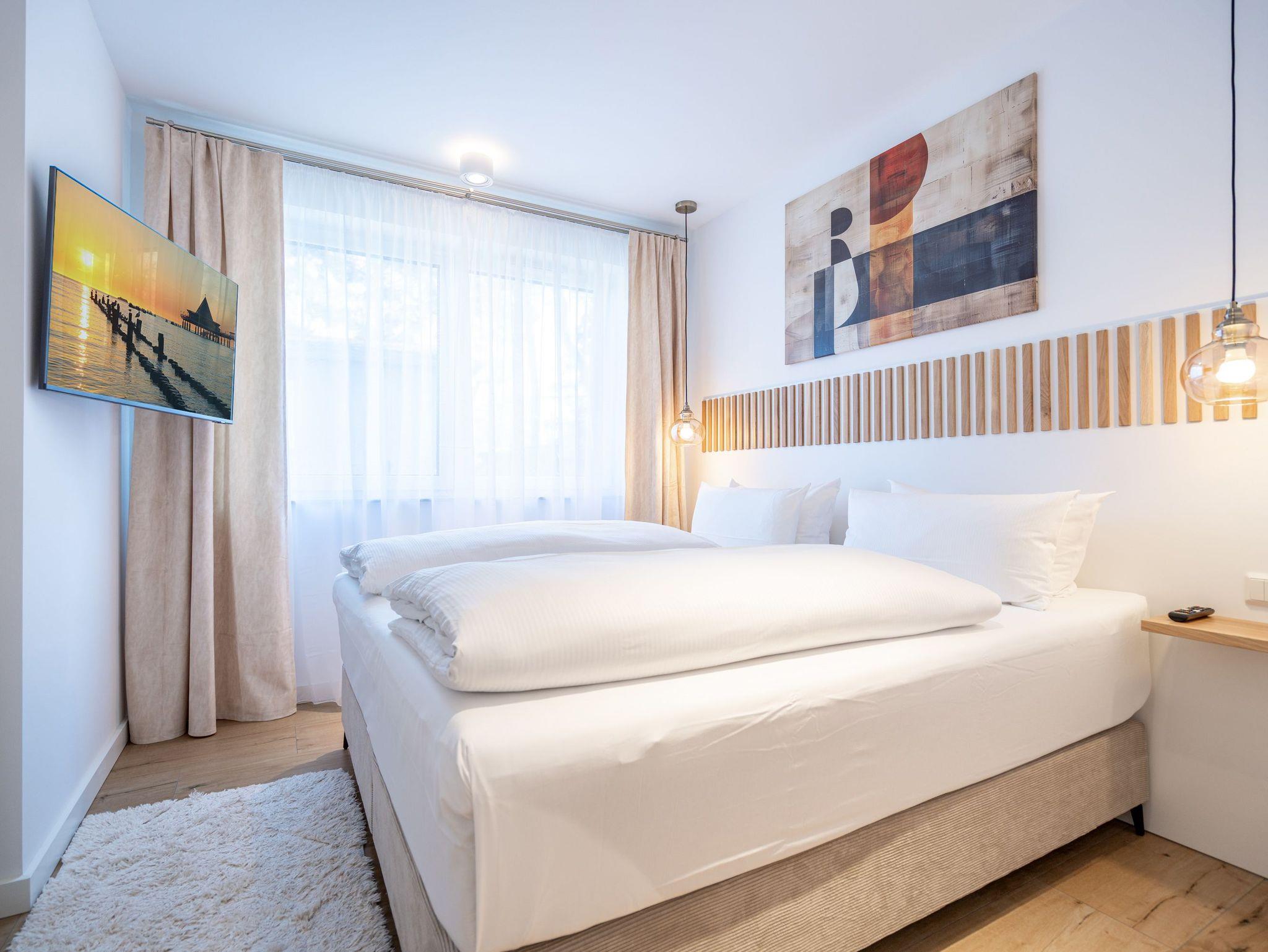 Das neu erbaute Quartier Maxim bietet exklusiven Komfort für Ihren perfekten Urlaub an der Ostsee. In diesem modernen Appartementhaus erwarten Sie insgesamt neun hochwertig ausgestattete Ferienwohnungen, die sich auf drei Etagen verteilen. Die 2- und 3-Raum-Appartements verfügen größtenteils über eine private Sauna und einen gemütlichen Kamin ? ideal, um entspannte Urlaubstage das ganze Jahr über zu genießen. Das sonnige Grundstück liegt in zweiter Reihe zur Strandpromenade und ermöglicht Ihnen einen entspannten Rückzugsort in exponierter Lage. Ein Aufzug sorgt für barrierefreien Zugang zu allen Etagen, und die Tiefgarage (Einfahrthöhe 2,05m) bietet komfortable Parkmöglichkeiten direkt im Haus. Für Fahrräder befindet sich eine eingezäunte Abstellmöglichkeit neben dem Objekt. Einige Wohnungen verfügen zusätzlich über einen eigenen Abstellraum im Keller. Die geschmackvoll eingerichteten Appartements bieten eine einladende Atmosphäre und gehobene Ausstattung, die keine Wünsche offenlässt. Durch die zentrale und strandnahe Lage des Quartier Maxim erreichen Sie Einkaufsmöglichkeiten, Restaurants und kulturelle Einrichtungen in wenigen Minuten. Die Kombination aus luxuriöser Ausstattung, Nähe zur Ostsee und der komfortablen Infrastruktur macht das Quartier Maxim zum idealen Ort für einen unvergesslichen Aufenthalt im Seebad Heringsdorf.