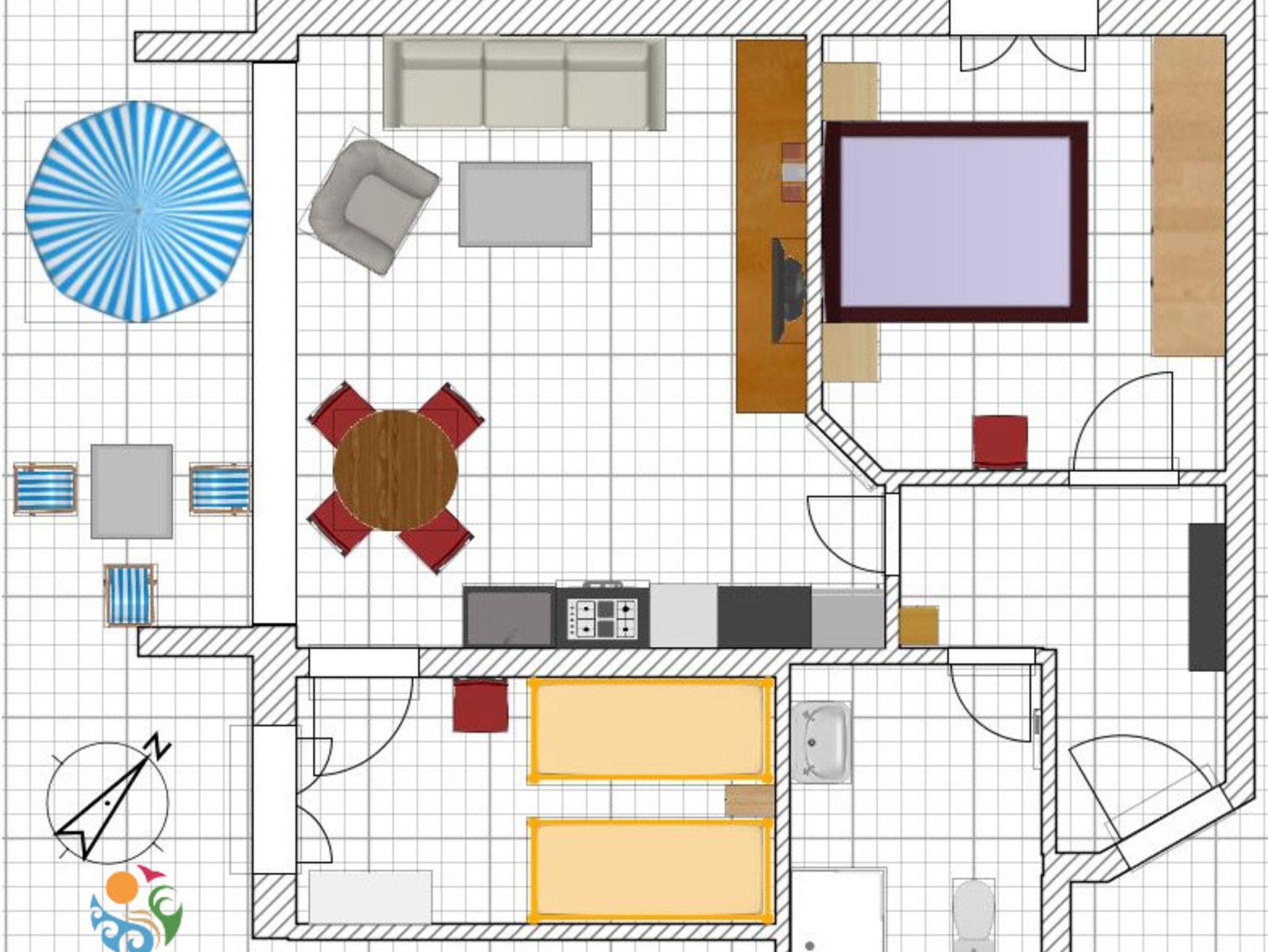 Diese gemütliche Drei-Zimmer-Wohnung verfügt über ein Wohnzimmer mit offener Vollküche und Sitzecke mit Schlafcouch (Liegefläche 1,40), sowie einem Eßplatz für 5 Personen. Der hell eingerichtete Schlafraum ist mit einem Doppelbett und genügend Schrankraum ausgestattet. Im zweiten Schlafraum befinden sich 2 Einzelbetten. TV und Radio sind selbstverständlich. Eine sonnige Südterrasse mit Grillmöglichkeit rundet diese Wohnung ab.
