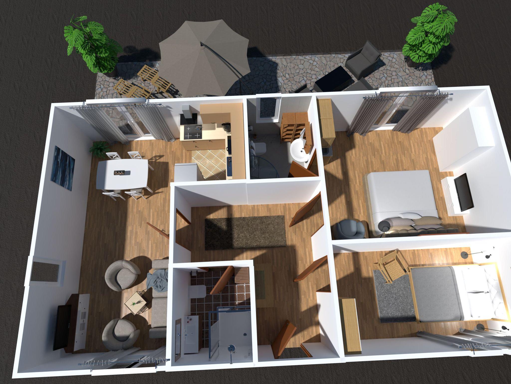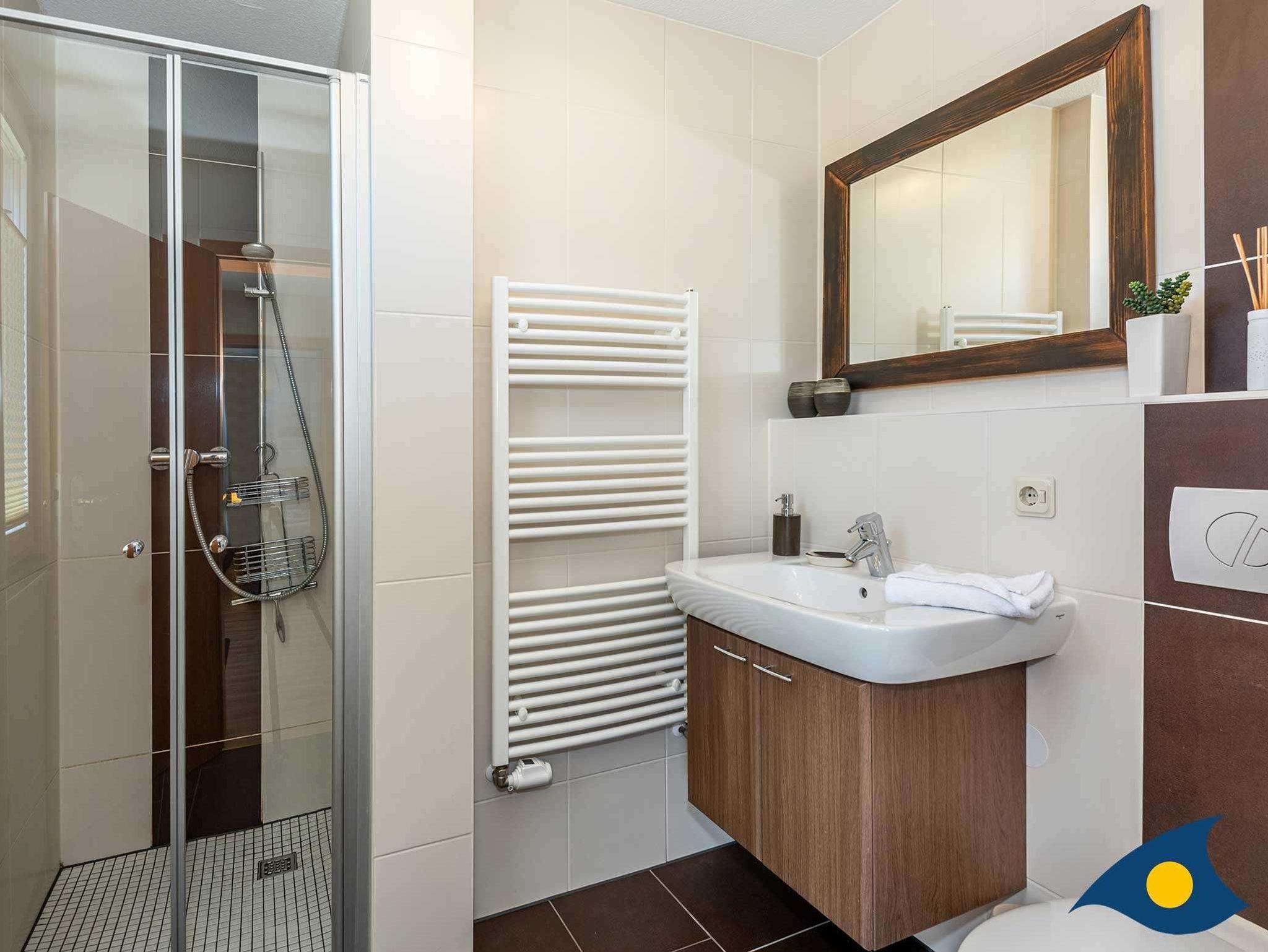Hier erwarten Sie jetzt ein modern eingerichtetes Wohnzimmer mit Schlafcouch, zwei Schlafzimmer mit Doppelbetten, eine komfortabel ausgestattete Küche mit Backofen und Mikrowelle und zwei Badezimmer mit Dusche und WC. Auf der großzügigen Terrasse mit gemütlicher Sitzecke darf gerne gegrillt und die Abende genossen werden.