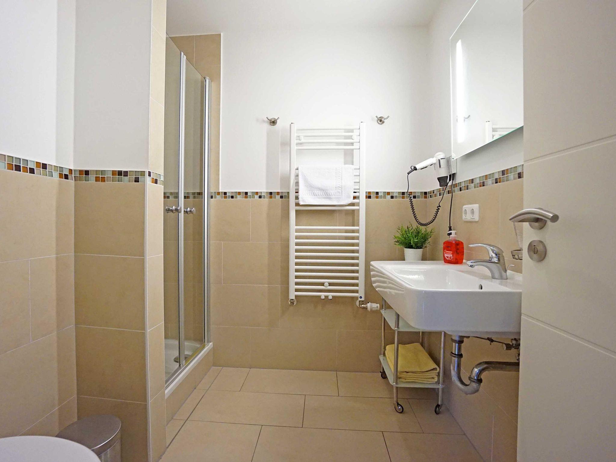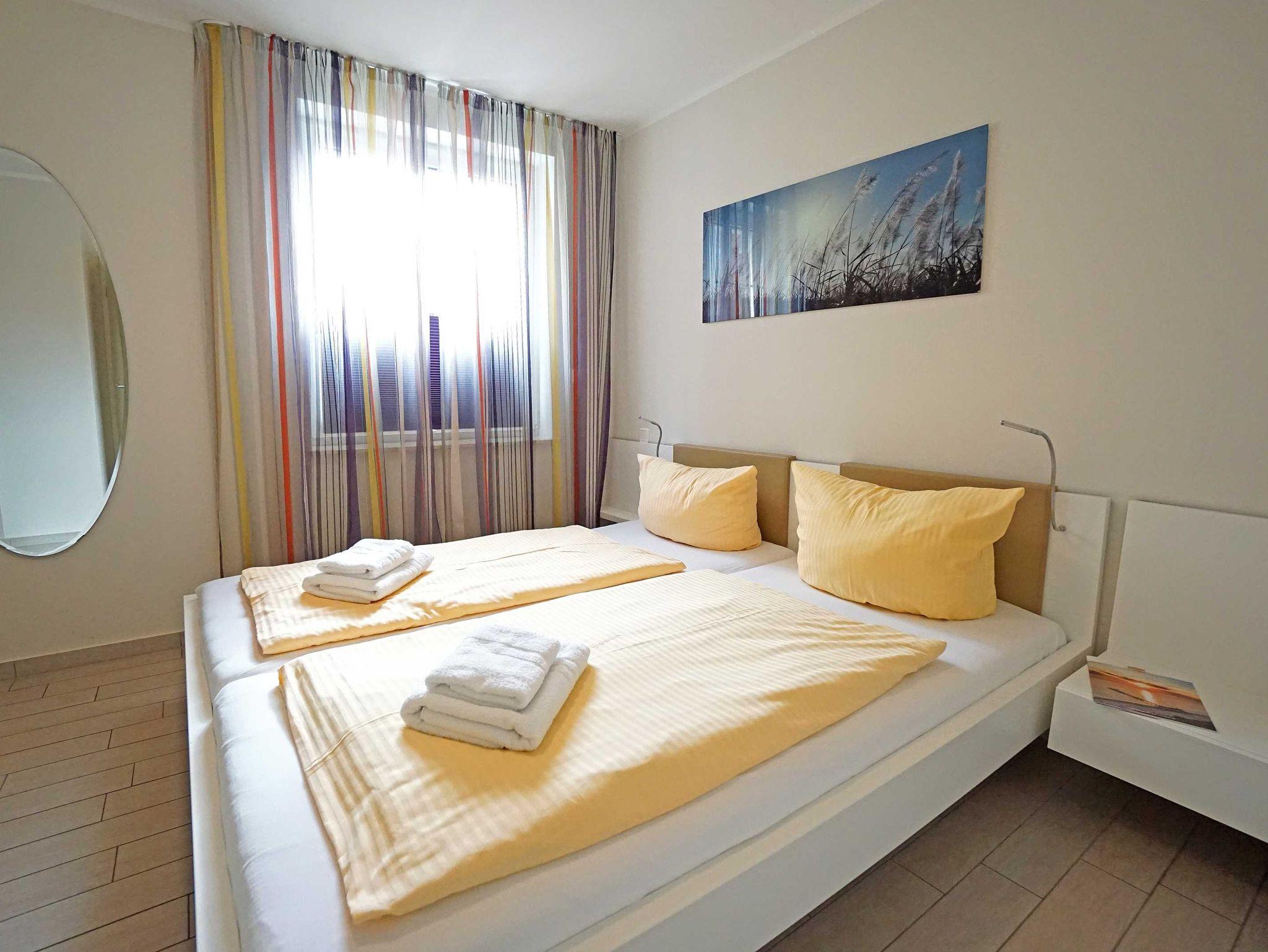 Moderne, stilvoll eingerichtete 2-Zimmer-Ferienwohnung im Erdgeschoss 46 qm, Wohnzimmer mit Sitzgruppe, komplett ausgestattete Küchenzeile mit Essbereich, Schlafzimmer mit Doppelbett, Bad mit Dusche und WC, Balkon, Pkw Tiefgaragenstellplatz.