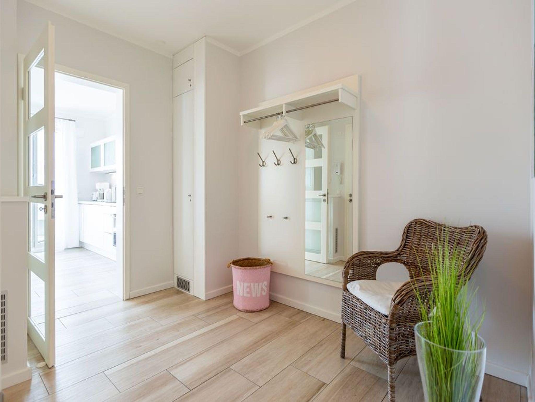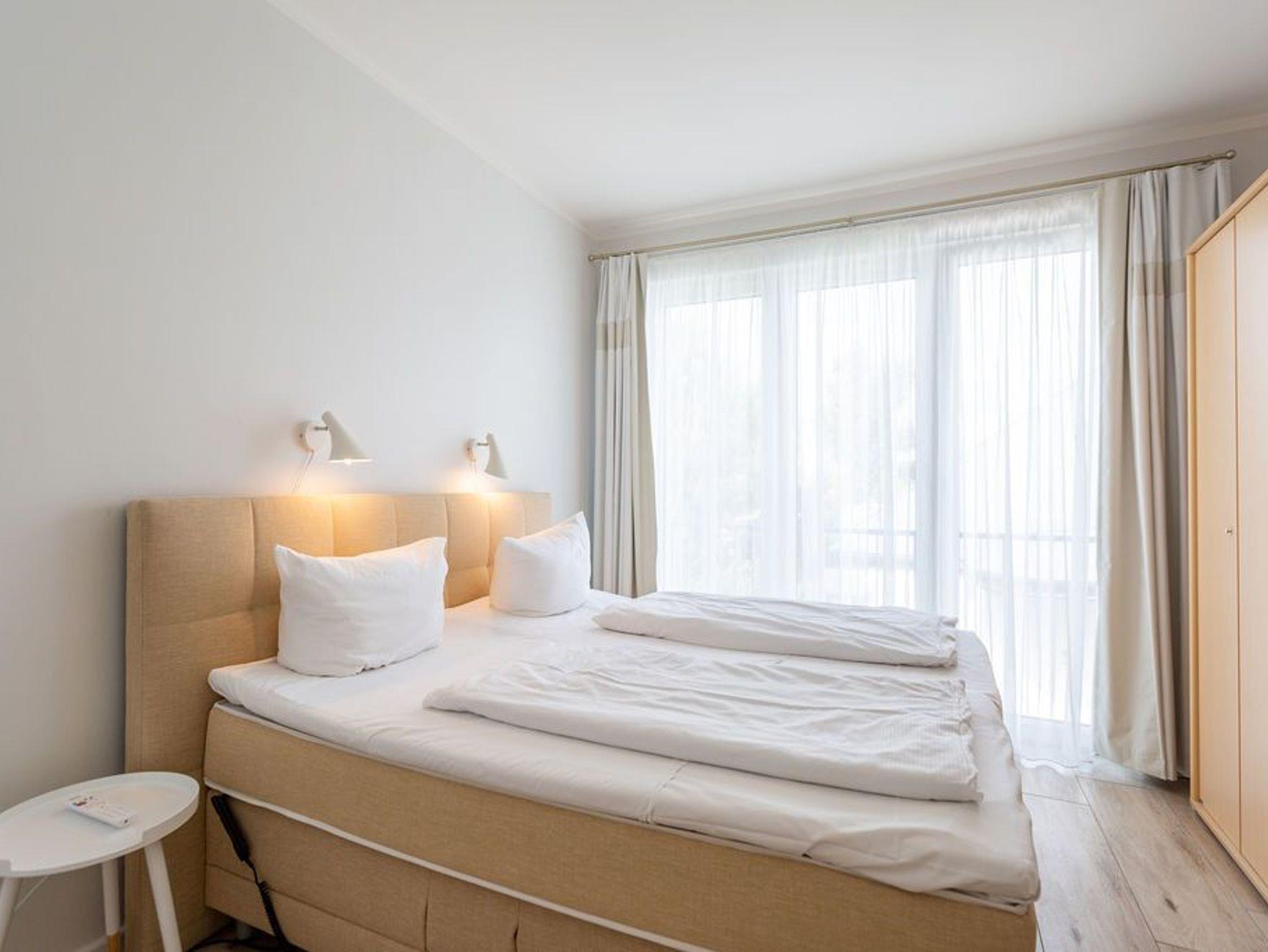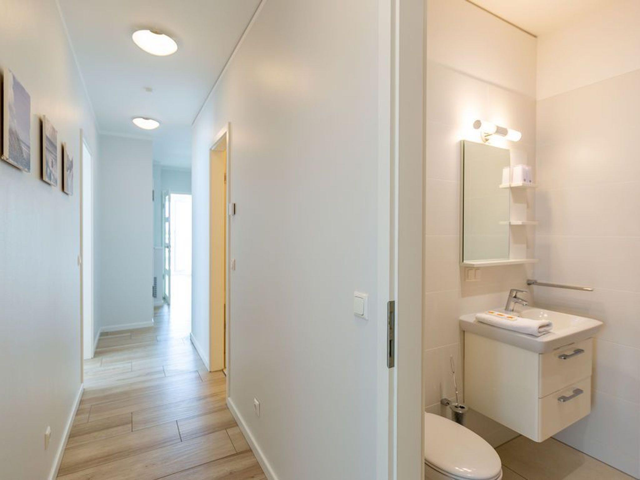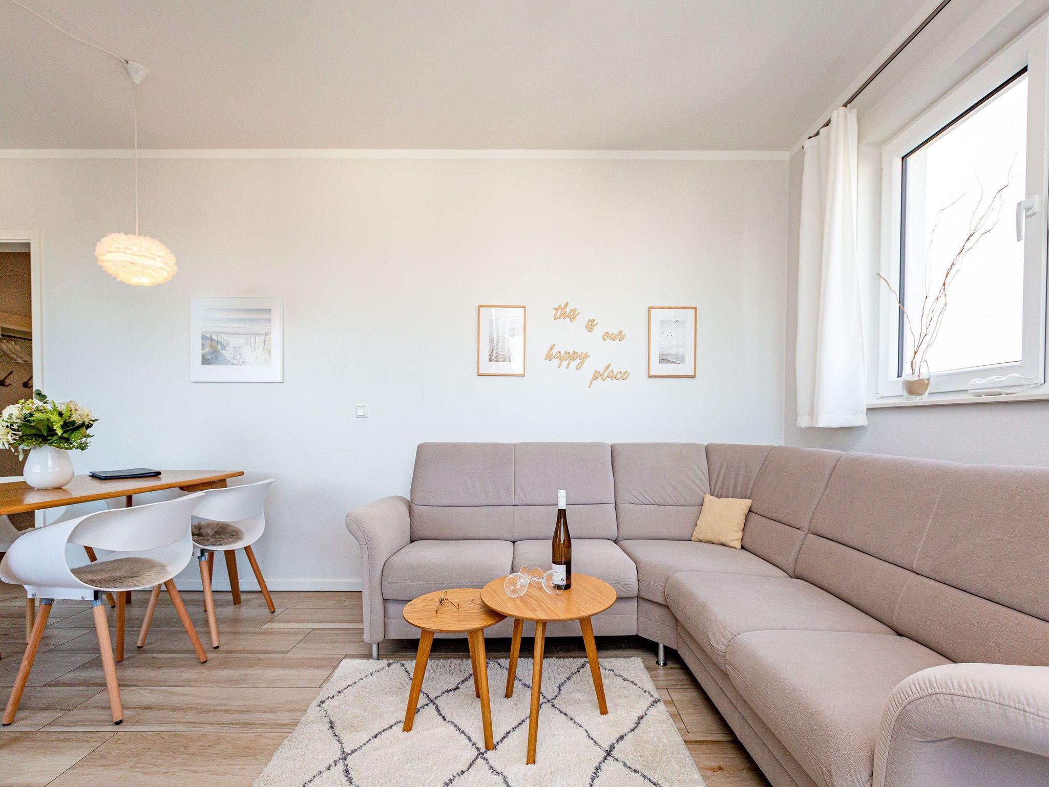 Der Blick wandert über die Dächer der alten Bädervillen bis über das Tiefblau der Ostsee. Mehr braucht ein Meerverliebter doch eigentlich gar nicht. Na gut. Ein schönes Dach über dem Kopf macht das Ganze unübertrefflich. Im Appartement 2 des Quartiers Arinja im 2. Obergeschoss werden Ostsee-Sehnsüchtige überglücklich. Auf den 84 Quadratmetern können bis zu vier Personen und ein Kleinkind (im Kinderreisebett) ihrer Inselliebe ausgiebig frönen. Wunderschön hell sind die Räume ? in dezenten Farben gehalten und modern eingerichtet. Das Wohnzimmer ist dazu noch unglaublich geräumig. Von hier aus haben Sie Zugang zum aussichtsreichen Balkon mit Gartenmöbeln. Hier scheint schon morgens die Sonne auf den Frühstückstisch. Auch drinnen finden Sie einen großen Esstisch mit ausreichend Stühlen vor. Das Wohnzimmer ist zudem mit einer bequemen Sofalandschaft ausgestattet. Ein Flat-TV sorgt für Heimkinofeeling. An kühlen Tagen spendet ein Gas-Kamin kuschelige Wärme. Zum Wohnzimmer gehört eine vollausgestattete Küchenzeile dazu. Ob Kühlschrank, Herd, Spülmaschine oder Mikrowelle ? es ist alles vorhanden. Auch edles Geschirr. Zwei Schlafzimmer warten mit komfortablen und höhenverstellbaren Boxspringdoppelbetten (1,80 m x 2,00 m) auf. In den Schränken finden Sie ausreichend Ablageflächen für die Urlaubsgarderobe vor. Das Appartement verfügt über zwei Bäder. Eines birgt neben der Dusche eine Finnische Sauna. Entspannen Sie hier wie in einem exklusiven Wellnesshotel. Eine Badewanne lädt im zweiten Bad zu entspannten Planschmomenten ein. Die Betten sind bei Ihrer Anreise bezogen. Handtücher liegen für Sie bereit. Das WLAN ist kostenfrei. In der Garage ist für Ihr Auto ein Stellplatz reserviert.