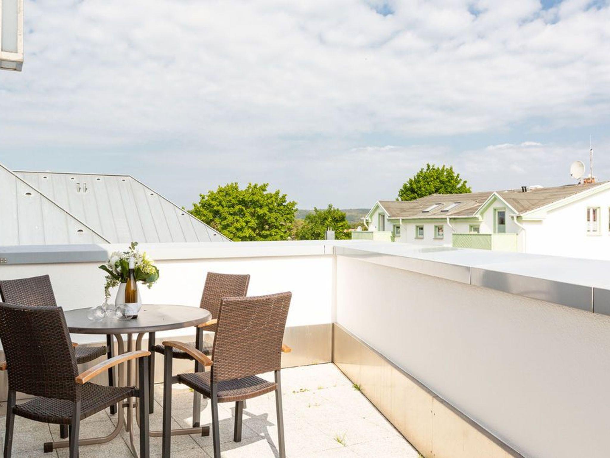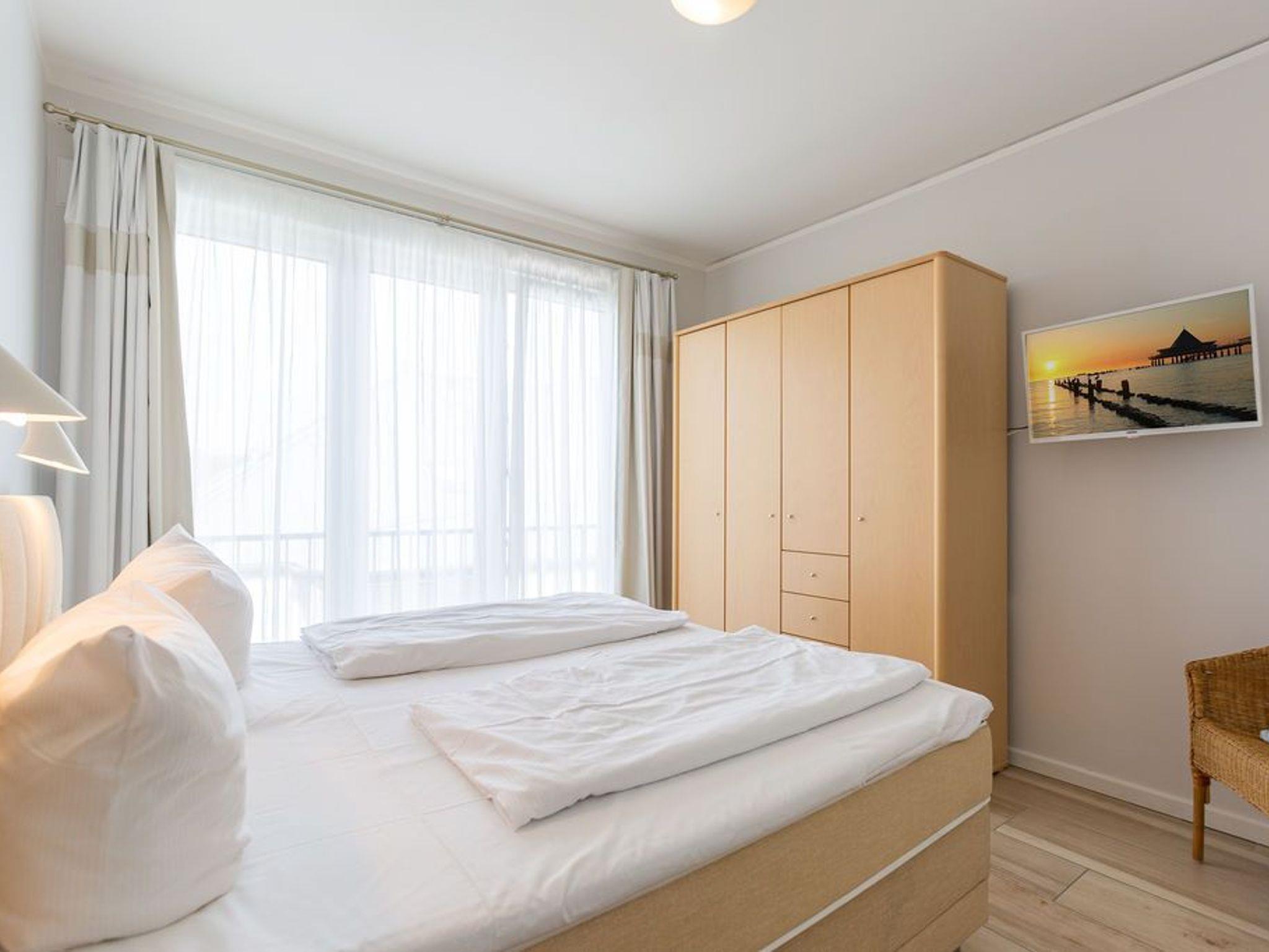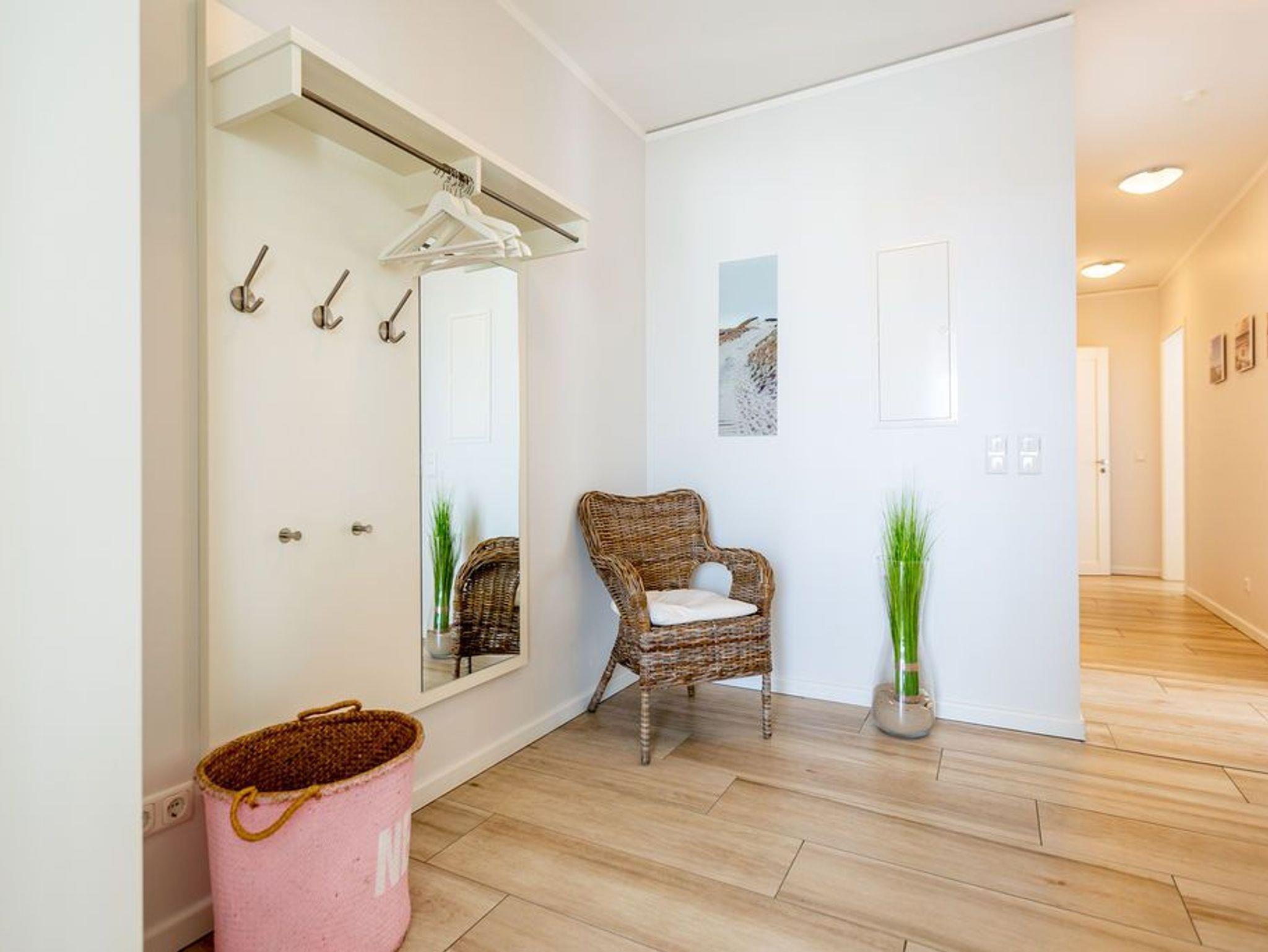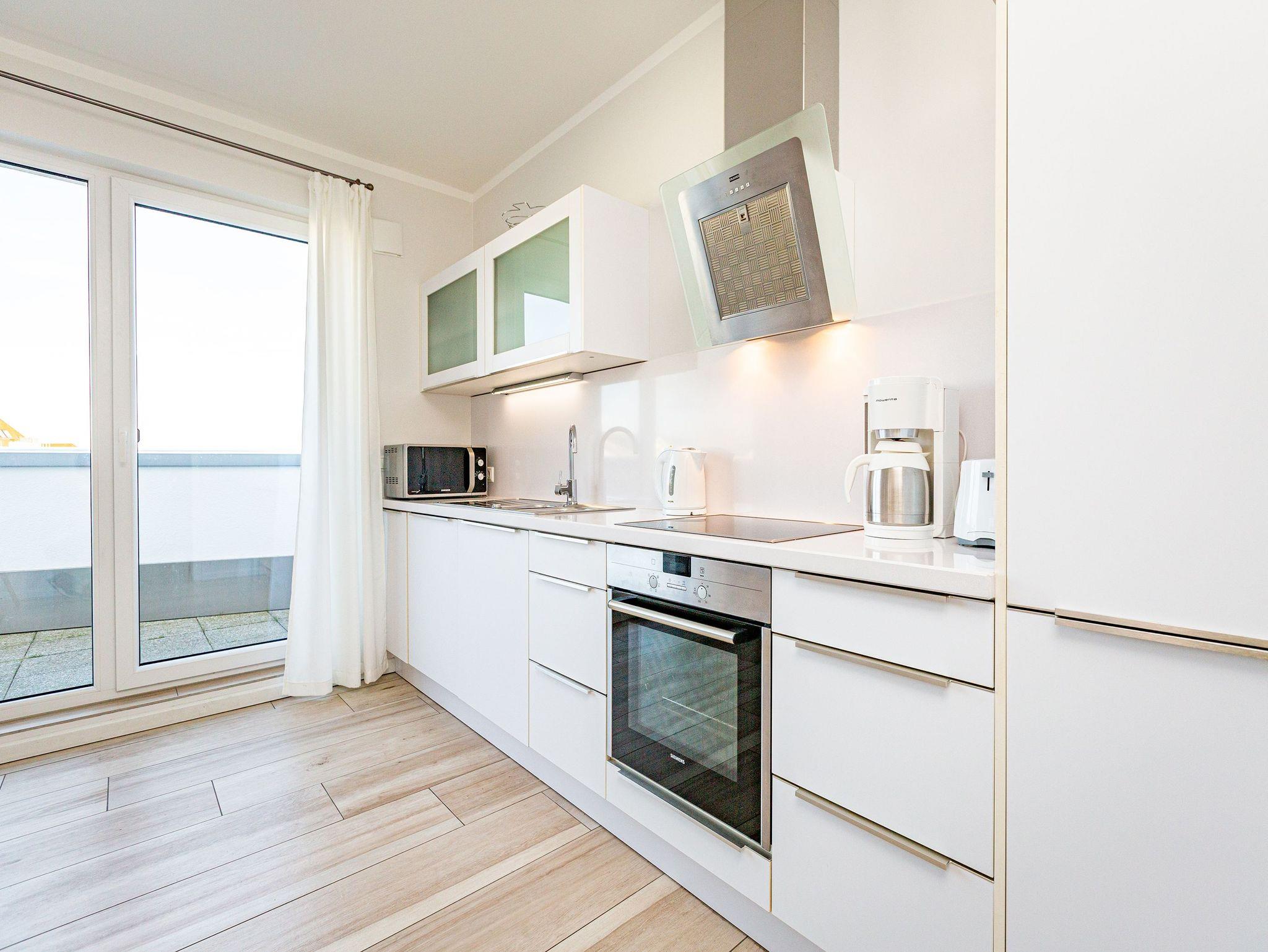 Der Blick wandert über die Dächer der alten Bädervillen bis über das Tiefblau der Ostsee. Mehr braucht ein Meerverliebter doch eigentlich gar nicht. Na gut. Ein schönes Dach über dem Kopf macht das Ganze unübertrefflich. Im Appartement 2 des Quartiers Arinja im 2. Obergeschoss werden Ostsee-Sehnsüchtige überglücklich. Auf den 84 Quadratmetern können bis zu vier Personen und ein Kleinkind (im Kinderreisebett) ihrer Inselliebe ausgiebig frönen. Wunderschön hell sind die Räume ? in dezenten Farben gehalten und modern eingerichtet. Das Wohnzimmer ist dazu noch unglaublich geräumig. Von hier aus haben Sie Zugang zum aussichtsreichen Balkon mit Gartenmöbeln. Hier scheint schon morgens die Sonne auf den Frühstückstisch. Auch drinnen finden Sie einen großen Esstisch mit ausreichend Stühlen vor. Das Wohnzimmer ist zudem mit einer bequemen Sofalandschaft ausgestattet. Ein Flat-TV sorgt für Heimkinofeeling. An kühlen Tagen spendet ein Gas-Kamin kuschelige Wärme. Zum Wohnzimmer gehört eine vollausgestattete Küchenzeile dazu. Ob Kühlschrank, Herd, Spülmaschine oder Mikrowelle ? es ist alles vorhanden. Auch edles Geschirr. Zwei Schlafzimmer warten mit komfortablen und höhenverstellbaren Boxspringdoppelbetten (1,80 m x 2,00 m) auf. In den Schränken finden Sie ausreichend Ablageflächen für die Urlaubsgarderobe vor. Das Appartement verfügt über zwei Bäder. Eines birgt neben der Dusche eine Finnische Sauna. Entspannen Sie hier wie in einem exklusiven Wellnesshotel. Eine Badewanne lädt im zweiten Bad zu entspannten Planschmomenten ein. Die Betten sind bei Ihrer Anreise bezogen. Handtücher liegen für Sie bereit. Das WLAN ist kostenfrei. In der Garage ist für Ihr Auto ein Stellplatz reserviert.