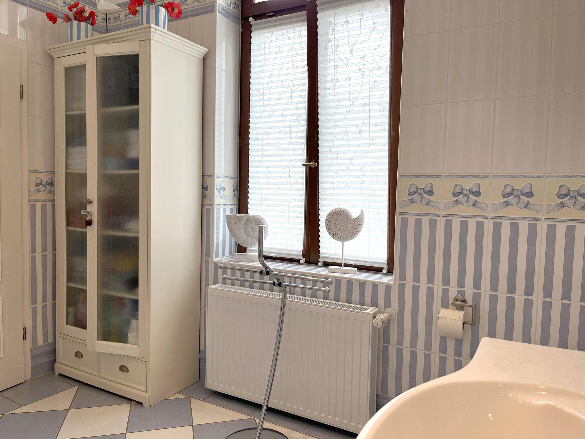 Das große Schlafzimmer verfügt über ein Doppelbett, Kleiderschrank und Kinderbett. Vom Schlafzimmer aus gelangen Sie in das große Tageslicht Badezimmer mit Badewanne, WC, Waschmaschine. Das zweite Badezimmer ist mit Dusche und WC ausgestattet.