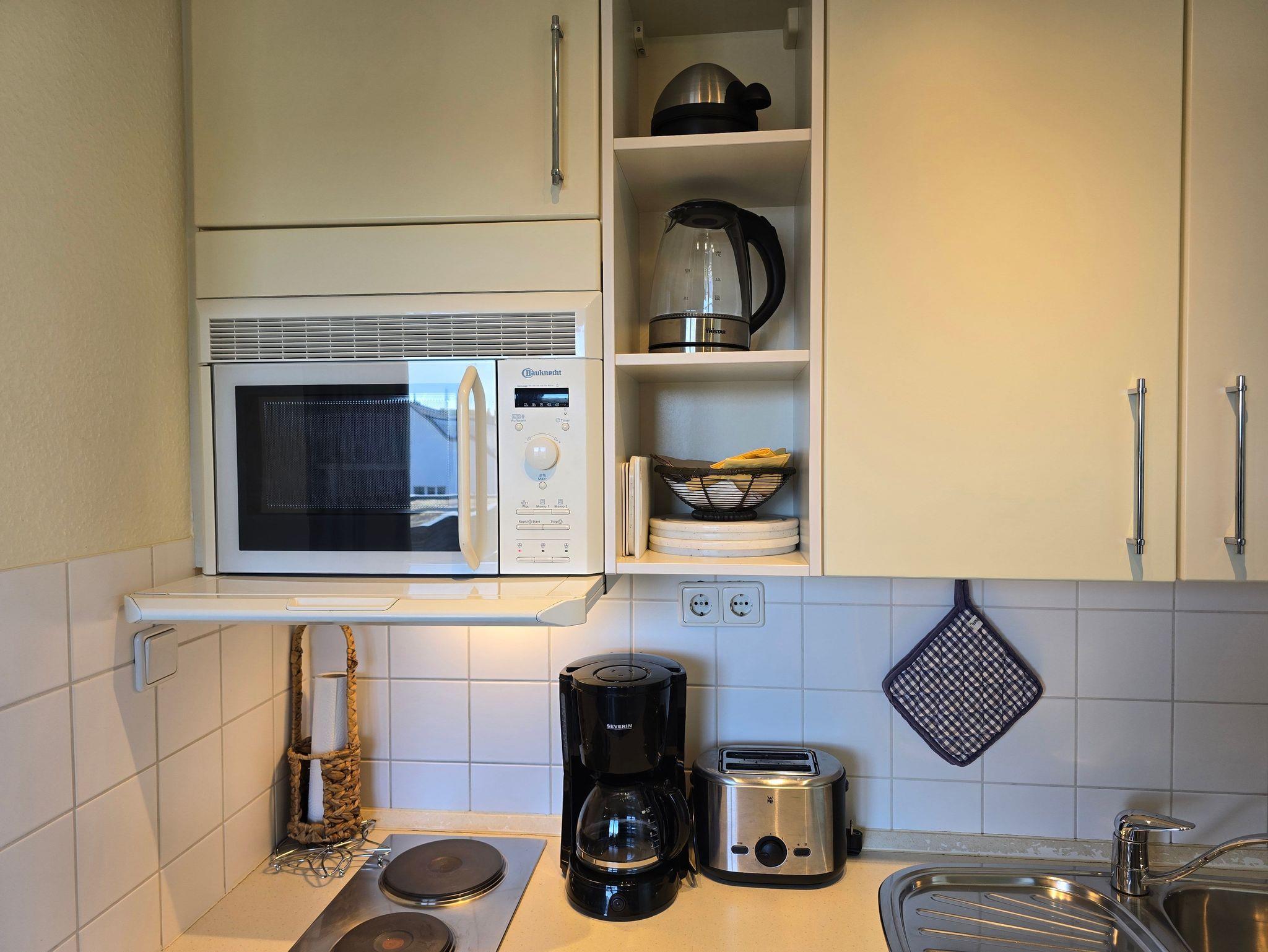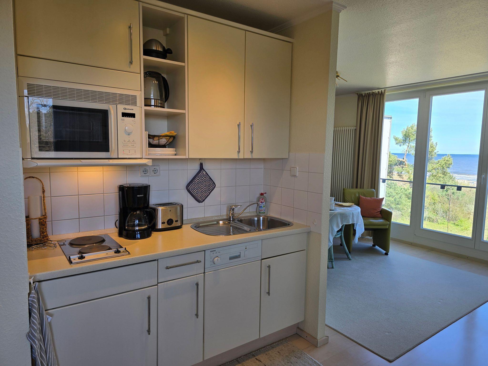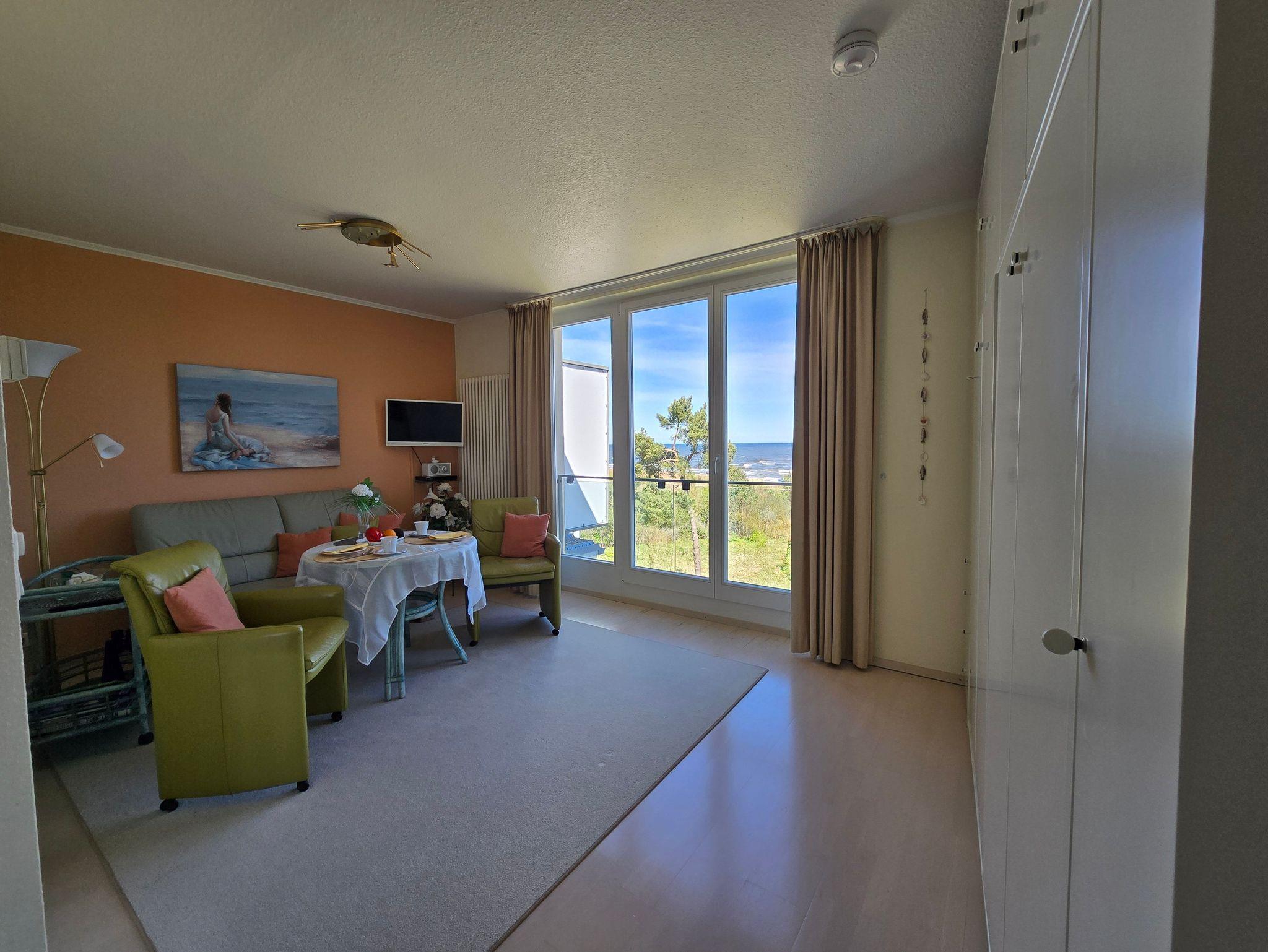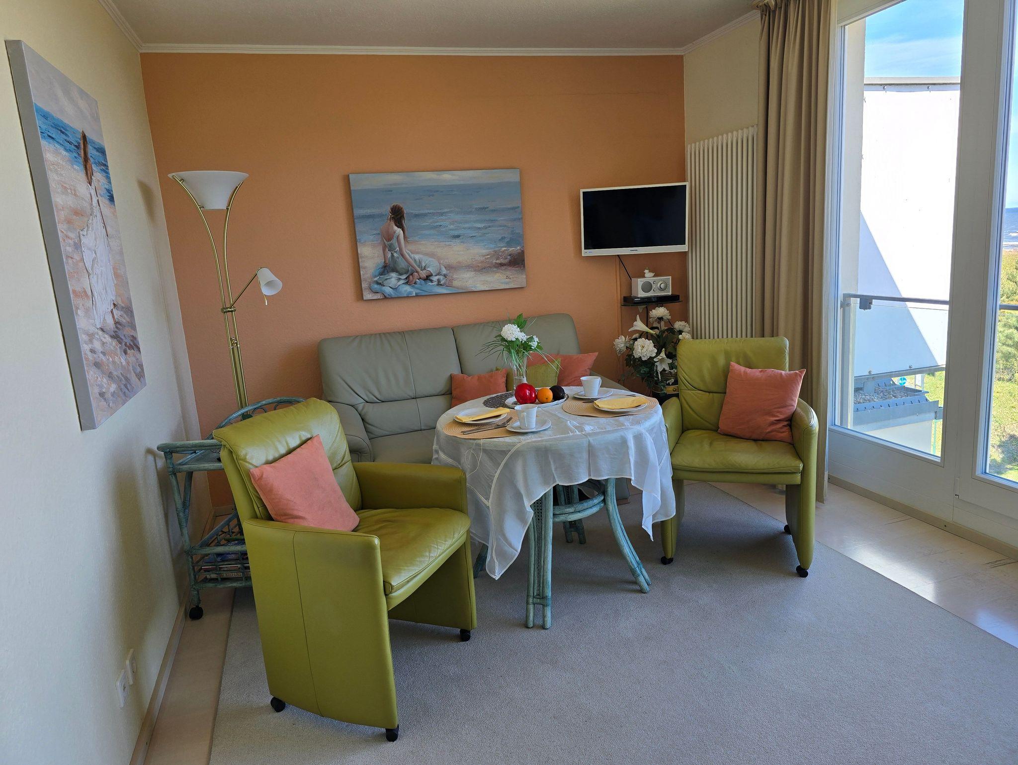 Komfortables, modernes NICHTRAUCHER-Appartement (40 qm) in der 3. Etage mit Balkon und einem herrlichen Meerblick. Ein kombin. Wohn-u. Schlafraum, einer Küchenzeile (mit Geschirrspüler, Mikrowelle, E-Herd, Kühlschrank, Kaffeemaschine etc.), W-Lan, Kabel-TV, kl. Radio, Safe sowie ein Bad mit DU/WC + Haarfön. Die Erstausstattung Bettwäsche und Handtücher ist inklusive.