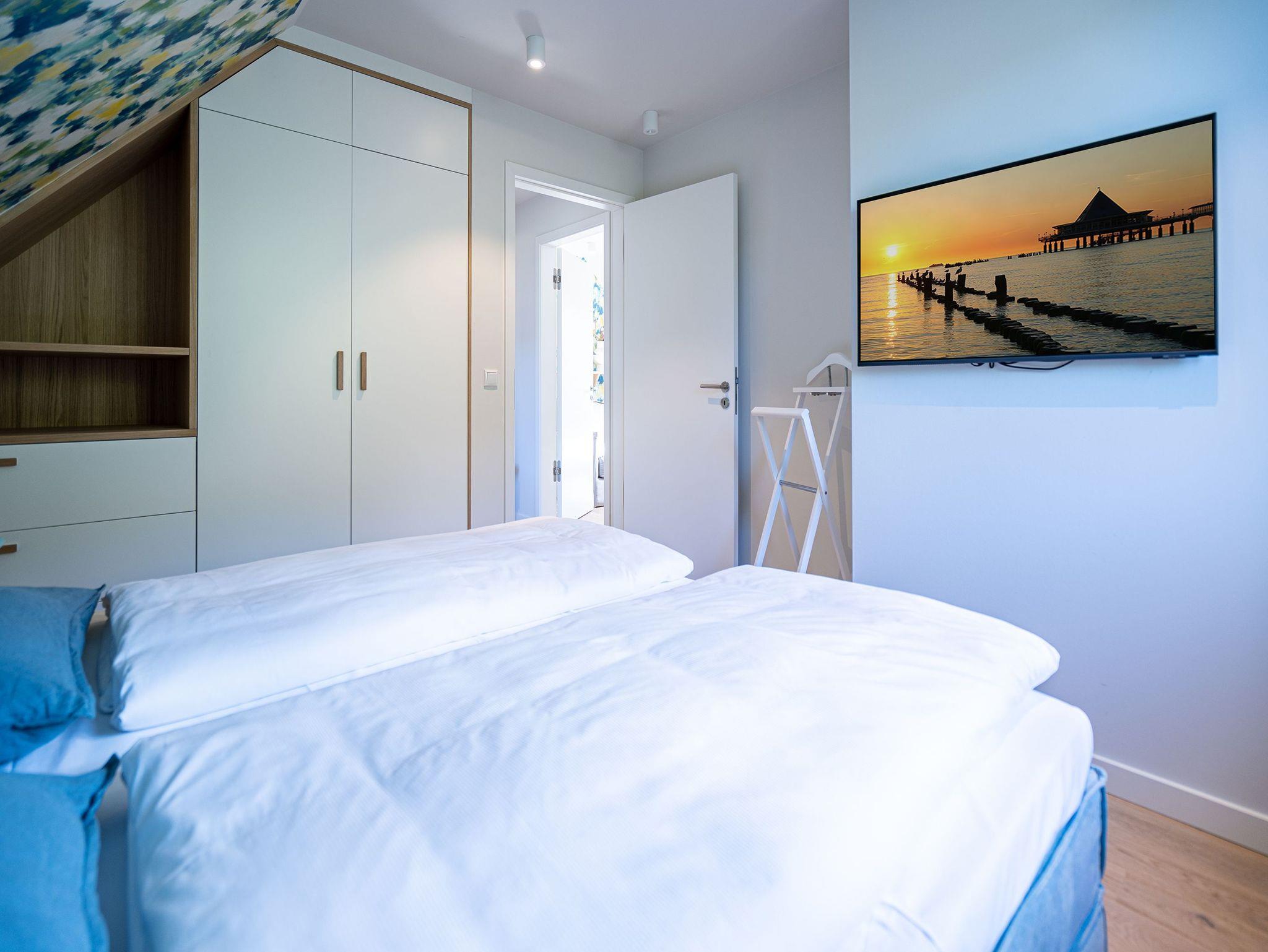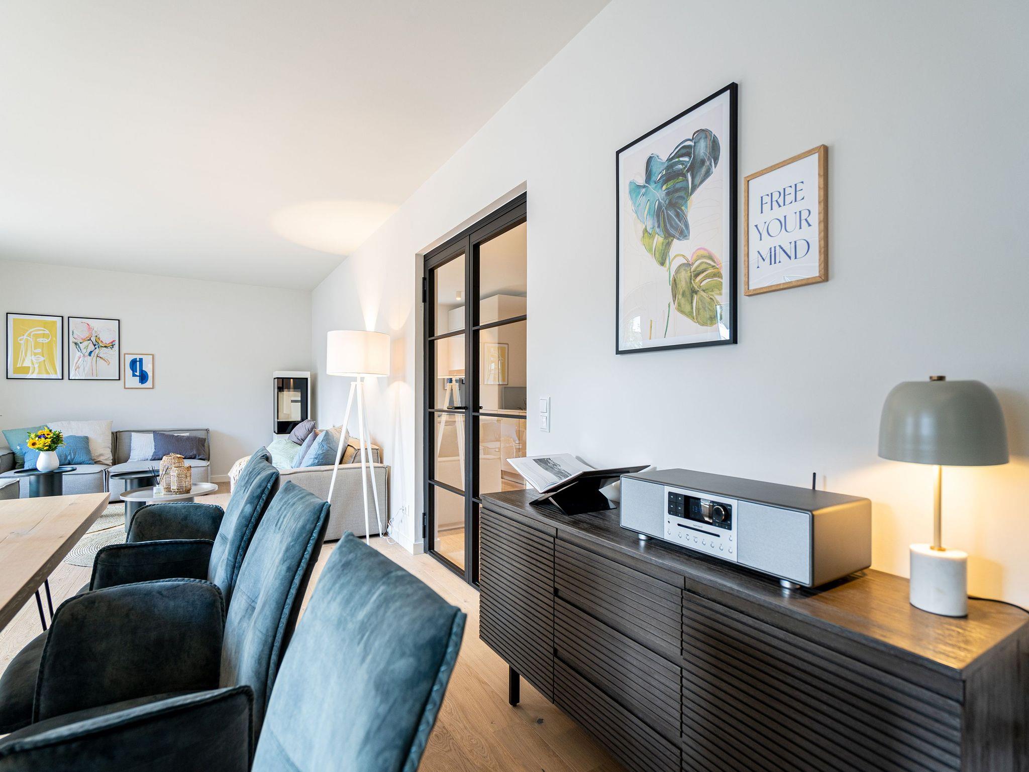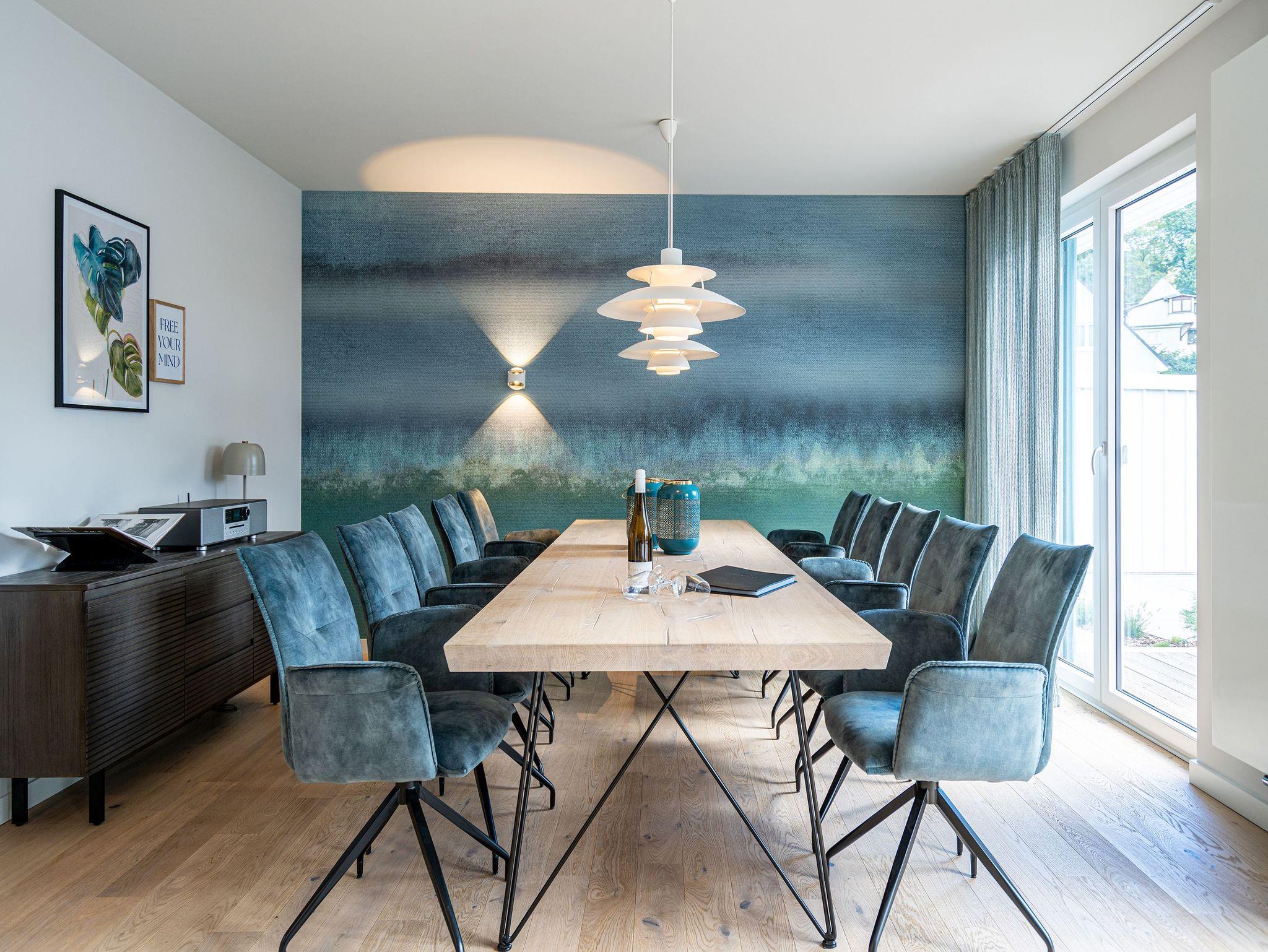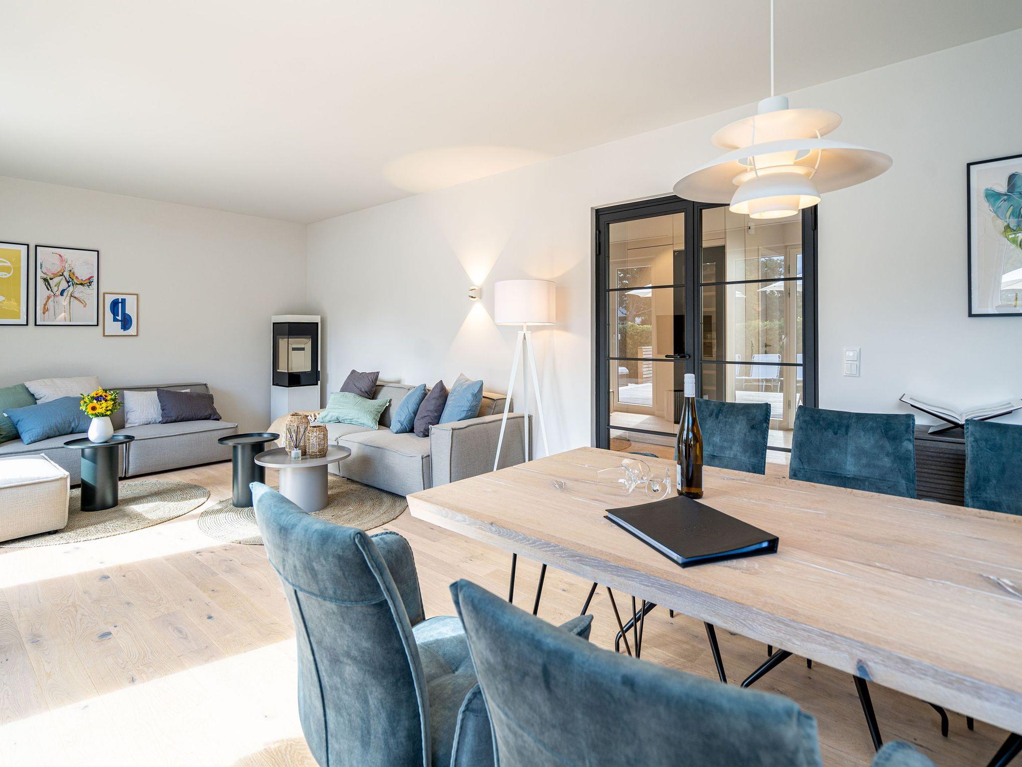 Unweit vom Strand liegt das Ferienhaus „Das Strandod“ wie ein Juwel in der Strandstraße im schönen Seebad Heringsdorf. Modernes Design und helle Farben sorgen für ein luxuriöses Strandhausfeeling. Über 2 Etagen erstrecken sich die insgesamt 170qm. Die durchdachte Raumaufteilung der insgesamt 5 Schlafzimmer und 3 Bäder macht dieses Objekt zum idealen Aufenthaltsort für Ihre Reise mit Freunden oder der Familie. Der offene Wohn-Essbereich im Erdgeschoss für bis zu 10 Erwachsenen [&] 2 Kinder bis 15 Jahre lädt zum gemeinsamen Verweilen ein. Neben Flat-TV und Sonoro Musikanlage mit CD-Player, Streaming und Radio wurde auch an einen gemütlichen Holzkamin gedacht. Stilvolle Möbel und dezente Design-Accessoires gepaart mit wenigen Farbtupfern perfektionieren die exklusive Inneneinrichtung im Erdgeschoss. In der voll ausgestatteten, modernen Küche stehen Ihnen hochwertige Markengeräte (Kühlschrank, Induktionskochfeld und Geschirrspülmaschine) zur Verfügung. Hier finden Sie außerdem zwei Backöfen, davon einer mit Mikrowellenfunktion, und diverse Kleinküchengeräte (darunter 2 Kaffeemaschinen sowie einer zusätzliche Nespresso-Kapselmaschine). Für das perfekte Klima für Ihre Weine sorgt ein extra Weinkühlschrank. Genießen Sie die Vorzüge der großzügigen Sonnenterrasse, die bequem von Wohnzimmer und Küche begehbar ist. Bis zu 12 Personen finden am einzigartigen Holztisch an gemeinsamen Grillabenden Platz. Ein Holzkohlengrill steht Ihnen ebenfalls zur Verfügung. Sonnenliegen und ein Außen-Whirlpool komplettieren die exklusive Außenanlage. Ebenfalls im Untergeschoss gelegen sind zwei der fünf Schlafzimmer, die jeweils mit einem Boxspringbett (1,80m x 2,00m), Flat-TV und Einbauschrank ausgestattet sind. Für 1 Kleinkind steht Ihnen außerdem ein Babyreisebett soweit 1 Hochstuhl im Hauswirtschaftsraum bereit. Das Masterbad mit freistehender Badewanne, Dusche, Waschtisch und WC mit Bidet-Brause rundet diese Etage ab. Drei weitere Schlafzimmer im Obergeschoss mit Boxspringbetten (1,80m x 2,00m), Einbauschränken und Flat-TVs versprechen höchsten Schlafkomfort während Ihres Aufenthaltes. Besonders praktisch sind die beiden Bäder mit Dusche, Waschtisch und WCs mit Bidet-Brausen auf der selben Etage - perfekt für Ihren Urlaub mit mehreren Reisenden. Das Highlight im Obergeschoss bildet der separate Relaxraum mit Relaxsesseln, zwei kleinen Kühlschränken, einer Sonoro-Streaming Anlage sowie einer Holzsauna für bis zu 4 Personen. Damit Sie auch im Urlaub nicht auf Waschkomfort verzichten müssen, verfügt das Ferienhaus über eine Waschmaschine und einen Trockner. Mit 4 PKW-Stellplätzen sowie einem Stellplatz in der Doppelgarage sind ausreichend Parkmöglichkeiten vorhanden. Für Ihr E-Auto steht eine E-Ladesäule (kostenpflichtig) zur Verfügung. Reisende mit Fahrrädern können diese in der zweiten Hälfte der Doppelgarage einschließen. Für einen komfortablen Start in Ihren Urlaub sind die Betten bei Anreise bezogen und Handtücher liegen für Sie bereit. Kostenfreies WLAN komplettiert das Ferienhaus „Das Strandod“.