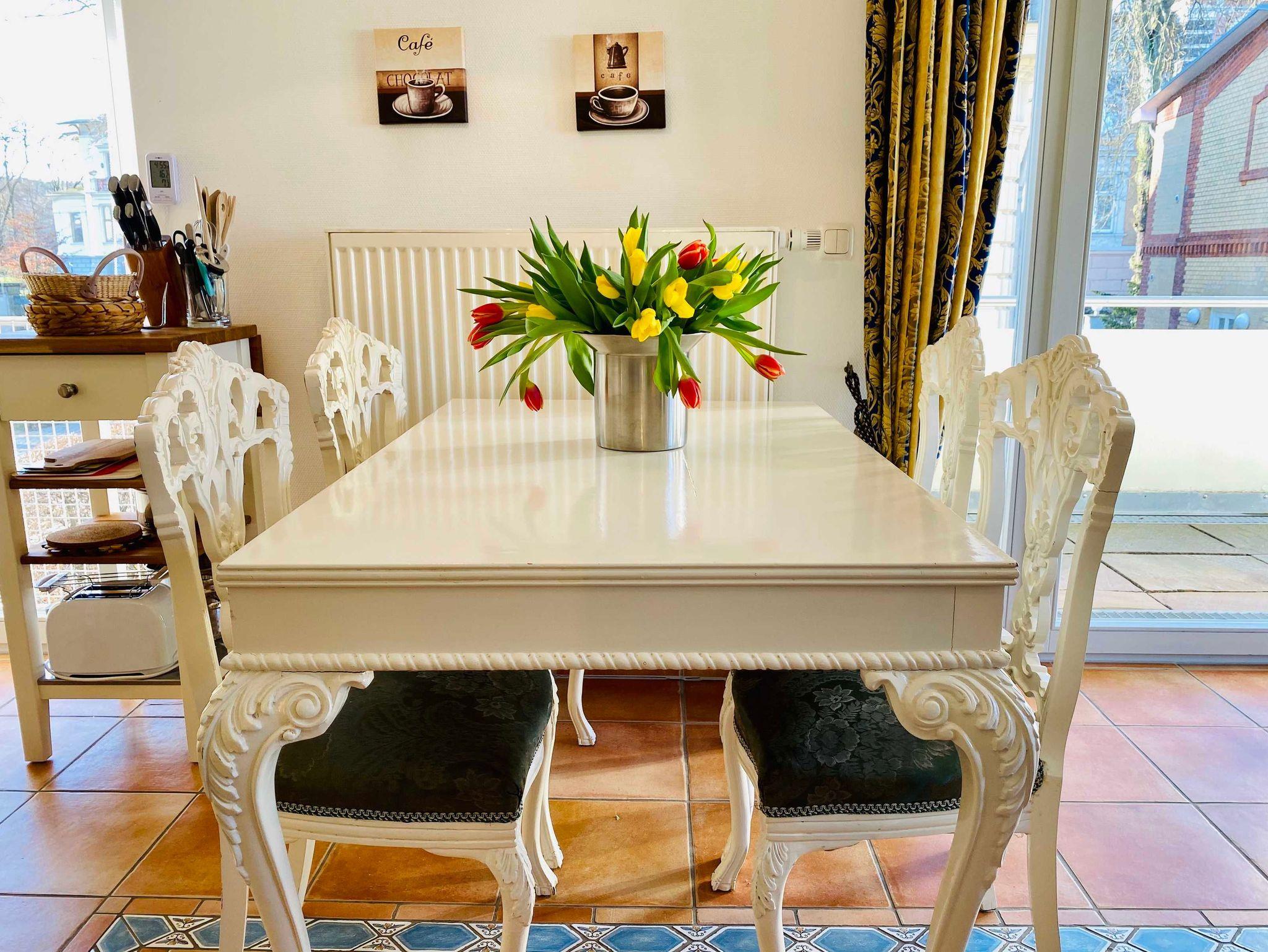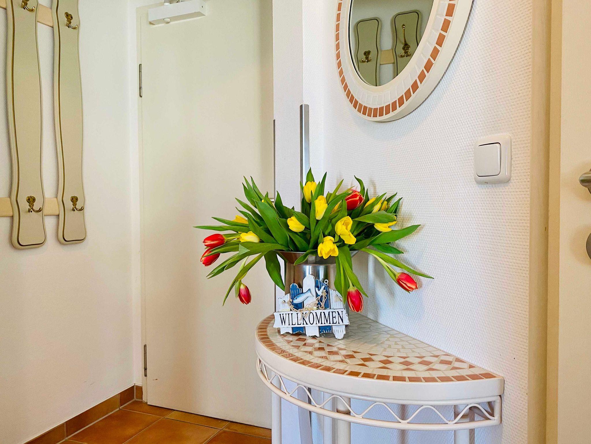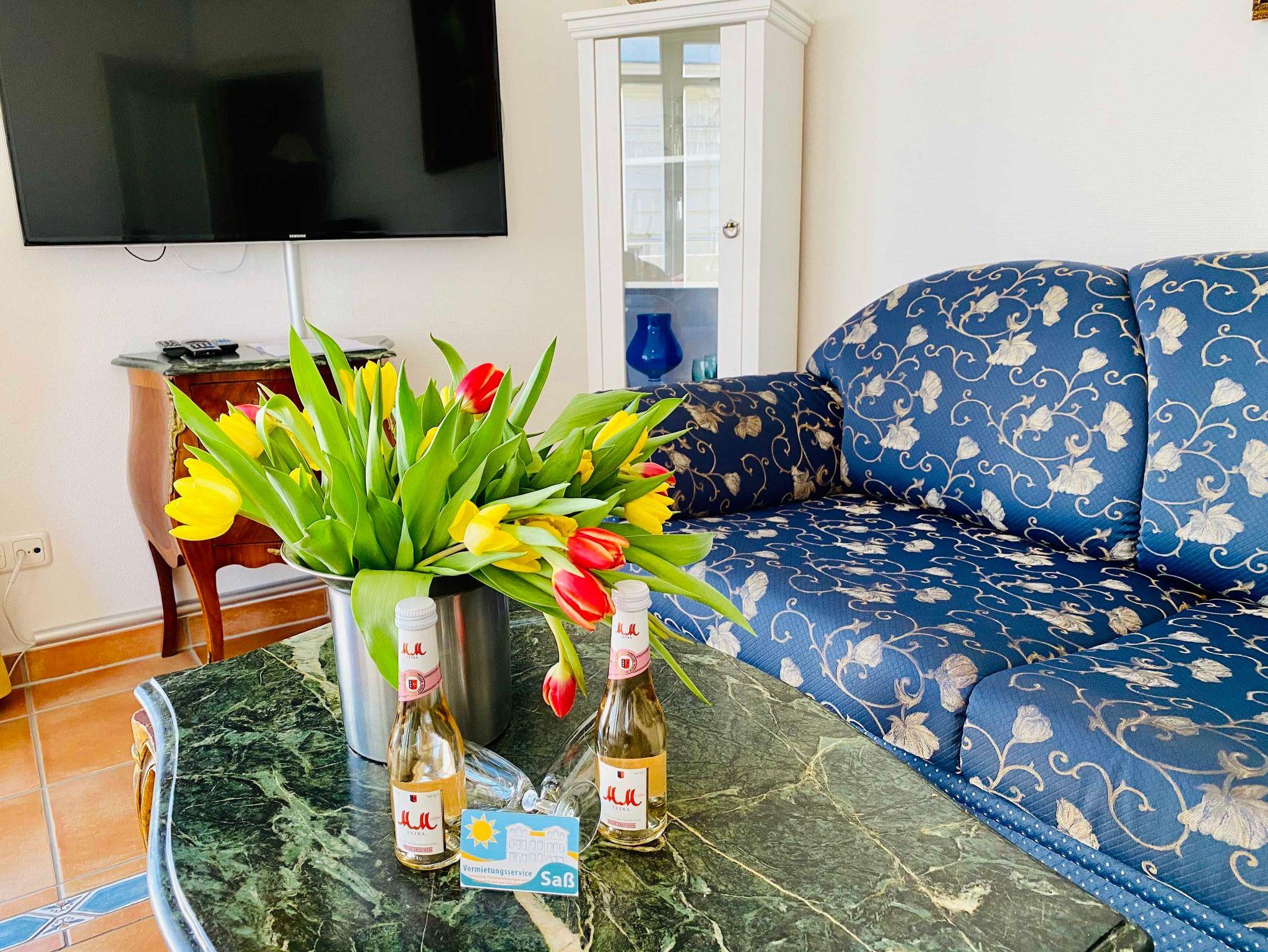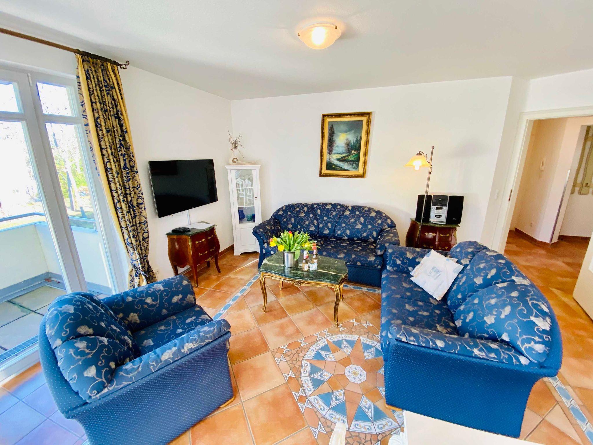 Die schöne Dreiraumwohnung 18 befindet sich im ersten Obergeschoss der Villa Rondell und ist mit einem Aufzug erreichbar. Im Wohnzimmer befindet sich ein großer Esstisch, eine Sitzecke und eine kleine Küchenzeile und einen großen Balkon in Richtung Südwest Die Schlafzimmer mit Doppelbetten in 1,80er und 1,60er Breite sind mit modernem Designbelag ausgelegt und mit Kleiderschrank ausgestattet, außerdem überzeugt die Wohnung durch sehr schöne Steinfliesen. Zur Ferienwohnug gehört ein Badezimmer mit Dusche.