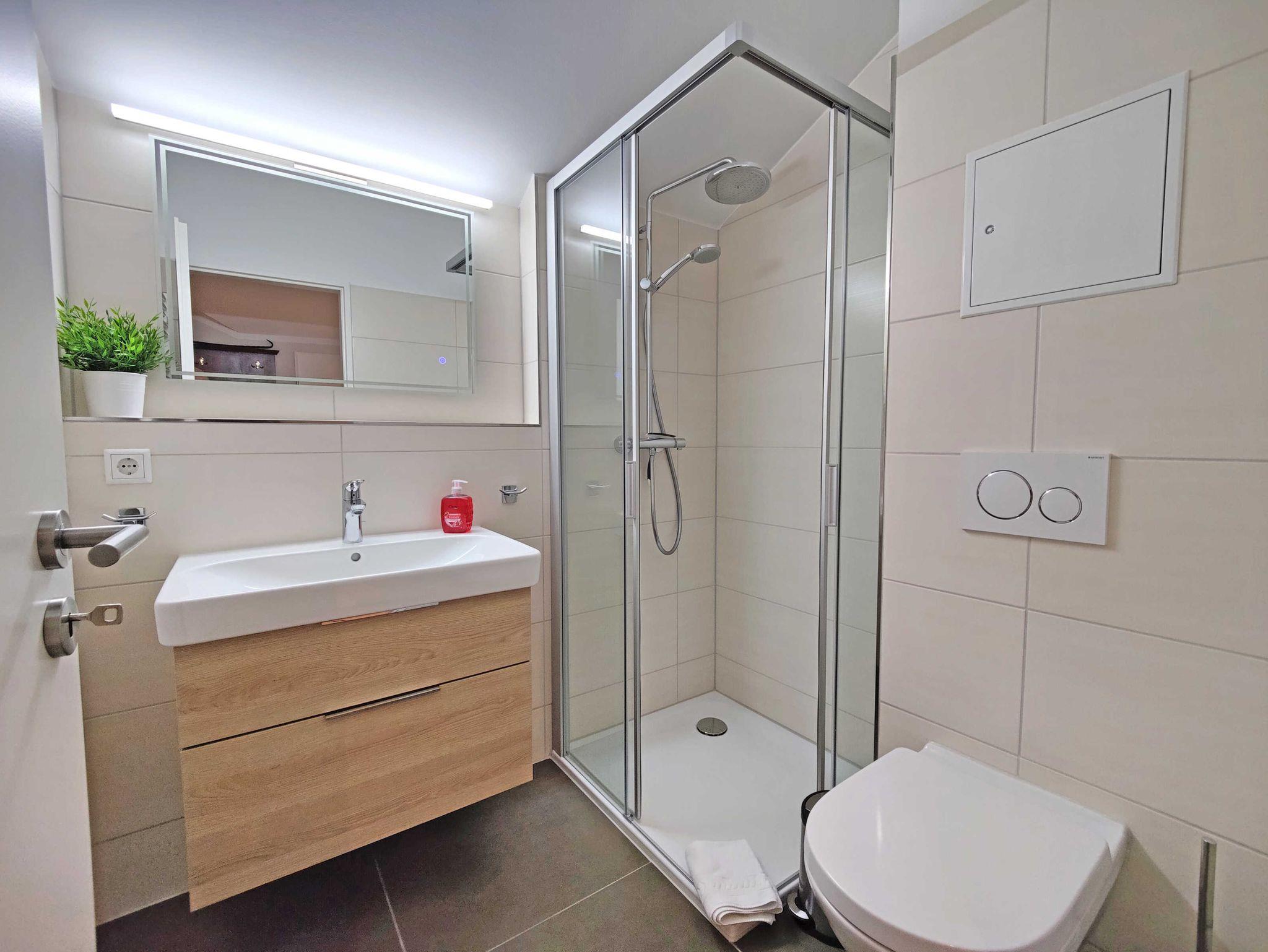 Der helle Wohnraum verfügt über eine offene und voll ausgestattete Küche sowie einen Esstisch für 4 Personen. Des Weiteren befindet sich dort eine gemütliche Sitzecke mit TV. Die Wohnung ist ideal für Familien mit 2 Erwachsenen und 2 Kindern. Für den erholsamen Schlaf gibt es im lichtdurchfluteten Schlafzimmer ein Doppelbett. Das zweite Schlafzimmer mit 2 Einzelbetten ist für Kinder besonders gut geeignet.
