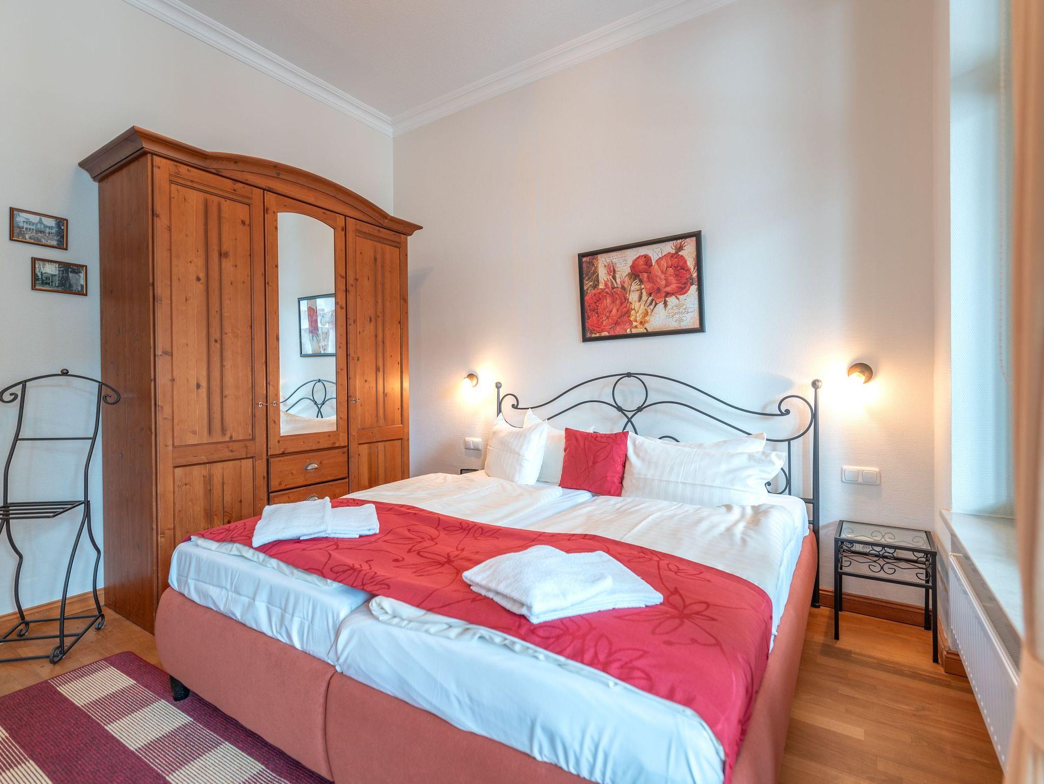Die Ferienwohnung Nr. 9 in der denkmalgeschützten Villa Perkunos verbindet historischen Charme mit modernem Wohnkomfort und lädt zu einem stilvollen Urlaub im Herzen von Heringsdorf ein. Die aufwendig sanierte Villa bietet hochwertig ausgestattete Apartments, zu jedem gehört ein PKW-Stellplatz auf dem Hof, und das WLAN kann kostenfrei genutzt werden. Das Grundstück ist umzäunt und durch ein elektrisches Tor gesichert, sodass Sie Privatsphäre und Sicherheit genießen.