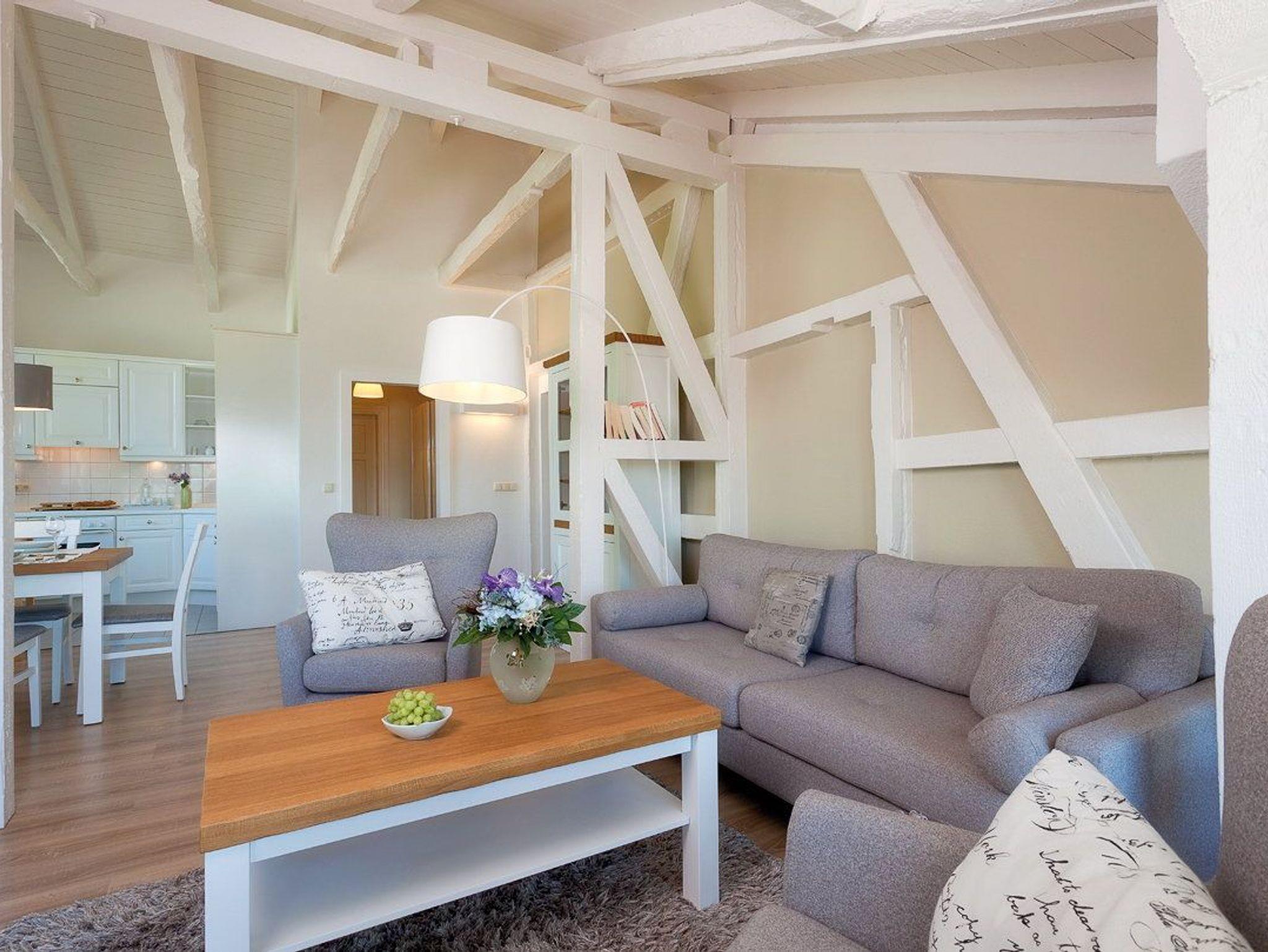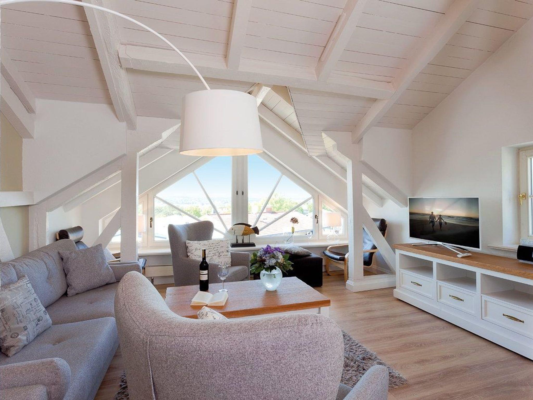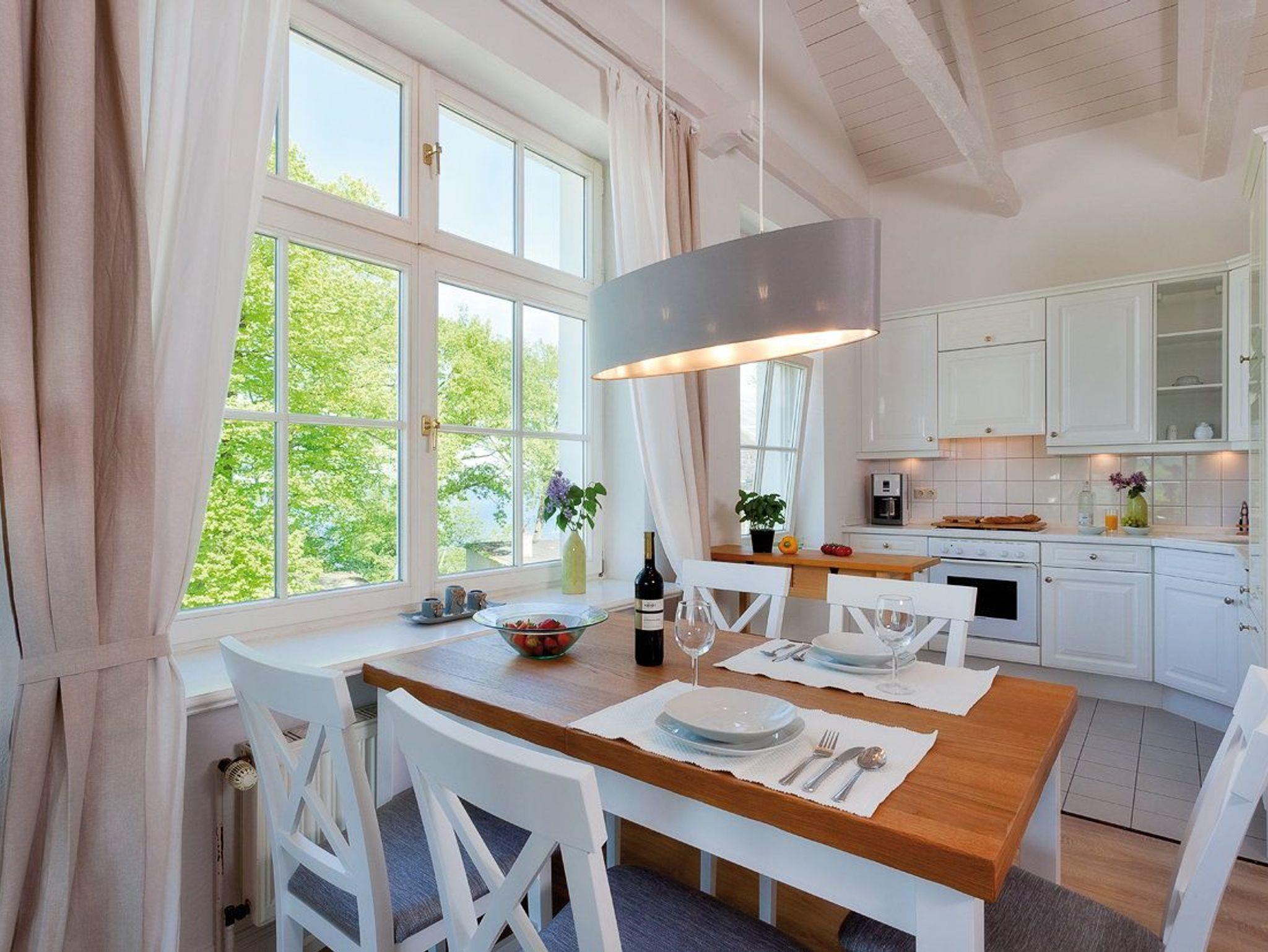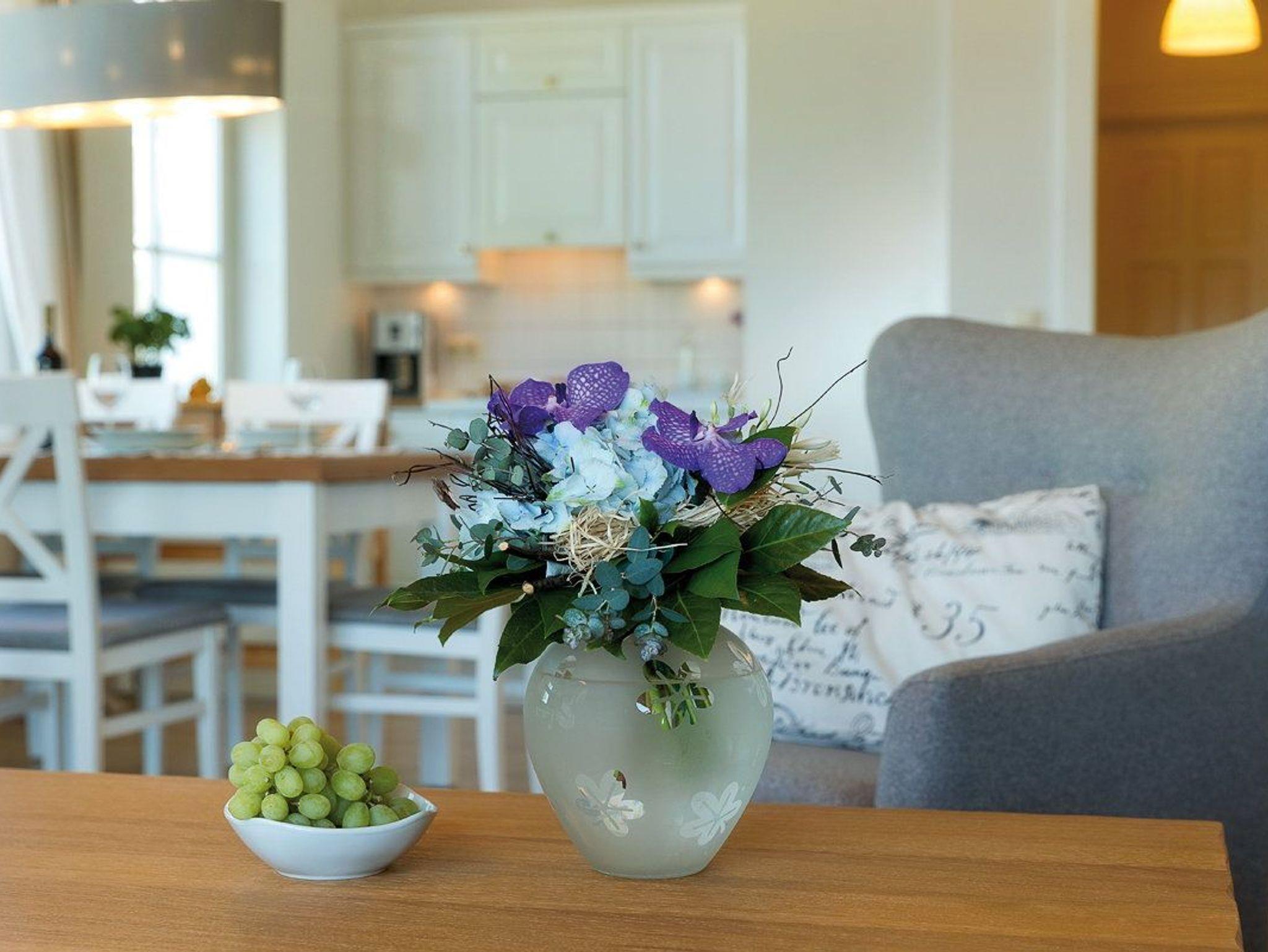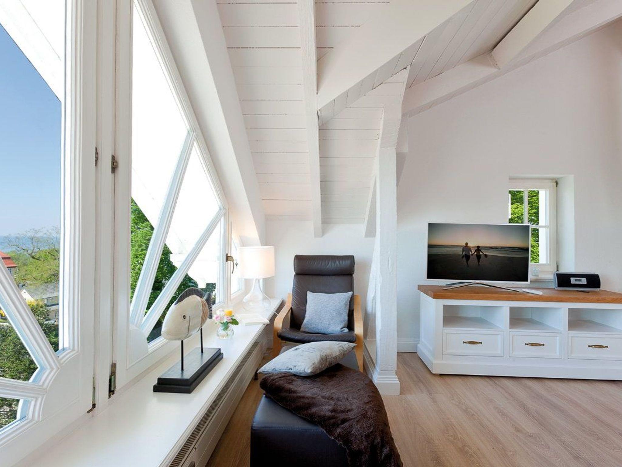 Highlight des Appartements ist die große Fensterfront des Wohnzimmers, die einen tollen Blick auf die Ostsee und über die Dächer von Heringsdorf bis nach Bansin gewährt. Aber auch vom Esstisch und in der Küche genießen Sie den Meerestraum Pur.