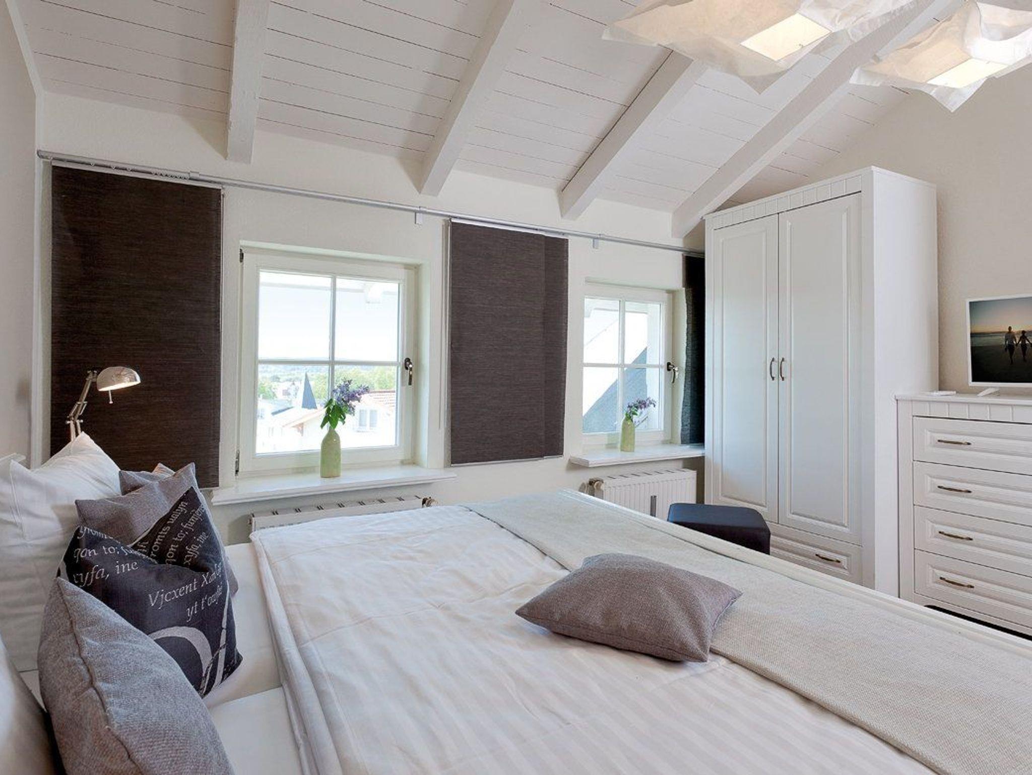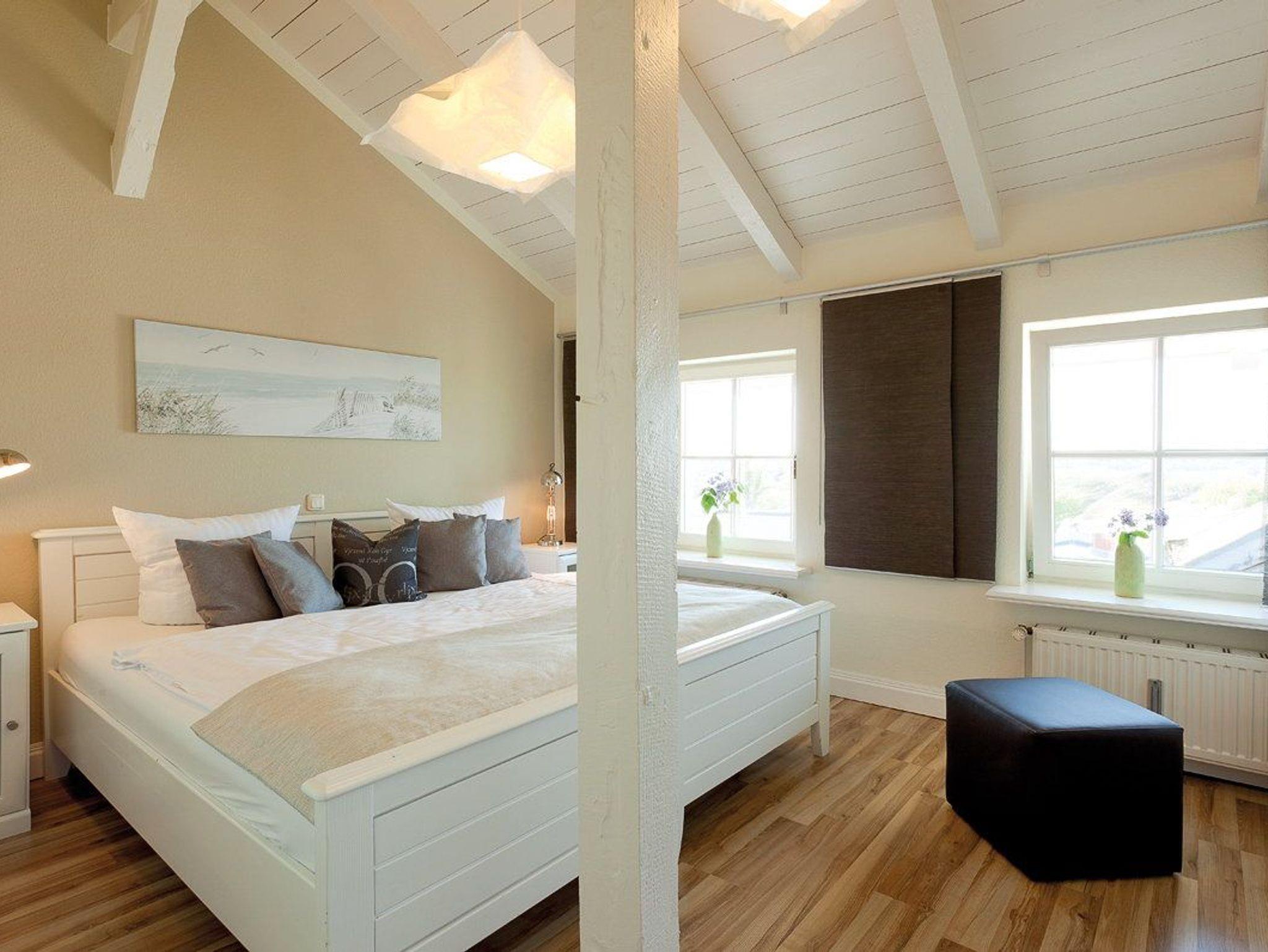 Die insgesamt fünf Schlafplätze verteilen sich auf zwei Schlafzimmer sowie einer Aufbettung auf dem Sofa im Wohnzimmer. Das erste Schlafzimmer ist mit einem komfortablen Doppelbett (200 x 200cm / zwei getrennte Matratzen) ausgestattet. Für die unterhaltsamen Stunden vom Bett aus sorgt der Flat TV. Das Kinderschlafzimmer verfügt über zwei Einzelbetten (je 80 x 200cm).
