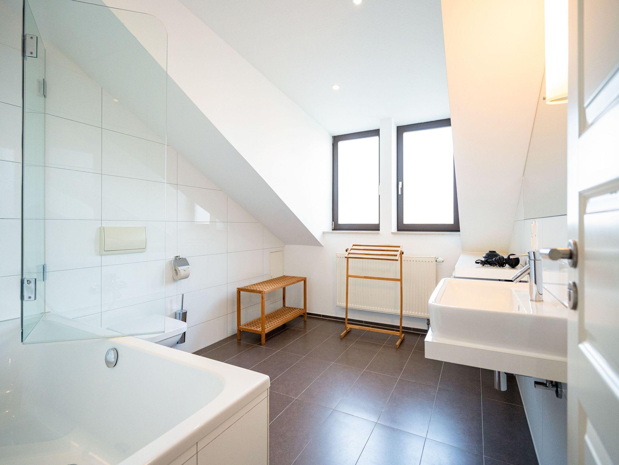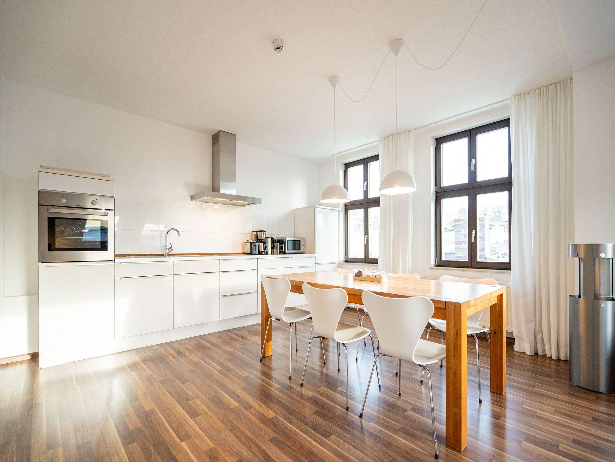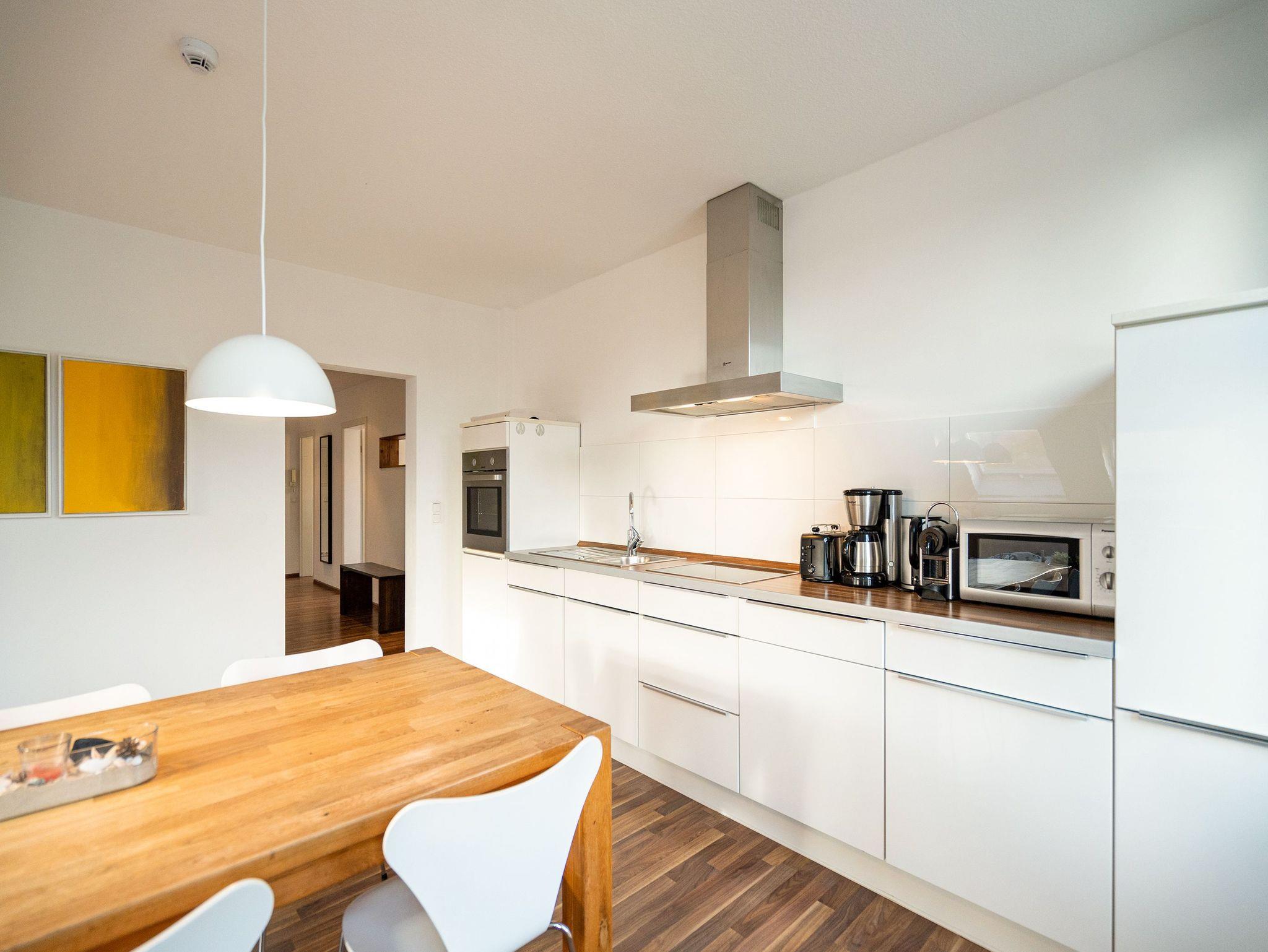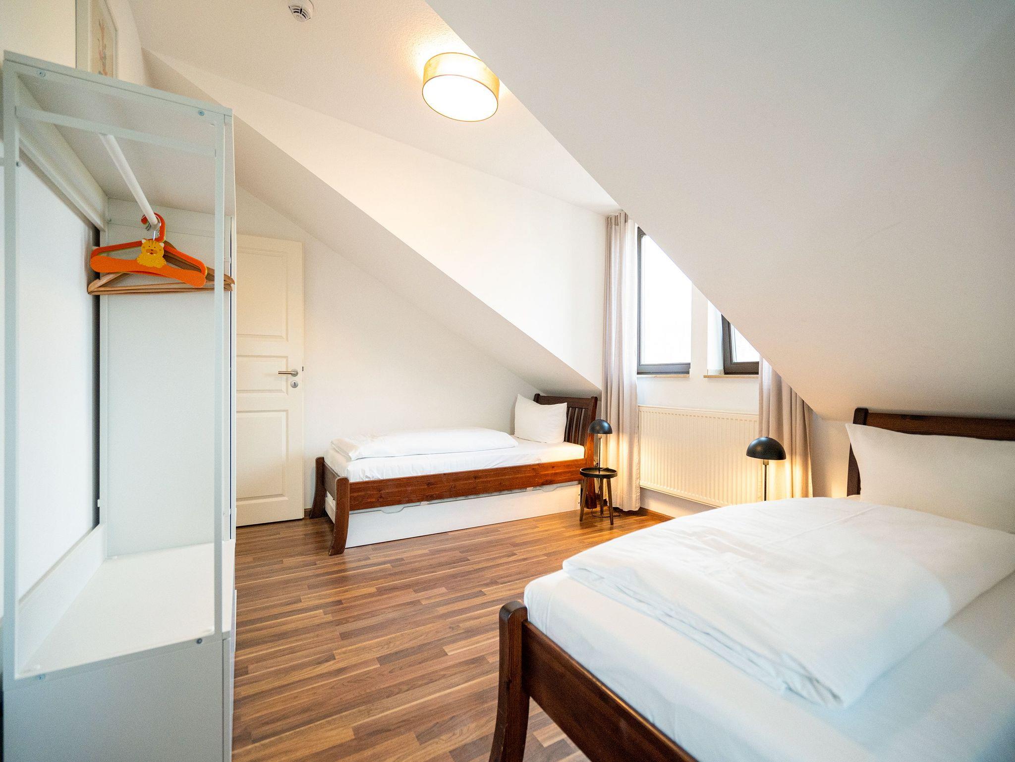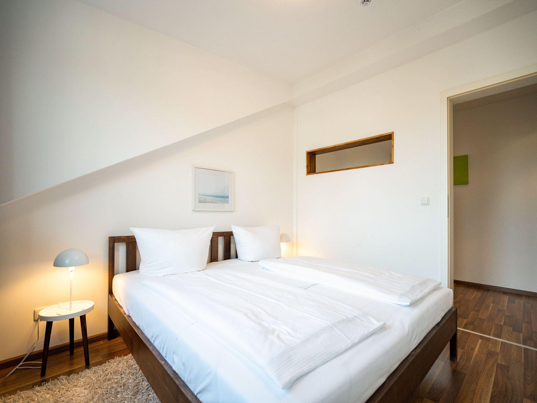 Stylisch wohnen unter dem Dach der Villa Sanssouci. Auf 82 qm Wohnfläche empfängt Sie hier eine moderne, geschmackvoll designte Ferienwohnung mit 2 Schlafzimmern (1x Doppelbett / 1x getrennte Betten), schönem, großzügigem Wohnbereich mit Flat-TV, eine offene, komplett ausgestattete Küche mit angrenzendem Essplatz und einem Bad mit Duschbadewanne und WC. Ideal für 4 Personen und ein Kleinkind (bis 3 Jahre). Am Haus kann ein kleiner Gartenanteil mit Terrasse und Strandkorb genutzt werden. Für den Tag am Meer steht Ihnen als besonderes Bonbon von Mitte Mai bis Ende September (je nach Witterung) ein Strandkorb am Strand kostenlos zur Verfügung.