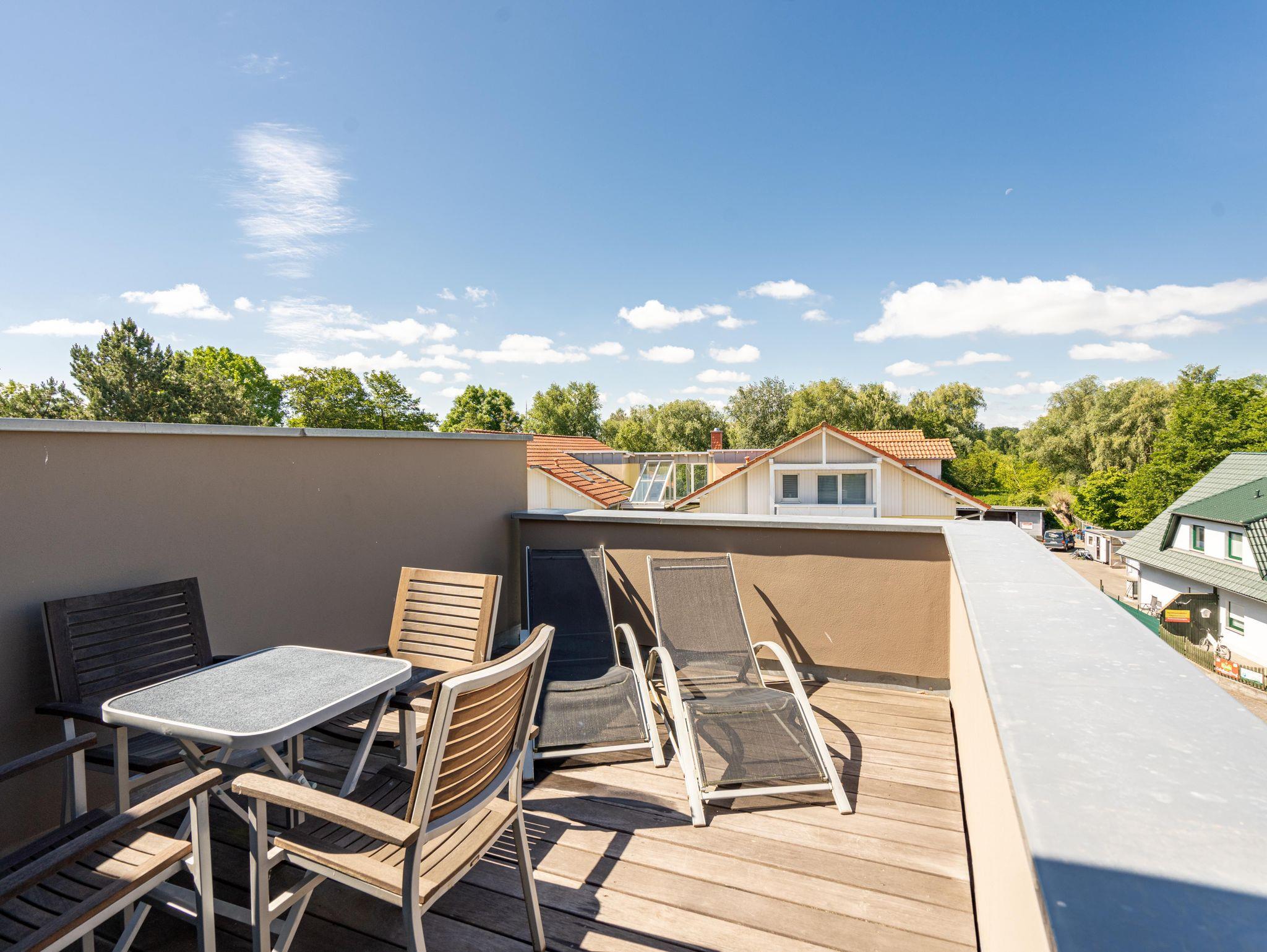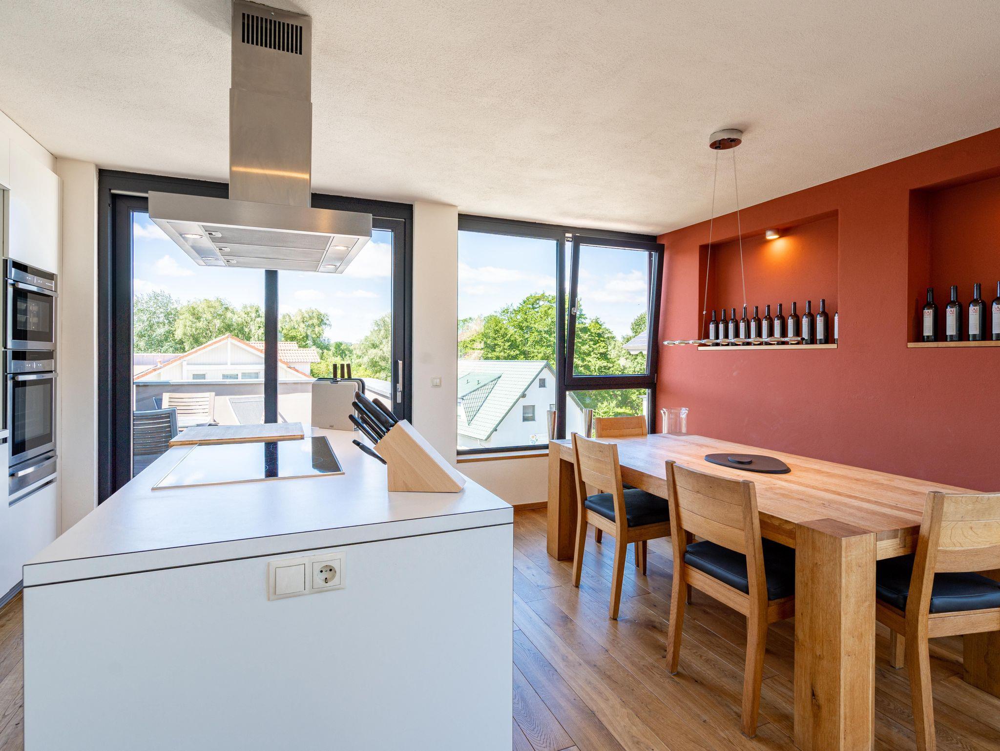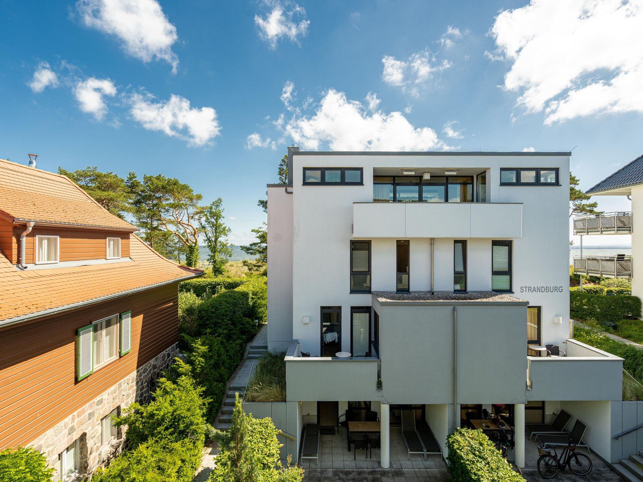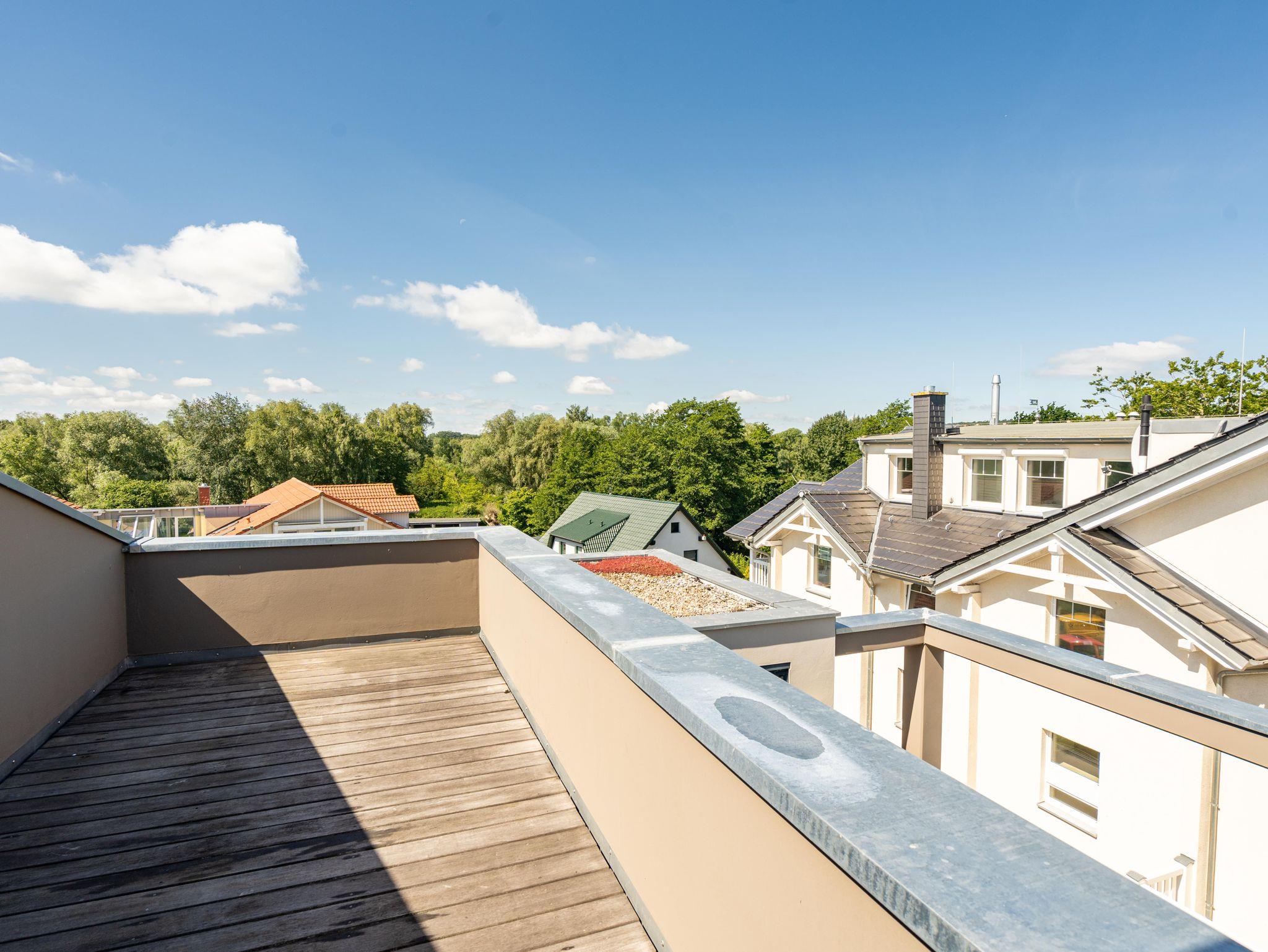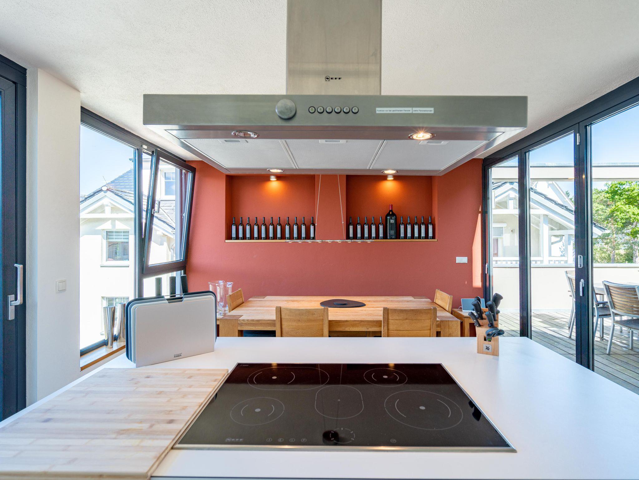 Residieren wie einst berühmte Persönlichkeiten des 20. Jahrhunderts mit dem gehobenen Standard von heute, so empfängt Sie das Penthouse im Quartier 47. Die moderne und stilvolle Stadtvilla befindet sich in der ersten Reihe zur Strandpromenade und ist umgeben von kaiserlichen Villen im Bäderarchitekturstil. Abseits der mondänen Ortsmitte und doch zentral gelegen, können Sie zwischen Strandtag (30m entfernt) und Stadtbummel (Ortskern 1,5km entfernt) wählen. Ob zu Fuß oder über den Radweg - von der Strandpromenade aus gelangen Sie begleitet vom Rauschen der Ostsee sowohl nach Heringsdorf als auch in den Nachbarort Bansin. Genießen Sie die frische Brise oder genehmigen Sie sich am Fischerstrand von Heringsdorf ein Fischbrötchen, bevor es zurück in das 98qm große Feriendomizil geht. Über insgesamt 2 Etagen erstreckt sich das Penthouse und bietet ausreichend Platz für bis zu 4 Erwachsene und ein Kleinkind (bis 2 Jahre im Kinderreisebett). Beginnen Sie Ihren Urlaub bereits beim Betreten des im Sommer 2022 renovierten [&] neu möblierten 4-Zimmer-Appartements. Große Fensterfronten und drei Dachterrassen, davon eine mit direktem Blick auf die Ostsee, machen diese Strandvilla zu einem besonderen Urlaubsdomizil. Hochwertiges und stilvoll abgestimmtes Interieur wie Ledersofas und -sessel gepaart mit Echtholzmöbeln und Vollholz-Eichendielen sorgen für ein exklusives Ambiente, klimaregulierender Lehmputz auch an heißen Sommertagen für angenehme Temperaturen. Lassen Sie Ihren Abend vor dem 55-Zoll Flat-TV ausklingen oder machen Sie es sich vor dem Kaminofen gemütlich. Auf der 24qm großen Dachterrasse in Westausrichtung finden bis zu 6 Personen Platz für ein Glas Wein oder ein ausgedehntes Urlaubsfrühstück, da die Terrasse sowohl vom Wohnzimmer als auch von der angrenzenden Küche begehbar ist. In der neu ausgestatteten Küche sorgen neben der Kochinsel ein Backofen und ein Dampfgarer in Augenhöhe für entspanntes Zubereiten Ihrer Speisen. Spülmaschine, Kühlschrank, separater Gefrierschrank, Waschtrockner sowie Kleinküchengeräte (Toaster, Kaffeemaschine, Wasserkocher und Mixer) und eine Nespresso/Delonghi-Maschine runden den hochwertigen Küchenbereich ab. Genehmigen Sie sich nach dem Kochen ein ausgiebiges Sonnenbad auf der zweiten Dachterrasse mit 12qm in Südausrichtung, die direkt von der Küche zugänglich ist. Für die kühleren Tage bietet sich ein Saunagang in der Finnischen Sauna für bis zu 2 Personen an, die auf der selben Etage ins Badezimmer integriert wurde und an die Dachterrasse mit Strandzugang angrenzt. Eine begehbare Dusche sowie ein Waschtisch und WC runden das Badezimmer auf dieser Etage ab. Die Schlafräume befinden sich im Obergeschoss und sind mit bequemen Boxspringbetten (1,80m x 2,00m) sowie modernen Einbauschränken ausgestattet. Mückengitter an den Fenstern erlauben jederzeit sorgloses Lüften. Kann ein Urlaubstag schöner beginnen, als mit dem Blick auf die Ostsee, den sie aus einem der beiden Schlafzimmer von der 14qm großen Süd-Terrasse und seitlichem Blick auf das Meer haben? Auch ein Start mit einem ausgiebigen Bad ist im Badezimmer mit Badewanne möglich. Ein Stellplatz in der Tiefgarage, von der aus der Penthouse-Fahrstuhl direkt in die Wohnung fährt, komplettiert dieses Appartement. Eine Erstausstattung Bettwäsche und Handtücher liegen für Sie bei Anreise bereit.