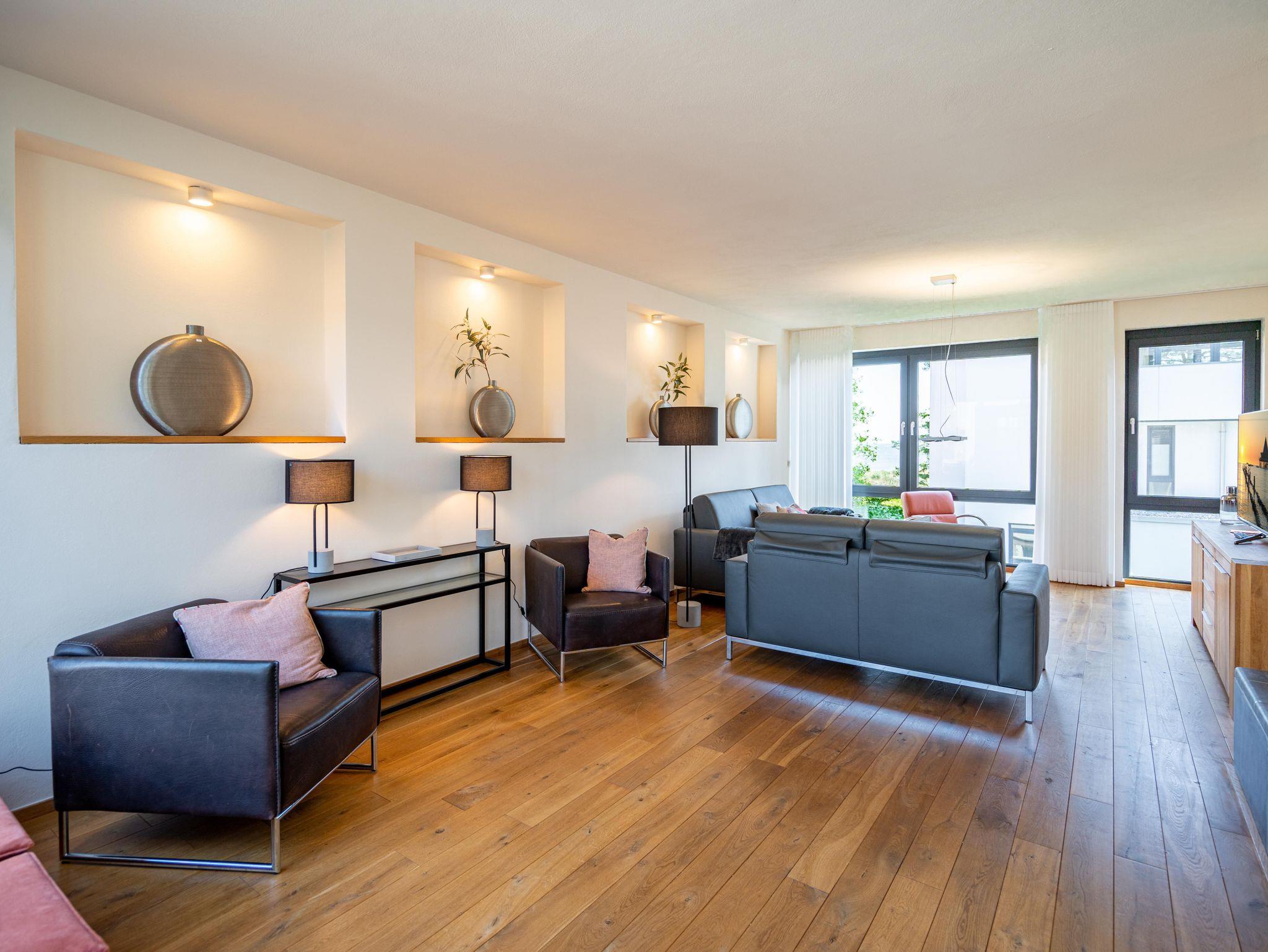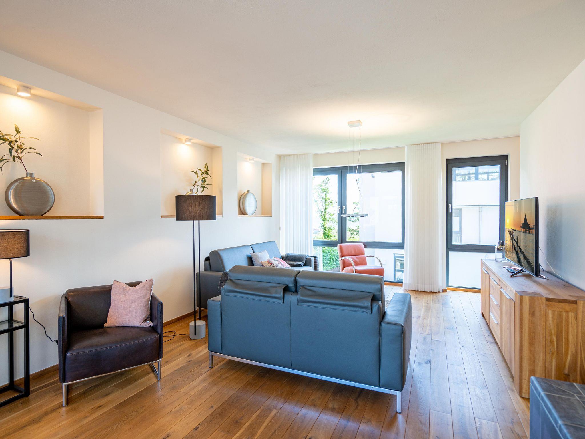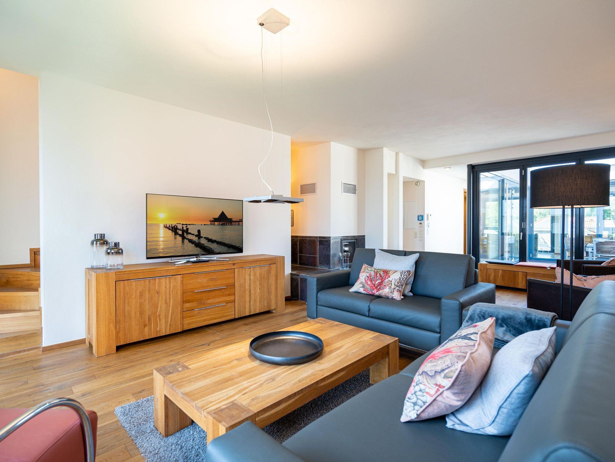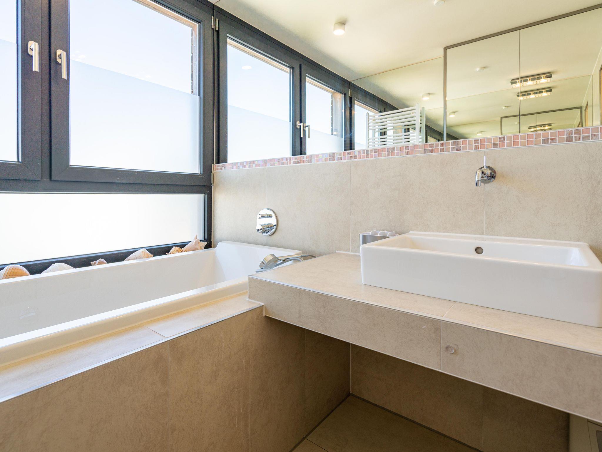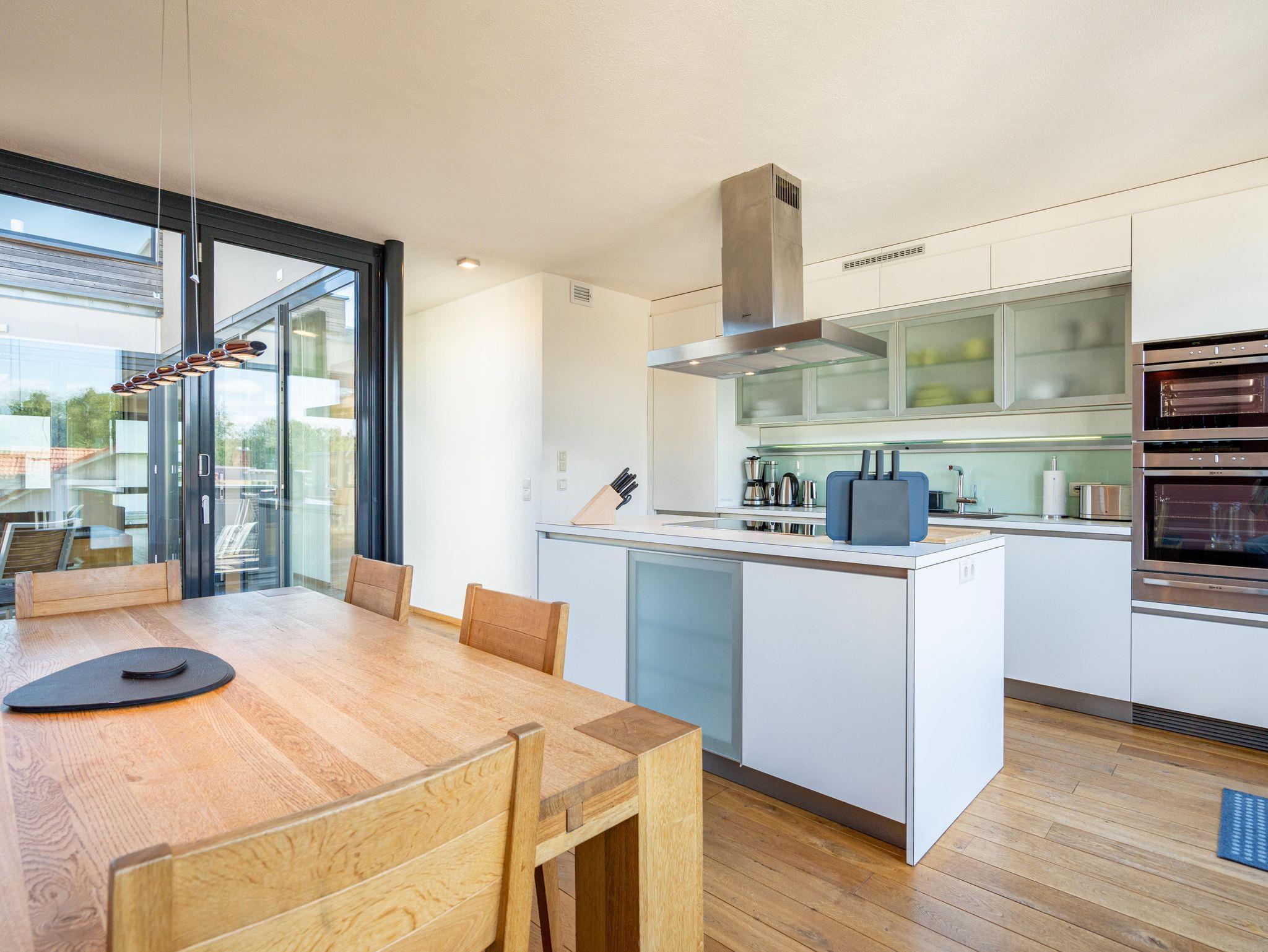 Residieren wie einst berühmte Persönlichkeiten des 20. Jahrhunderts mit dem gehobenen Standard von heute, so empfängt Sie das Penthouse im Quartier 47. Die moderne und stilvolle Stadtvilla befindet sich in der ersten Reihe zur Strandpromenade und ist umgeben von kaiserlichen Villen im Bäderarchitekturstil. Abseits der mondänen Ortsmitte und doch zentral gelegen, können Sie zwischen Strandtag (30m entfernt) und Stadtbummel (Ortskern 1,5km entfernt) wählen. Ob zu Fuß oder über den Radweg - von der Strandpromenade aus gelangen Sie begleitet vom Rauschen der Ostsee sowohl nach Heringsdorf als auch in den Nachbarort Bansin. Genießen Sie die frische Brise oder genehmigen Sie sich am Fischerstrand von Heringsdorf ein Fischbrötchen, bevor es zurück in das 98qm große Feriendomizil geht. Über insgesamt 2 Etagen erstreckt sich das Penthouse und bietet ausreichend Platz für bis zu 4 Erwachsene und ein Kleinkind (bis 2 Jahre im Kinderreisebett). Beginnen Sie Ihren Urlaub bereits beim Betreten des im Sommer 2022 renovierten [&] neu möblierten 4-Zimmer-Appartements. Große Fensterfronten und drei Dachterrassen, davon eine mit direktem Blick auf die Ostsee, machen diese Strandvilla zu einem besonderen Urlaubsdomizil. Hochwertiges und stilvoll abgestimmtes Interieur wie Ledersofas und -sessel gepaart mit Echtholzmöbeln und Vollholz-Eichendielen sorgen für ein exklusives Ambiente, klimaregulierender Lehmputz auch an heißen Sommertagen für angenehme Temperaturen. Lassen Sie Ihren Abend vor dem 55-Zoll Flat-TV ausklingen oder machen Sie es sich vor dem Kaminofen gemütlich. Auf der 24qm großen Dachterrasse in Westausrichtung finden bis zu 6 Personen Platz für ein Glas Wein oder ein ausgedehntes Urlaubsfrühstück, da die Terrasse sowohl vom Wohnzimmer als auch von der angrenzenden Küche begehbar ist. In der neu ausgestatteten Küche sorgen neben der Kochinsel ein Backofen und ein Dampfgarer in Augenhöhe für entspanntes Zubereiten Ihrer Speisen. Spülmaschine, Kühlschrank, separater Gefrierschrank, Waschtrockner sowie Kleinküchengeräte (Toaster, Kaffeemaschine, Wasserkocher und Mixer) und eine Nespresso/Delonghi-Maschine runden den hochwertigen Küchenbereich ab. Genehmigen Sie sich nach dem Kochen ein ausgiebiges Sonnenbad auf der zweiten Dachterrasse mit 12qm in Südausrichtung, die direkt von der Küche zugänglich ist. Für die kühleren Tage bietet sich ein Saunagang in der Finnischen Sauna für bis zu 2 Personen an, die auf der selben Etage ins Badezimmer integriert wurde und an die Dachterrasse mit Strandzugang angrenzt. Eine begehbare Dusche sowie ein Waschtisch und WC runden das Badezimmer auf dieser Etage ab. Die Schlafräume befinden sich im Obergeschoss und sind mit bequemen Boxspringbetten (1,80m x 2,00m) sowie modernen Einbauschränken ausgestattet. Mückengitter an den Fenstern erlauben jederzeit sorgloses Lüften. Kann ein Urlaubstag schöner beginnen, als mit dem Blick auf die Ostsee, den sie aus einem der beiden Schlafzimmer von der 14qm großen Süd-Terrasse und seitlichem Blick auf das Meer haben? Auch ein Start mit einem ausgiebigen Bad ist im Badezimmer mit Badewanne möglich. Ein Stellplatz in der Tiefgarage, von der aus der Penthouse-Fahrstuhl direkt in die Wohnung fährt, komplettiert dieses Appartement. Eine Erstausstattung Bettwäsche und Handtücher liegen für Sie bei Anreise bereit.