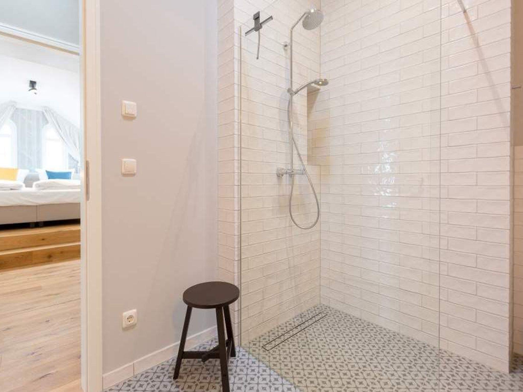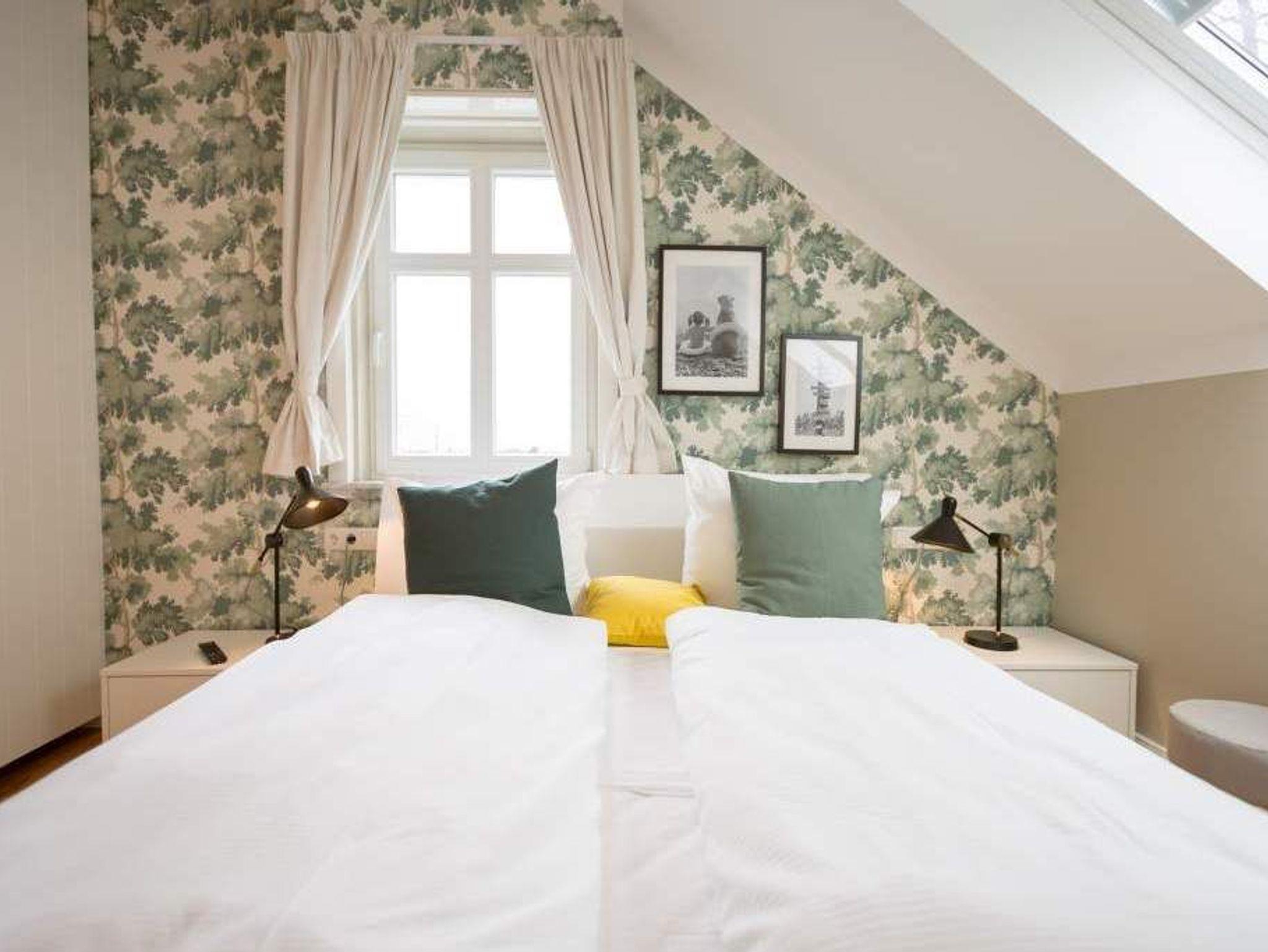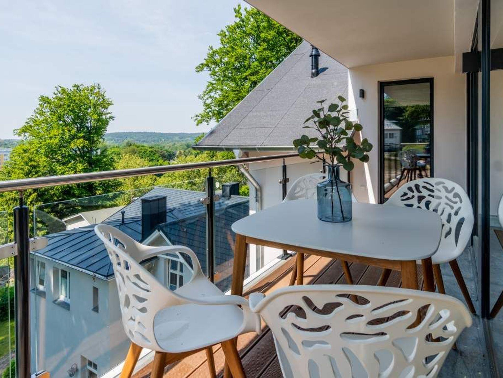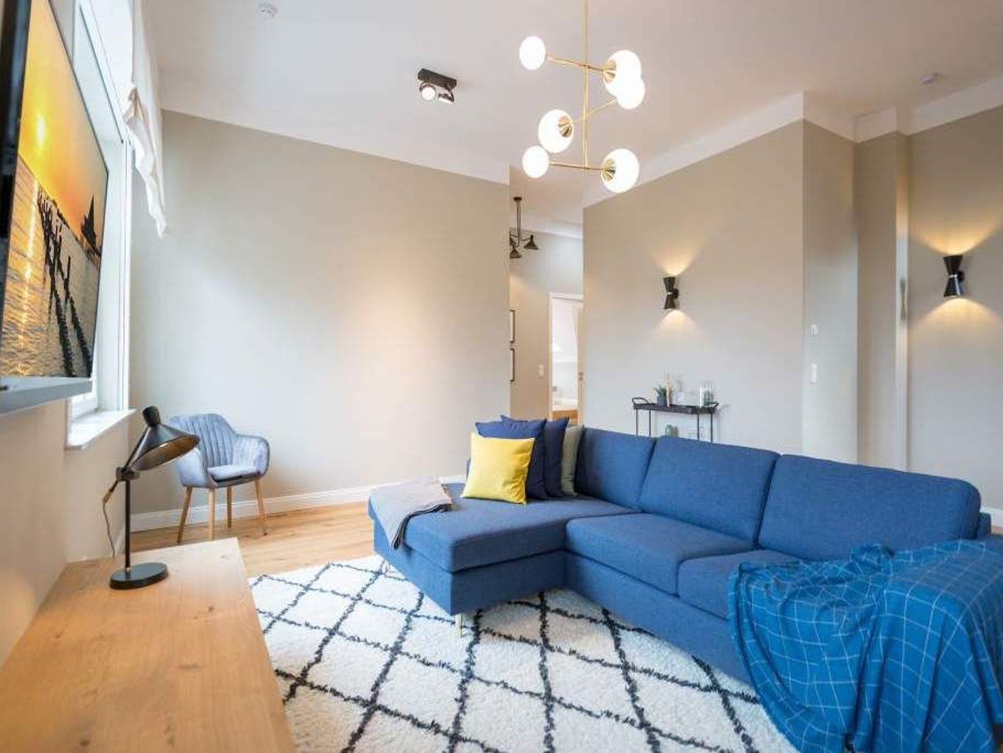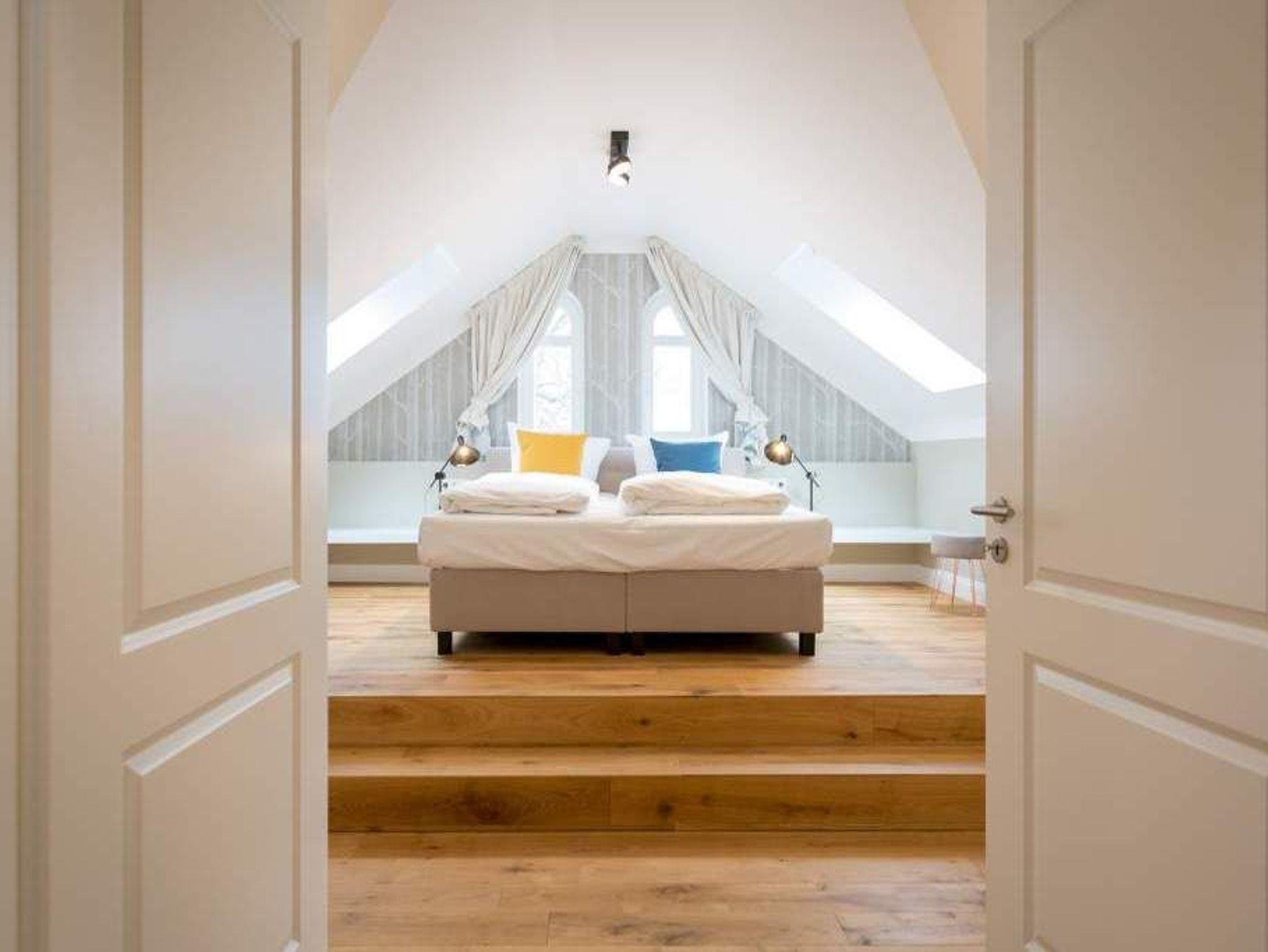 Sie wünschen sich mit Ihrer Familie oder Ihren Freunden eine wirklich exklusive Auszeit mitten im Herzen des Kaiserbades Heringsdorf? Ein Urlaubsdomizil der Extra-Klasse ist die Wohnung 7 im Dachgeschoss der aufwendig sanierten Bädervilla Bellevue. Hier werden Ferienträume wahr! Denn dieser stilvoll eingerichtete Wohntraum bietet auf seinen großzügigen 153 Quadratmetern Raum für vier Erwachsene und zwei Kinder bis drei Jahre (im Kinderreisebett). Jetzt müssen Sie sich nur noch einig werden, wer wo schläft. Denn das Drei-Raum-Appartement wartet mit zwei wunderschönen Schlafzimmern auf. Durch zwei große Flügeltüren gelangt man in das erste Schlafreich. Ein wenig erhöht, auf einem Podest wartet ein komfortables Boxspringdoppelbett (1,80 m x 2,00 m) darauf, Ihnen erholsames Schlafvergnügen zu bereiten. Wie ein Himmel öffnet sich über dem Bett der Giebel bis ins Dach hinein. Von diesem Zimmer aus haben Sie Zugang zum luxuriösen Masterbad. Die wunderschöne Vintagefliesen-Optik, eine frei stehende Badewanne in extravagantem Ei-Design, eine äußerst geräumige Dusche und die Panorama-Sauna definieren den Begriff Wellness neu. Auch das zweite Schlafzimmer ist elegant und exquisit eingerichtet. In dem schicken und bequemen Designer-Doppelbett (1,60 m x 2,00 m) macht nicht nur das Schlafen Spaß. Eine edle Tapete und die hellen Möbel verleihen dem Zimmer ein elegantes Flair. Ein zweites Bad ? ebenfalls mit Dusche, Waschtisch und WC ausgestattet ? sorgt für ein entspanntes Frischmachen. Der Wohnbereich ist eine Oase für Entspannungshungrige und Auszeitfreunde. Offen, hell und geschmackvoll designt ? hier stimmt alles. Angefangen von der großen Sofalandschaft, über die Mid-Century-Design-Klassiker, den schönen, großen Echtholztisch und den von Vintagefliesen eingerahmten Gas-Kamin bis hin zur stylischen und modernen Küche. Hochwertige Geräte und feinstes ASA-Geschirr machen das Kochen und gemeinsame Essen zu einem Erlebnis. In lockerer Atmosphäre können Sie sich am frei stehenden Küchentresen mit Barhockern unterhalten. Entertainment bietet zudem der 42-Zoll-Flat-TV. An das Wohnzimmer angeschlossen ist ein sonnenüberfluteter West-Balkon. Doch wenn Sie richtig Sonne tanken wollen, dann steigen Sie bitte aufs Dach. Über dem Appartement erstreckt sich eine 56 Quadratmeter große Dachterrasse. Hier oben, mit einem grandiosen Blick über die Dächer der schönen Bädervillen des Kulmbergs, vergessen Sie in Windeseile jede Hektik, jeden Stress. Sonnenbaden oder Dinieren ? beides ist hier möglich. Zur Wohnung gehören außerdem 2 Pkw-Stellplätze dazu. Das WLAN ist kostenfrei nutzbar. Und damit Sie sich wirklich um nichts zu kümmern brauchen, sind die Betten bei der Anreise bezogen und Handtücher liegen bereit.