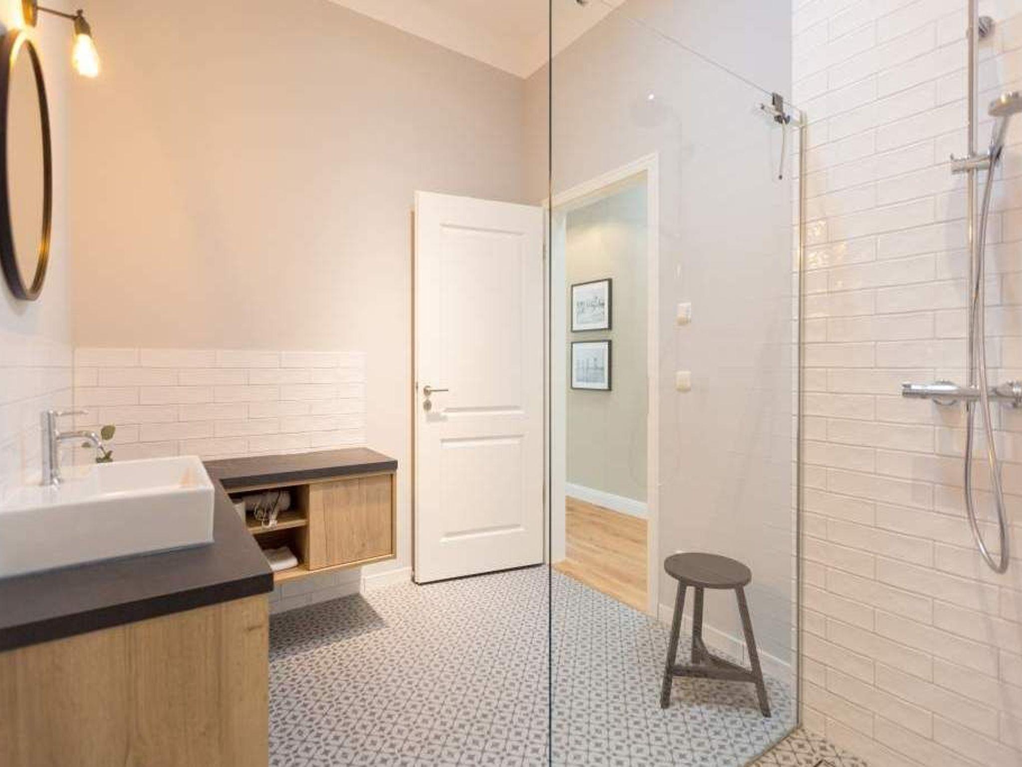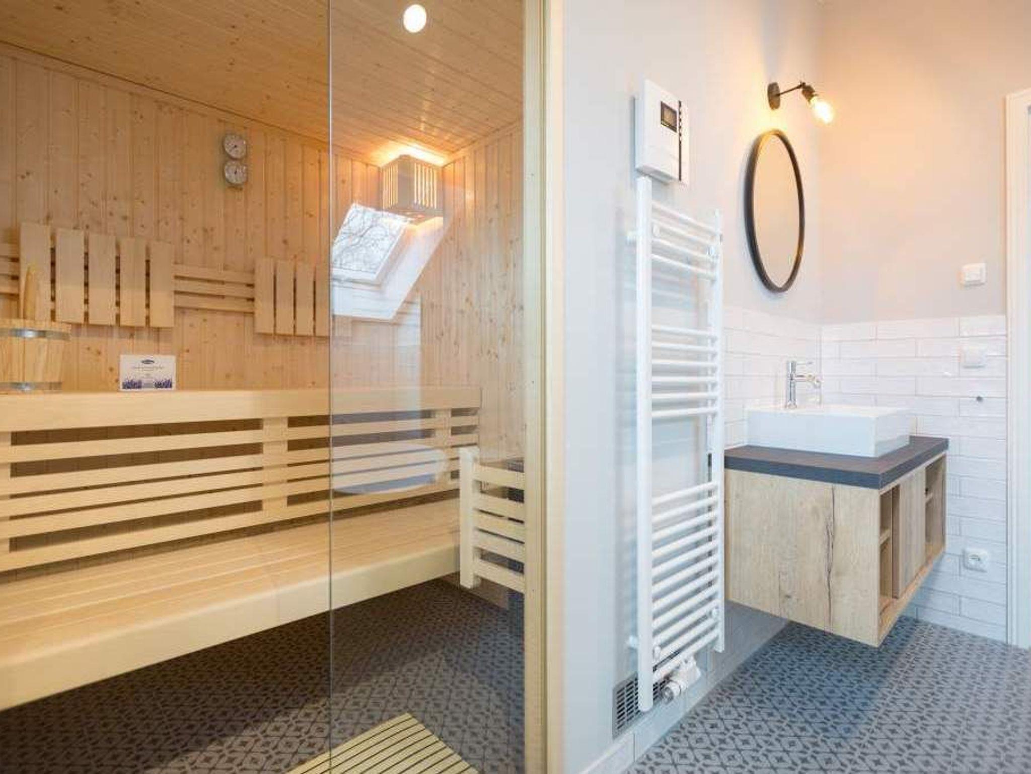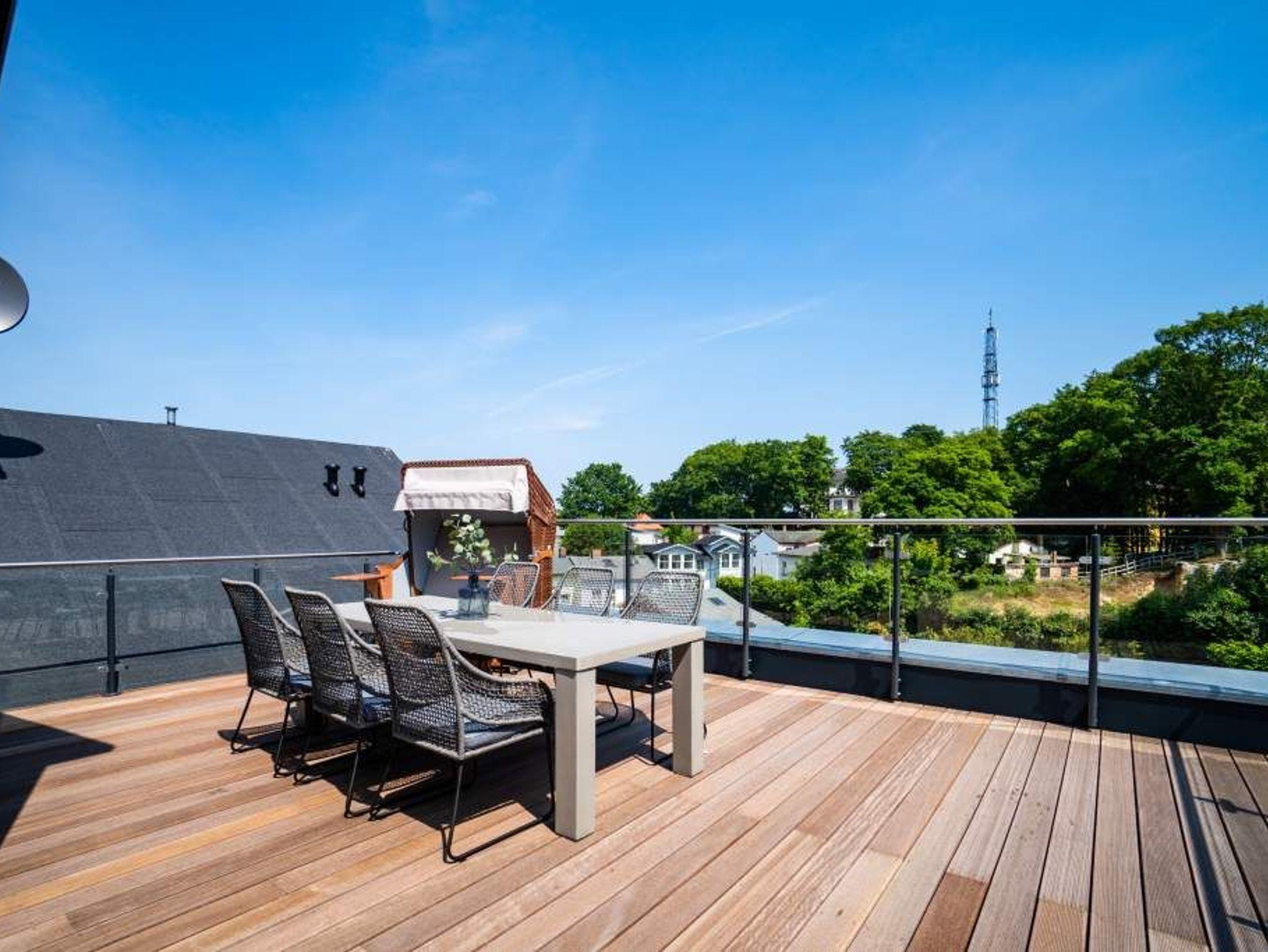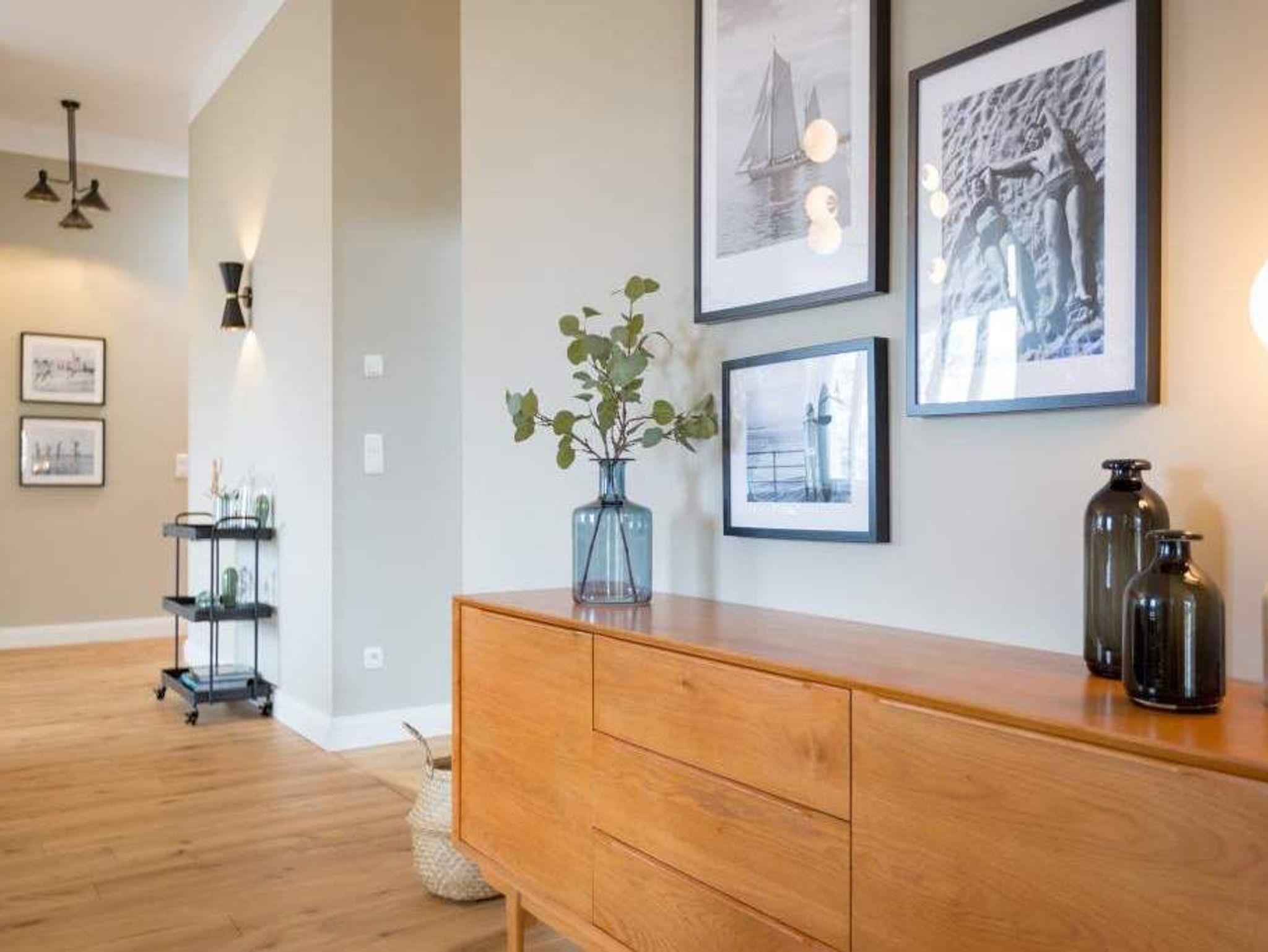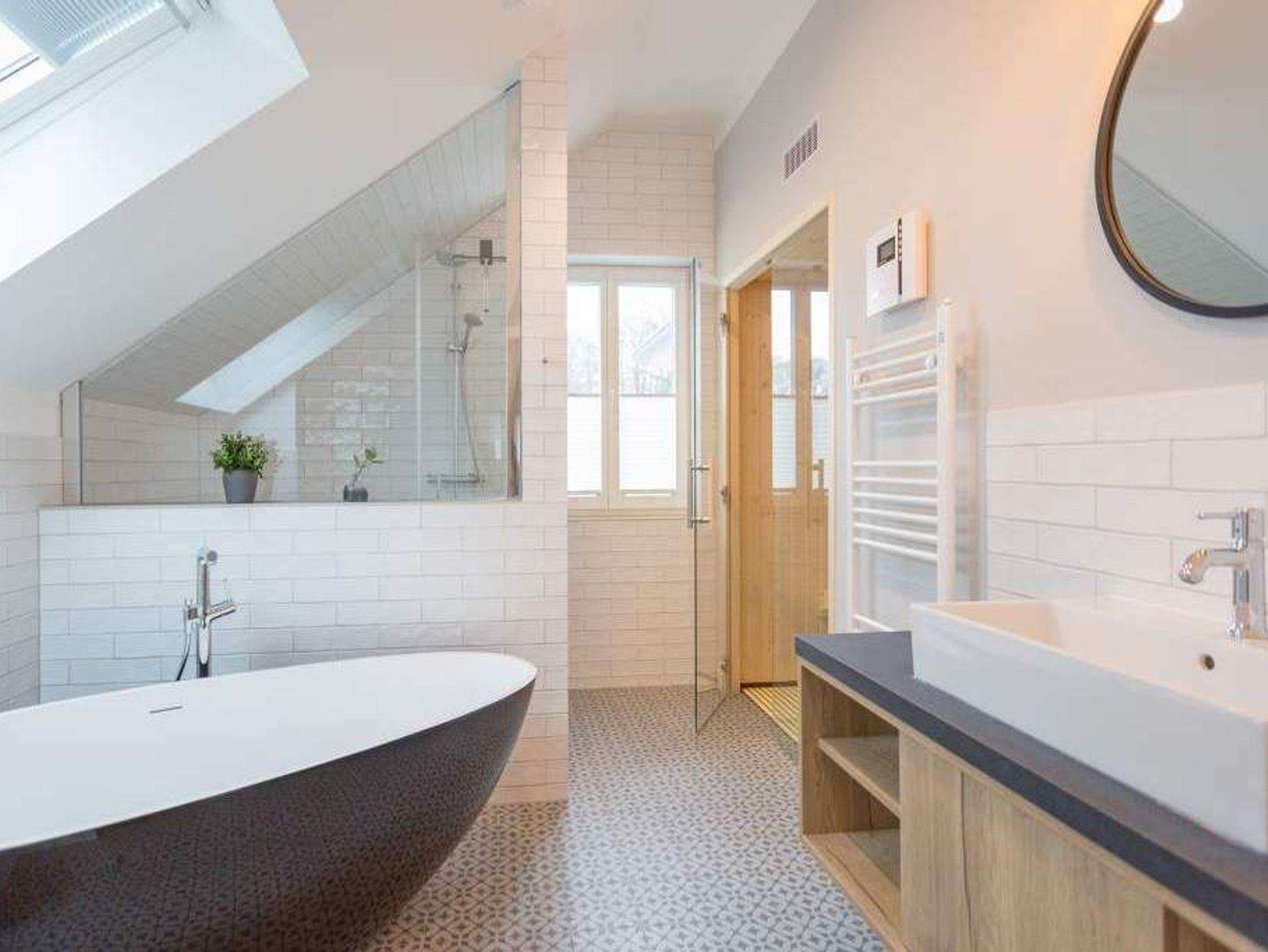Sie wünschen sich mit Ihrer Familie oder Ihren Freunden eine wirklich exklusive Auszeit mitten im Herzen des Kaiserbades Heringsdorf? Ein Urlaubsdomizil der Extra-Klasse ist die Wohnung 7 im Dachgeschoss der aufwendig sanierten Bädervilla Bellevue. Hier werden Ferienträume wahr! Denn dieser stilvoll eingerichtete Wohntraum bietet auf seinen großzügigen 153 Quadratmetern Raum für vier Erwachsene und zwei Kinder bis drei Jahre (im Kinderreisebett). Jetzt müssen Sie sich nur noch einig werden, wer wo schläft. Denn das Drei-Raum-Appartement wartet mit zwei wunderschönen Schlafzimmern auf. Durch zwei große Flügeltüren gelangt man in das erste Schlafreich. Ein wenig erhöht, auf einem Podest wartet ein komfortables Boxspringdoppelbett (1,80 m x 2,00 m) darauf, Ihnen erholsames Schlafvergnügen zu bereiten. Wie ein Himmel öffnet sich über dem Bett der Giebel bis ins Dach hinein. Von diesem Zimmer aus haben Sie Zugang zum luxuriösen Masterbad. Die wunderschöne Vintagefliesen-Optik, eine frei stehende Badewanne in extravagantem Ei-Design, eine äußerst geräumige Dusche und die Panorama-Sauna definieren den Begriff Wellness neu. Auch das zweite Schlafzimmer ist elegant und exquisit eingerichtet. In dem schicken und bequemen Designer-Doppelbett (1,60 m x 2,00 m) macht nicht nur das Schlafen Spaß. Eine edle Tapete und die hellen Möbel verleihen dem Zimmer ein elegantes Flair. Ein zweites Bad ? ebenfalls mit Dusche, Waschtisch und WC ausgestattet ? sorgt für ein entspanntes Frischmachen. Der Wohnbereich ist eine Oase für Entspannungshungrige und Auszeitfreunde. Offen, hell und geschmackvoll designt ? hier stimmt alles. Angefangen von der großen Sofalandschaft, über die Mid-Century-Design-Klassiker, den schönen, großen Echtholztisch und den von Vintagefliesen eingerahmten Gas-Kamin bis hin zur stylischen und modernen Küche. Hochwertige Geräte und feinstes ASA-Geschirr machen das Kochen und gemeinsame Essen zu einem Erlebnis. In lockerer Atmosphäre können Sie sich am frei stehenden Küchentresen mit Barhockern unterhalten. Entertainment bietet zudem der 42-Zoll-Flat-TV. An das Wohnzimmer angeschlossen ist ein sonnenüberfluteter West-Balkon. Doch wenn Sie richtig Sonne tanken wollen, dann steigen Sie bitte aufs Dach. Über dem Appartement erstreckt sich eine 56 Quadratmeter große Dachterrasse. Hier oben, mit einem grandiosen Blick über die Dächer der schönen Bädervillen des Kulmbergs, vergessen Sie in Windeseile jede Hektik, jeden Stress. Sonnenbaden oder Dinieren ? beides ist hier möglich. Zur Wohnung gehören außerdem 2 Pkw-Stellplätze dazu. Das WLAN ist kostenfrei nutzbar. Und damit Sie sich wirklich um nichts zu kümmern brauchen, sind die Betten bei der Anreise bezogen und Handtücher liegen bereit.