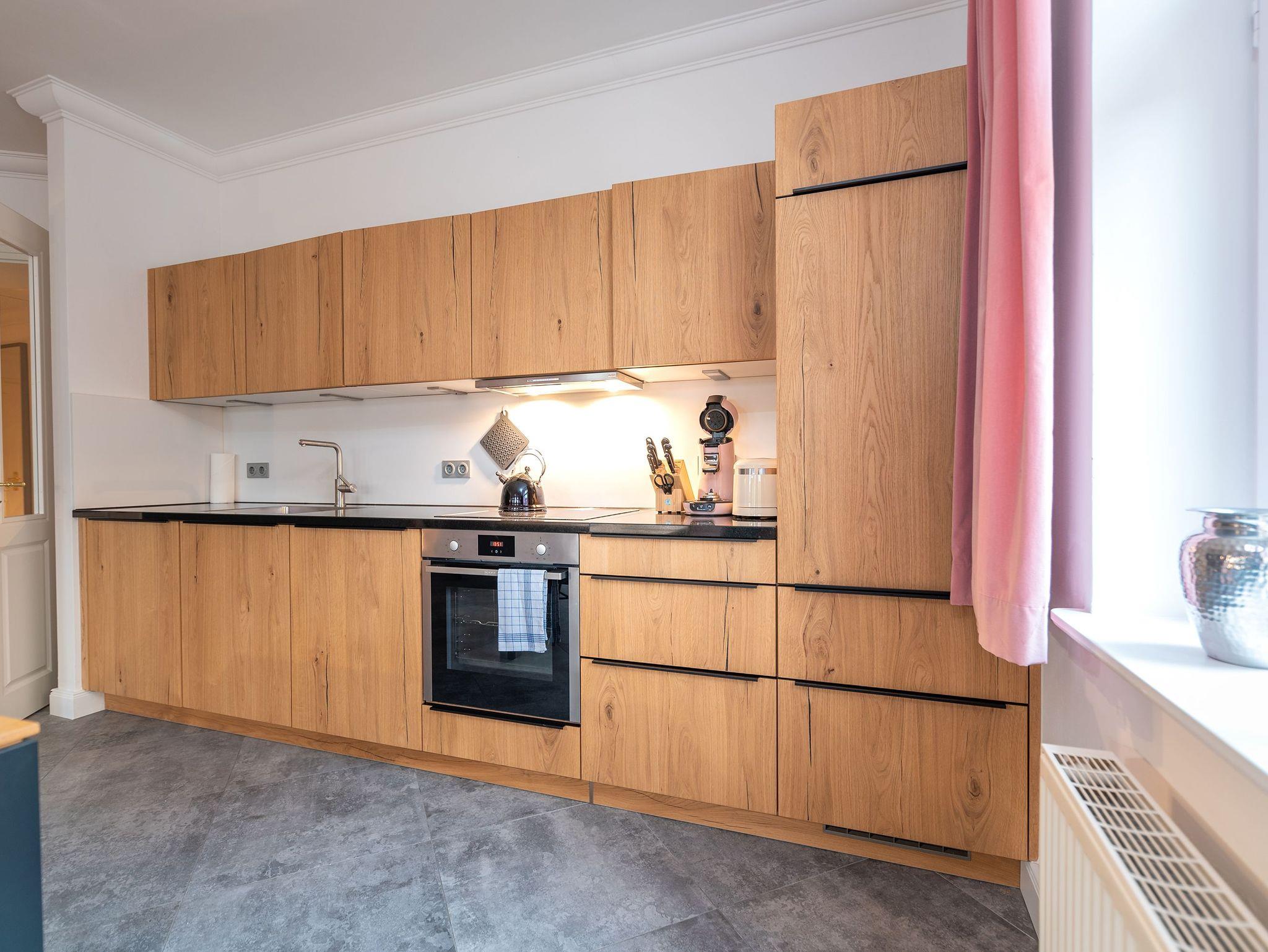 Das Appartement „Sommerresidenz“ im Erdgeschoss bietet mit 118 Quadratmetern großzügig gestalteten Wohnraum für einen unvergleichlichen Urlaub. Sie profitieren von zwei Schlafzimmern, ausgestattet mit handgefertigten englischen Boxspringbetten, einem modernen Wohnbereich mit komfortabler Couch, Fernsehsessel und einem großen Smart-TV inklusive PlayStation 4. Der großzügige Essbereich lädt mit Platz für bis zu sechs Personen zu gemeinsamen Mahlzeiten ein, während die offene Küche keine kulinarischen Wünsche offenlässt.