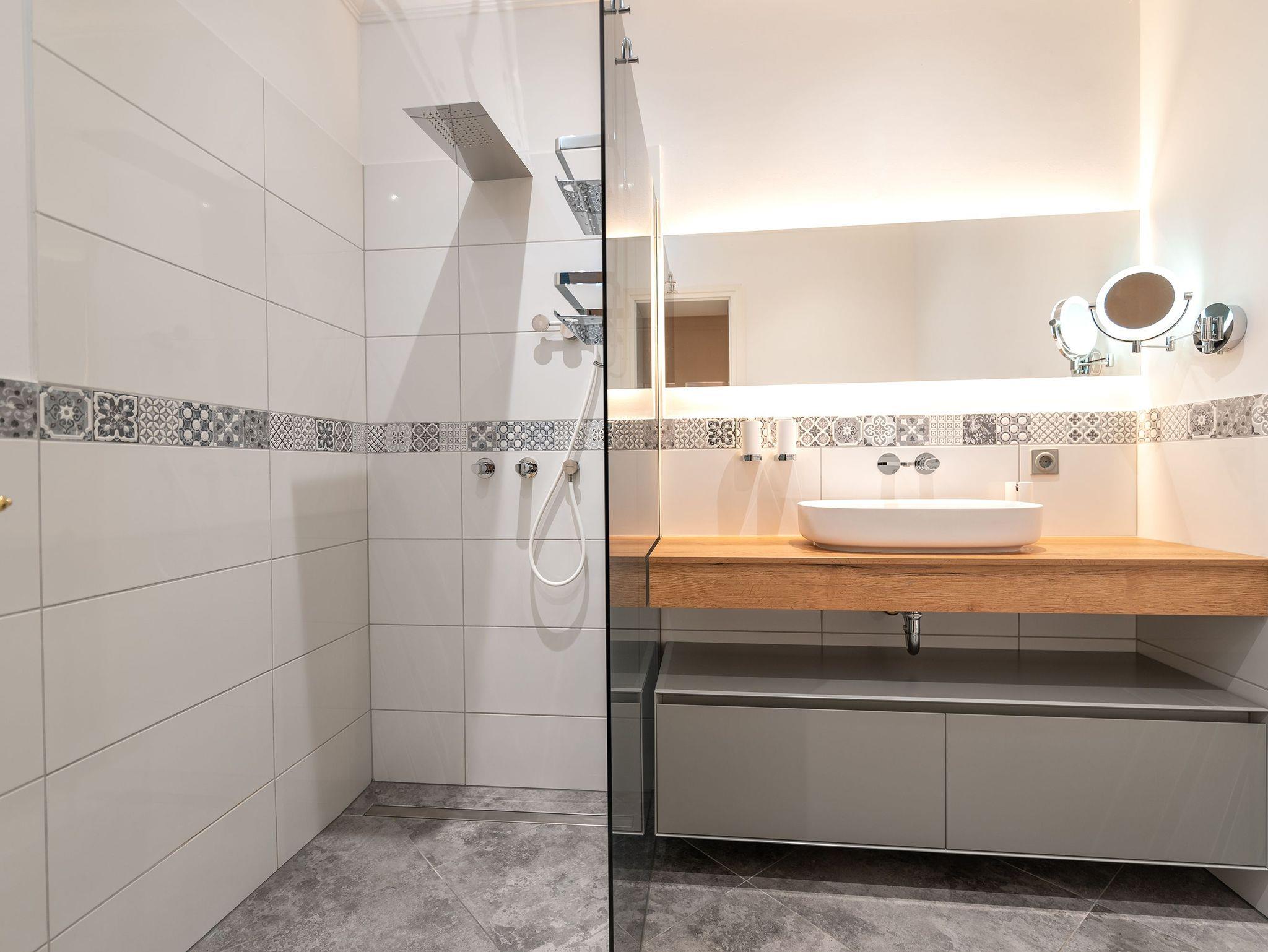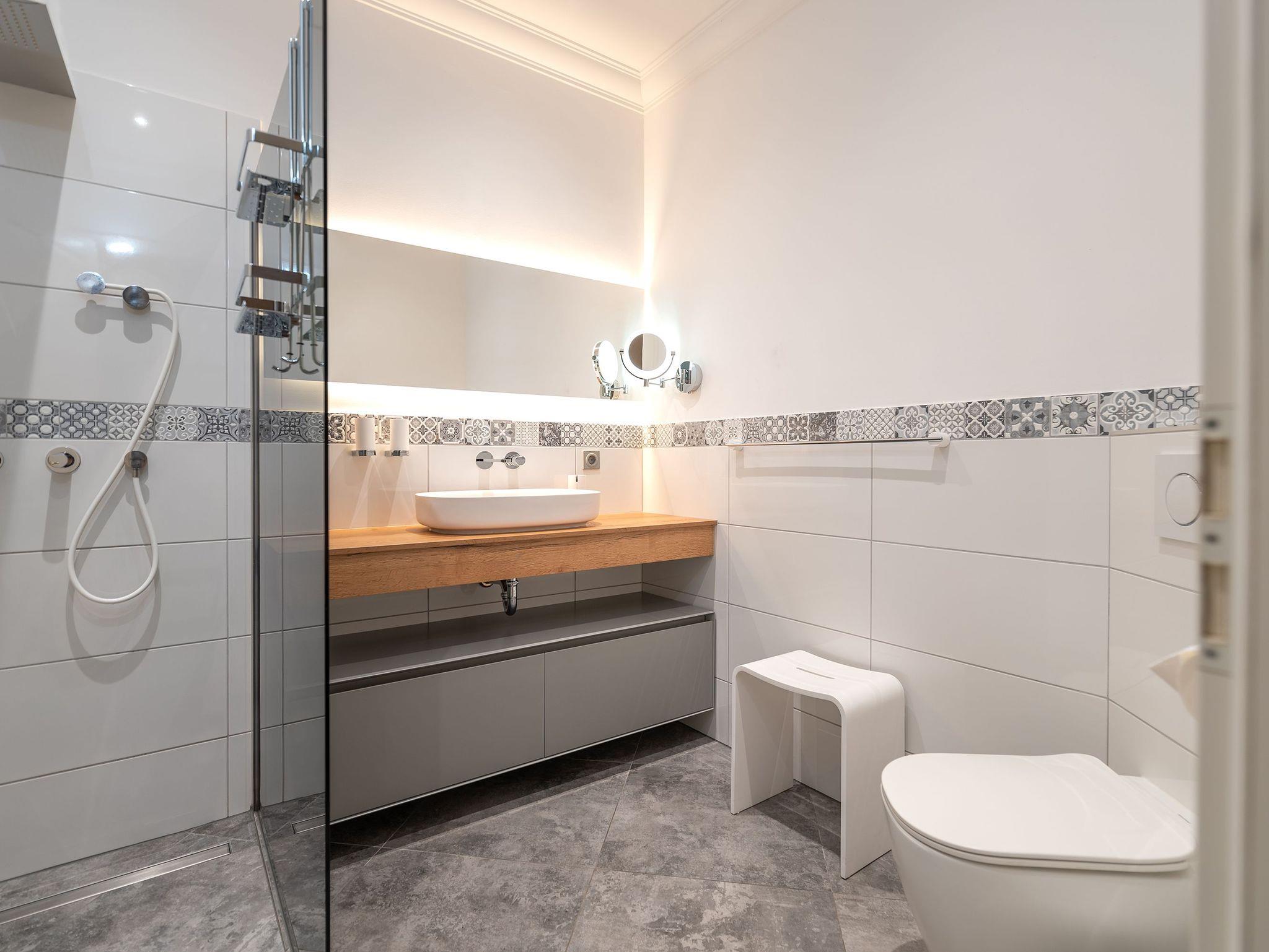 • modernes Badezimmer mit ebenerdiger Glasdusche