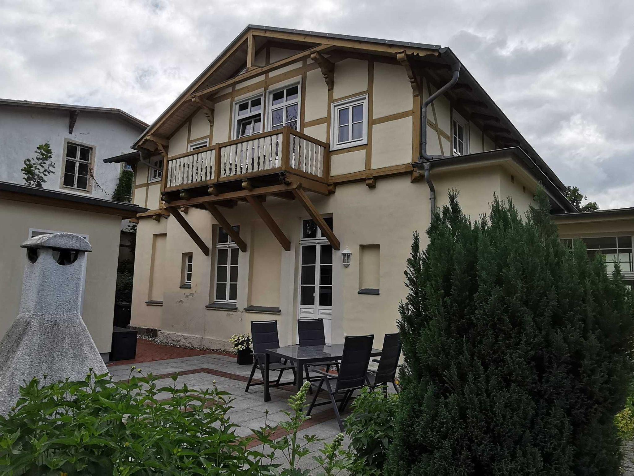 Sie brauchen etwas kuschelige Zweisamkeit? In der 39 qm großen Koje werden Sie sich vom ersten Moment an wohl fühlen. Sie finden Ihre Ferienwohnung im Obergeschoß der liebevoll sanierten Villa im Bäderarchitekturstil. Schon der Anblick der Villa mit dem großen und grüßen Grundstück wird Sie überzeugen. Kommen Sie dann in die Koje, sehen Sie als erstes die skandinavischen Landhausmöbel, die der Wohnung einen ganz besonderen Charm verleihen. Ein kuscheliges 140 cm breites Doppelbett lädt zum Nachtruhe ein. Es zieht Sie zum Meer? Nur wenige Meter trennt Sie und die Ostsee. Der kilometerlange Sandstrand der Insel lädt zu einem ausgiebigen Spaziergang entlang der Kaiserbäder ein. Kommen Sie dann erschöpft zurück, wartet schon eine warme Dusche im separaten, nur für Sie zugänglichen Bad auf Sie. Das Bad befindet sich direkt Tür an Tür neben Ihrer Wohnung. Wie wäre es zum Ausklang eines romantischen Abends mit einem Getränk auf dem großen Balkon, von dem aus Sie den Sonnenuntergang genießen können? Sollte es einmal regnen, zaubert ihnen der Bio-Kamin eine heimelige und wohltuende Atmosphäre. Bei uns bleiben keine Wünsche offen. Kommen Sie mit dem Auto oder vielleicht ganz sportlich mit dem Fahrrad? Für beides haben wir selbstverständlich einen Platz auf dem Grundstück. Das ist noch längst nicht alles. Auf kleinem Raum finden Sie all den Komfort, den Sie brauchen: freies WLAN, LED-TV, CD-Radio, Bücher, Kühlschrank mit Gefrierfach, zwei Induktionsfelder, Wasserkocher, Kaffeemaschine, Toaster, Föhn und für die kleinsten Gäste Babybett, Babyhochstuhl und klappbare Wickelauflage.