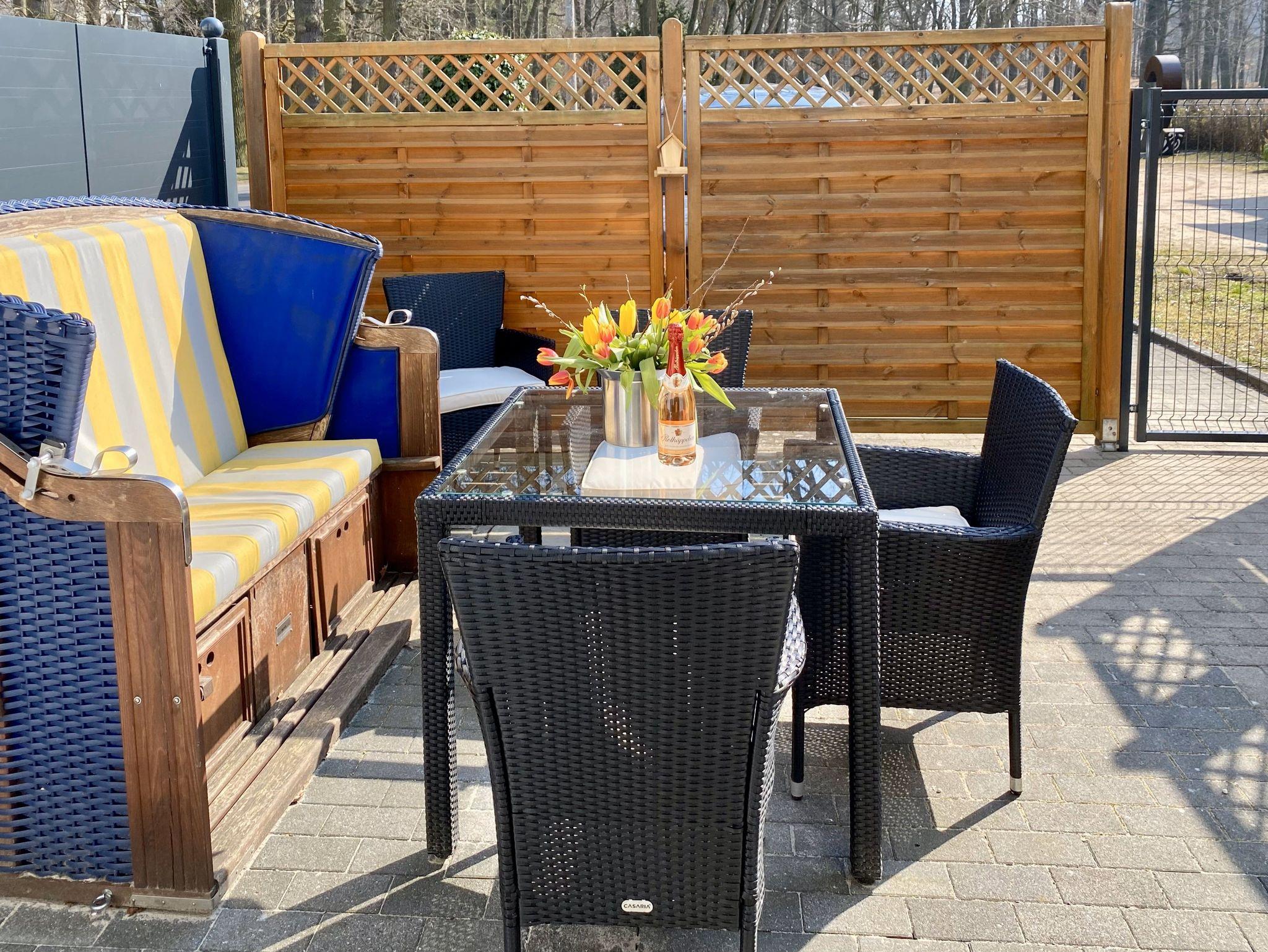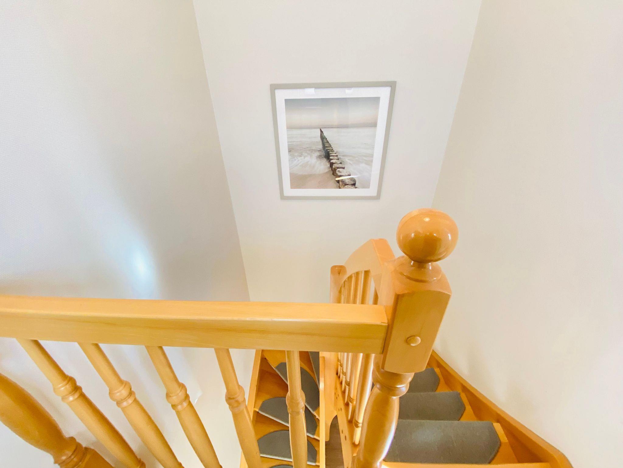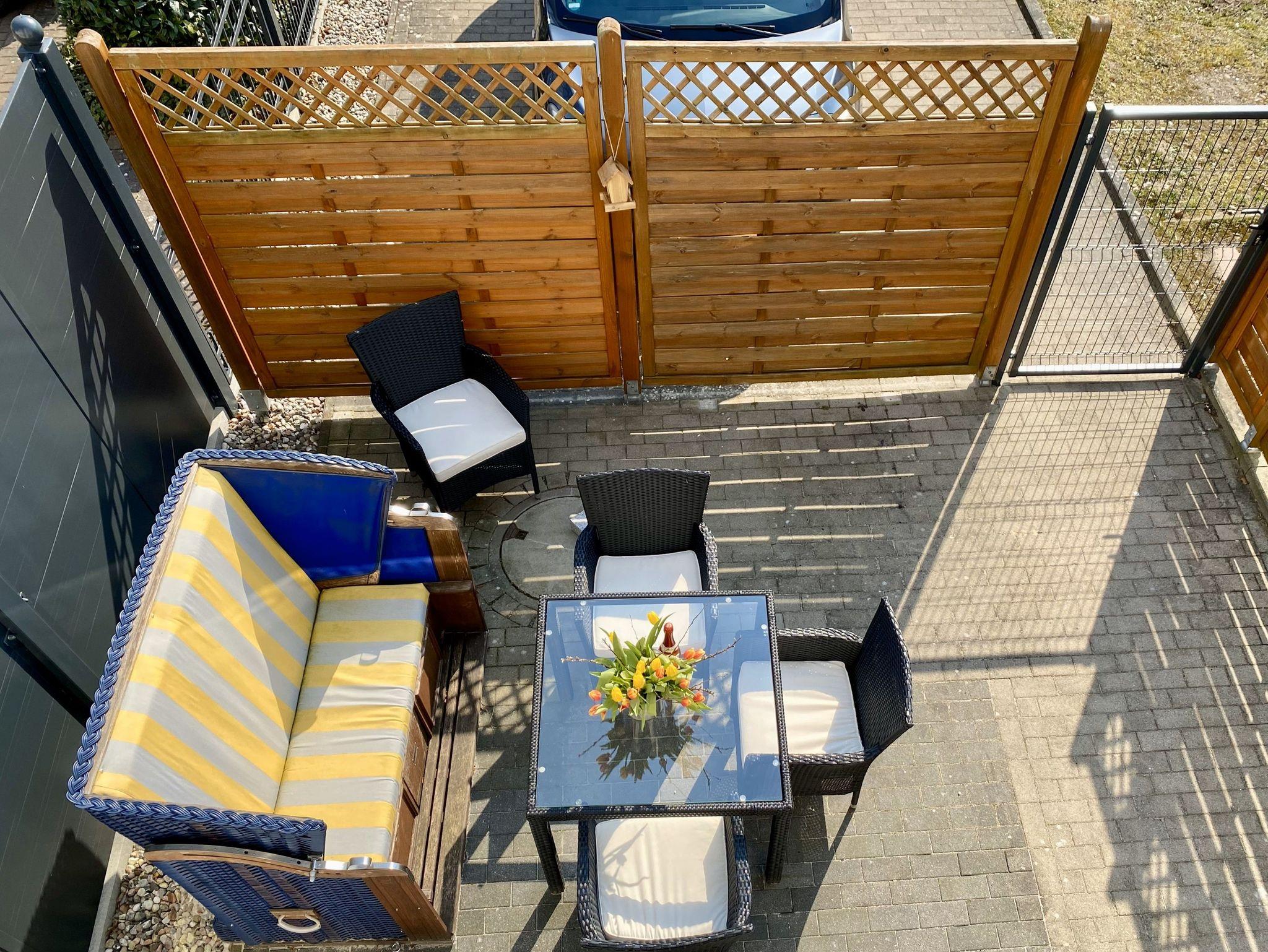 Da das Handtuchhaus über zwei Ebenen verfügt, bietet es ausreichend Platz für vier Personen (plus Babybett ). Der Wohnbereich liegt im Erdgeschoss: Hier erwartet die Gäste ein modernes Ecksofa, ein Flat-TV und eine gemütliche Sitzecke mit zwei Sesseln. Von hier aus gelangen Sie bequem auf die Terrasse mit den Strandkorbsitzmöbeln. Genießen Sie hier das Leben im Freien z.B. Ihr Frühstück. Im Erdgeschoss befindet sich außerdem der Küchenbereich, der komplett ausgestattet ist (Filter-Kaffeemaschine, Nespresso, Eierkocher, Toaster, Wasserkocher, Minibackofen, Mikrowelle). Hier schließt sich ein schöner Esstisch mit Loungesofa an. Das Duschbad und eine Sauna (Wärmekabine) befinden sich ebenfalls auf der unteren Wohnebene. Eine breite Treppe führt in den oberen Wohnbreich: Hier gibt es zwei moderne Schlafzimmer mit jeweils einem Boxspringbett und Flat-TV. Weiterhin erwartet Sie hier oben ein größeres Duschbad.