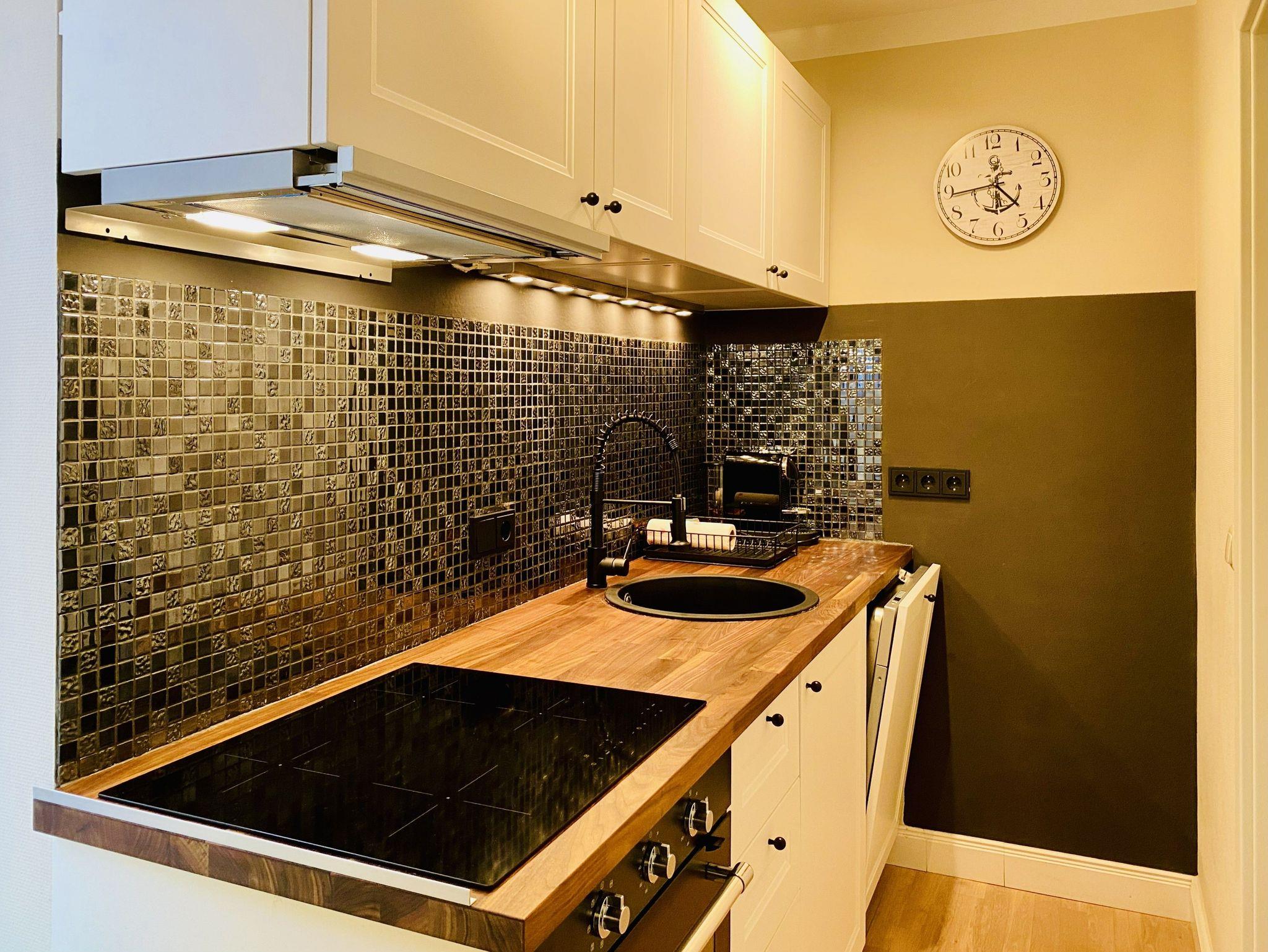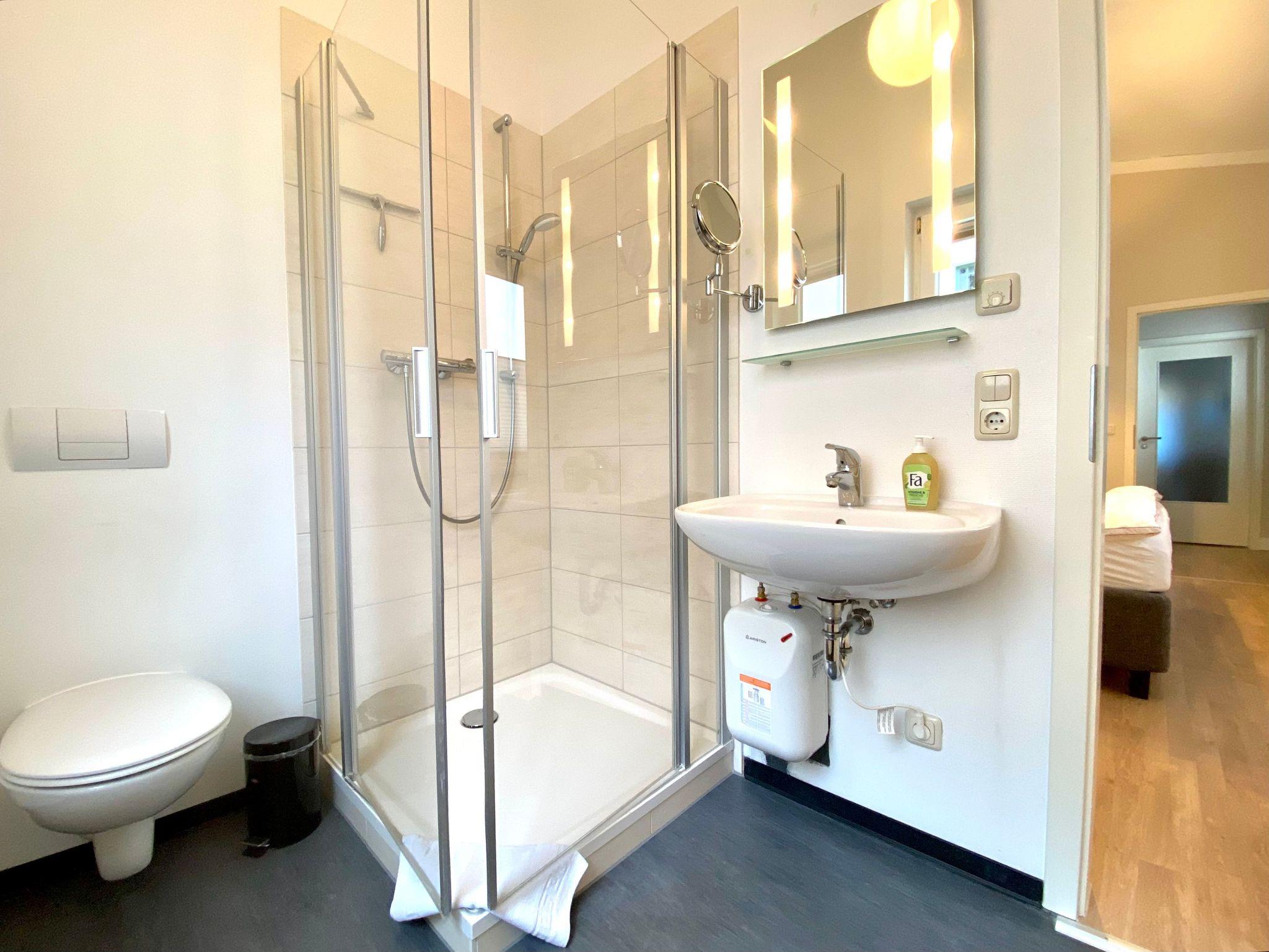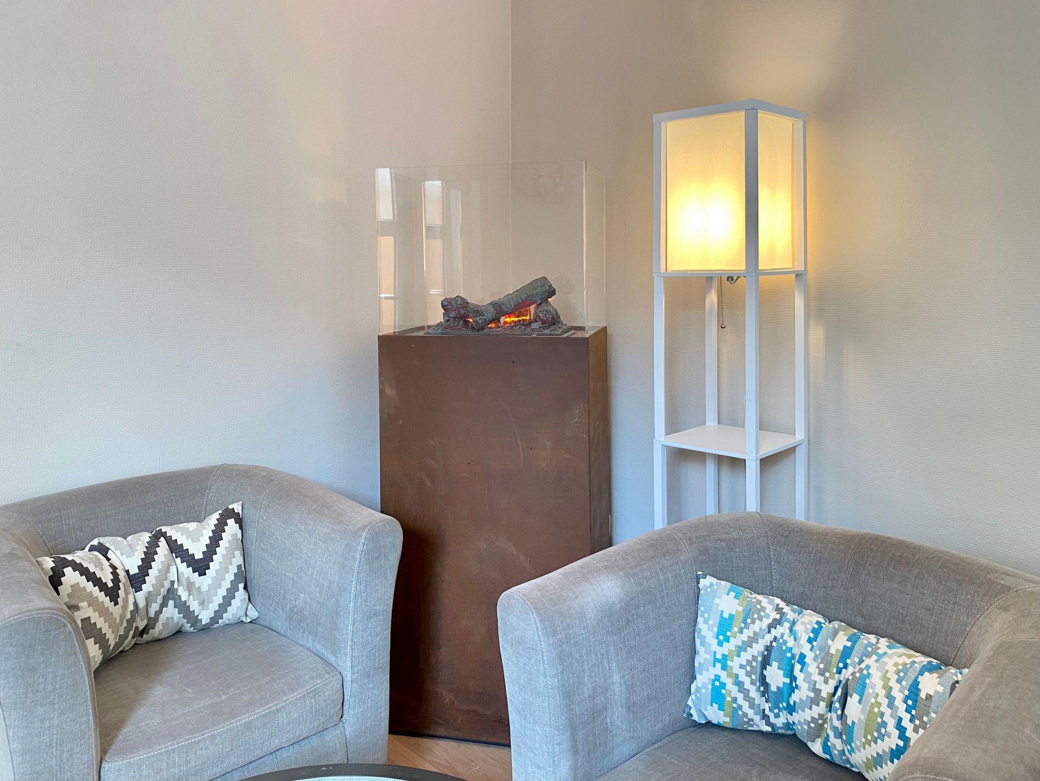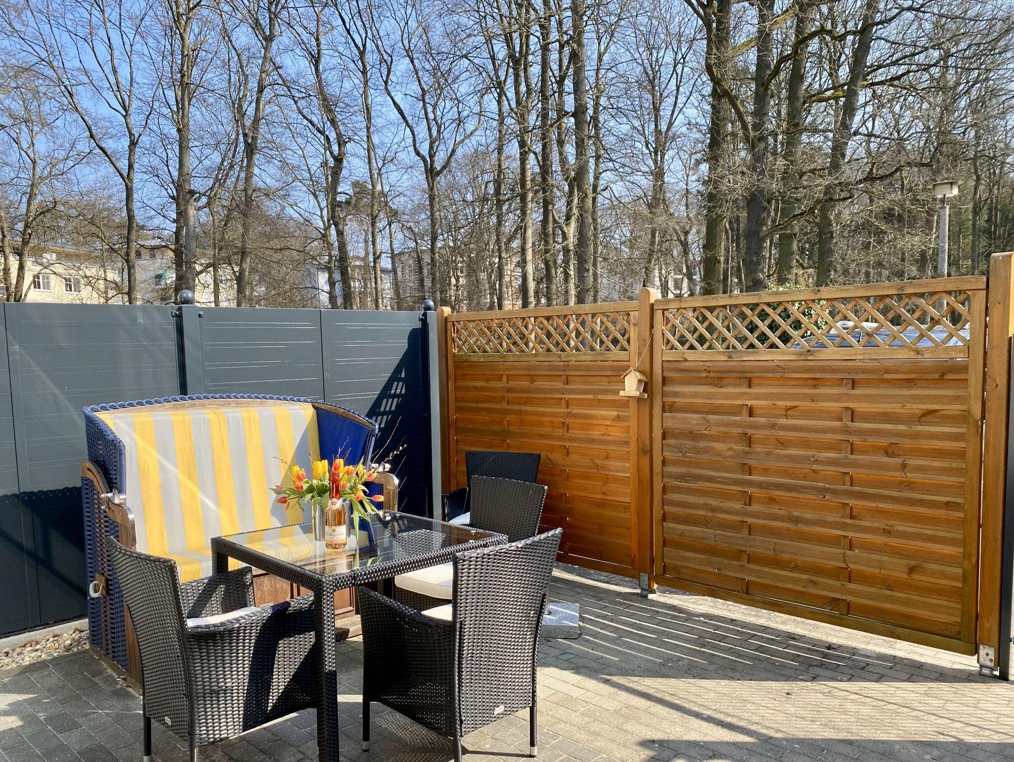 Da das Handtuchhaus über zwei Ebenen verfügt, bietet es ausreichend Platz für vier Personen (plus Babybett ). Der Wohnbereich liegt im Erdgeschoss: Hier erwartet die Gäste ein modernes Ecksofa, ein Flat-TV und eine gemütliche Sitzecke mit zwei Sesseln. Von hier aus gelangen Sie bequem auf die Terrasse mit den Strandkorbsitzmöbeln. Genießen Sie hier das Leben im Freien z.B. Ihr Frühstück. Im Erdgeschoss befindet sich außerdem der Küchenbereich, der komplett ausgestattet ist (Filter-Kaffeemaschine, Nespresso, Eierkocher, Toaster, Wasserkocher, Minibackofen, Mikrowelle). Hier schließt sich ein schöner Esstisch mit Loungesofa an. Das Duschbad und eine Sauna (Wärmekabine) befinden sich ebenfalls auf der unteren Wohnebene. Eine breite Treppe führt in den oberen Wohnbreich: Hier gibt es zwei moderne Schlafzimmer mit jeweils einem Boxspringbett und Flat-TV. Weiterhin erwartet Sie hier oben ein größeres Duschbad.