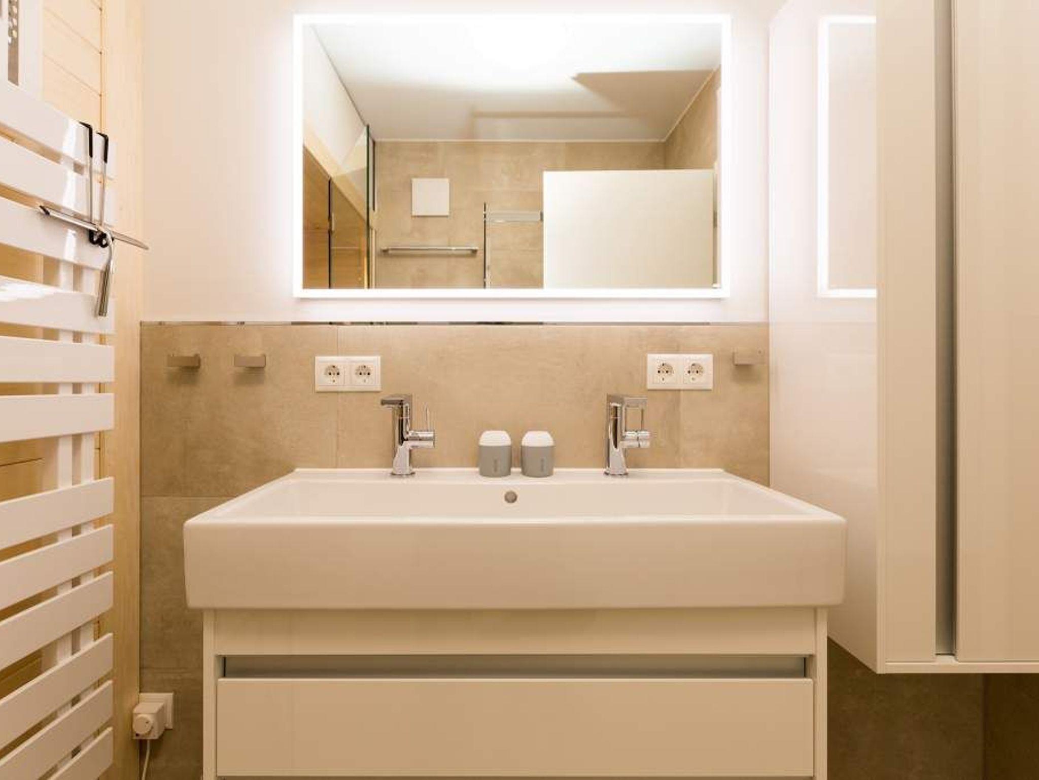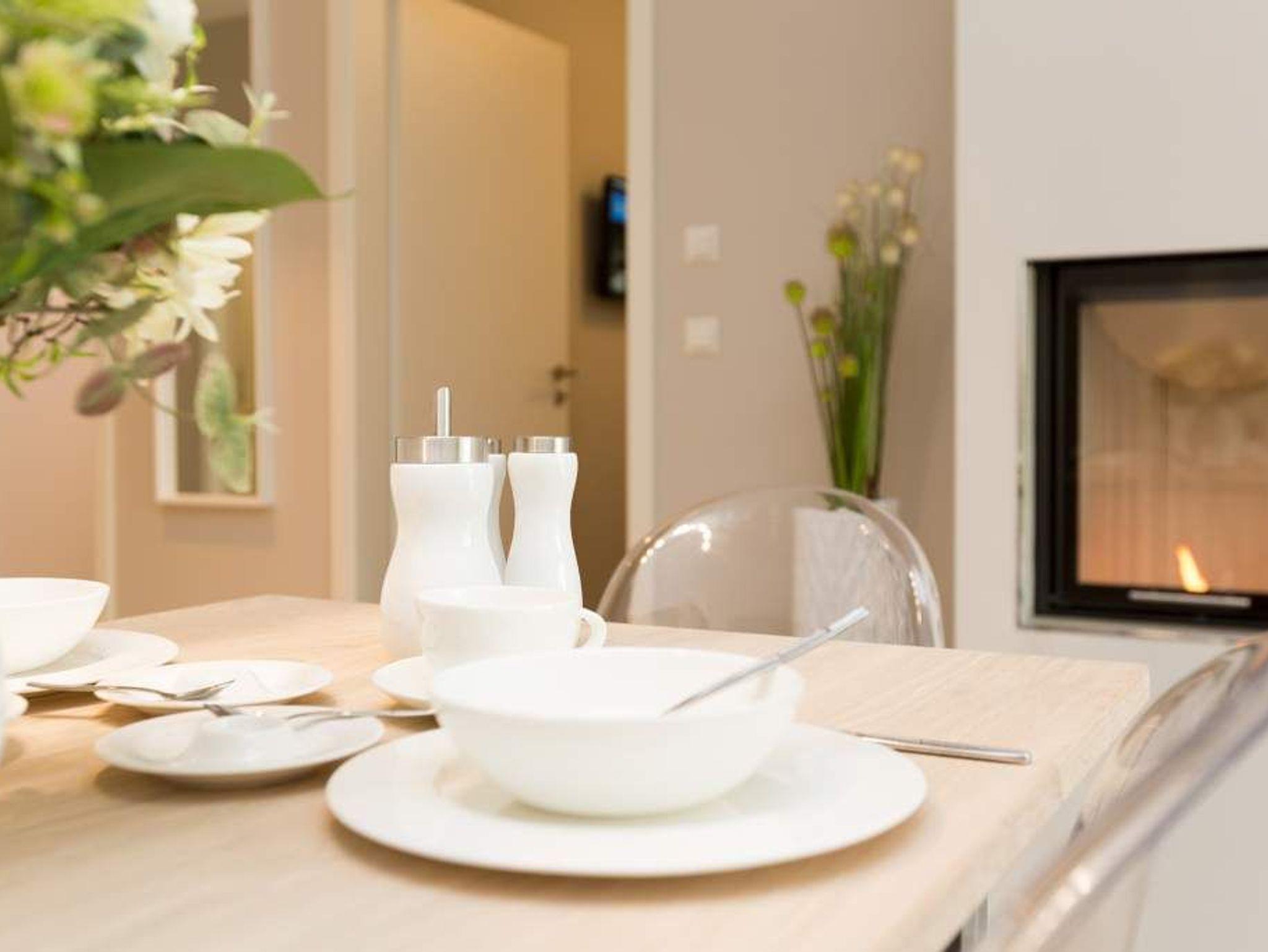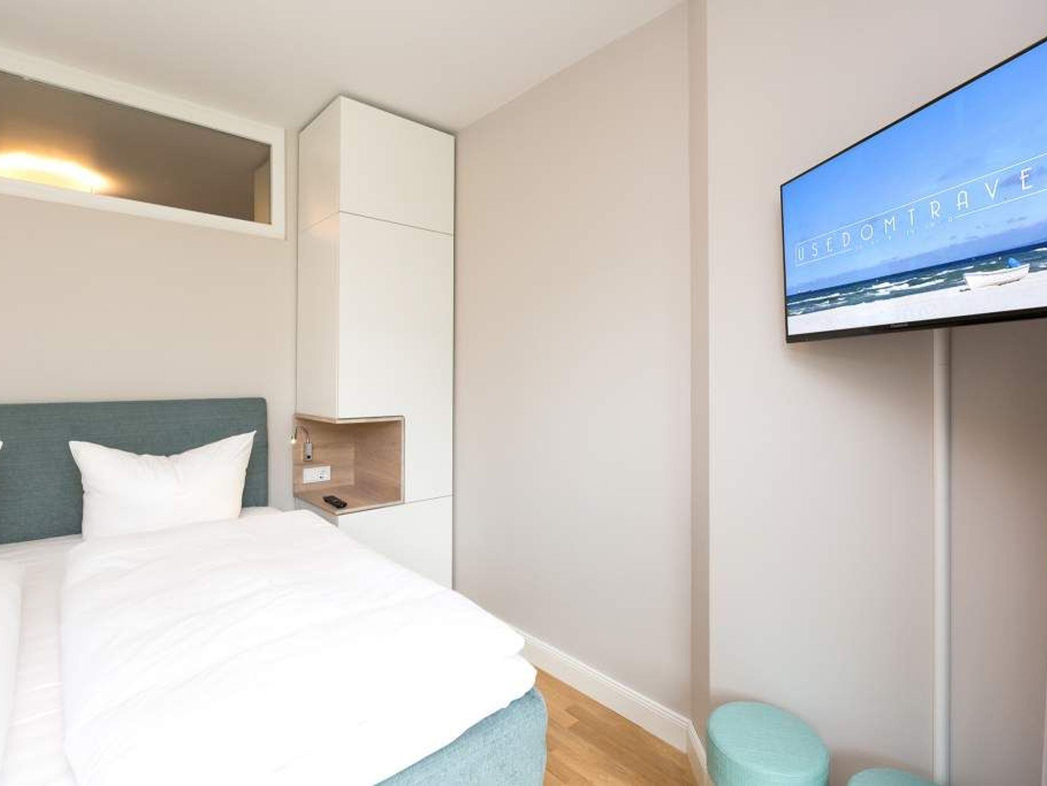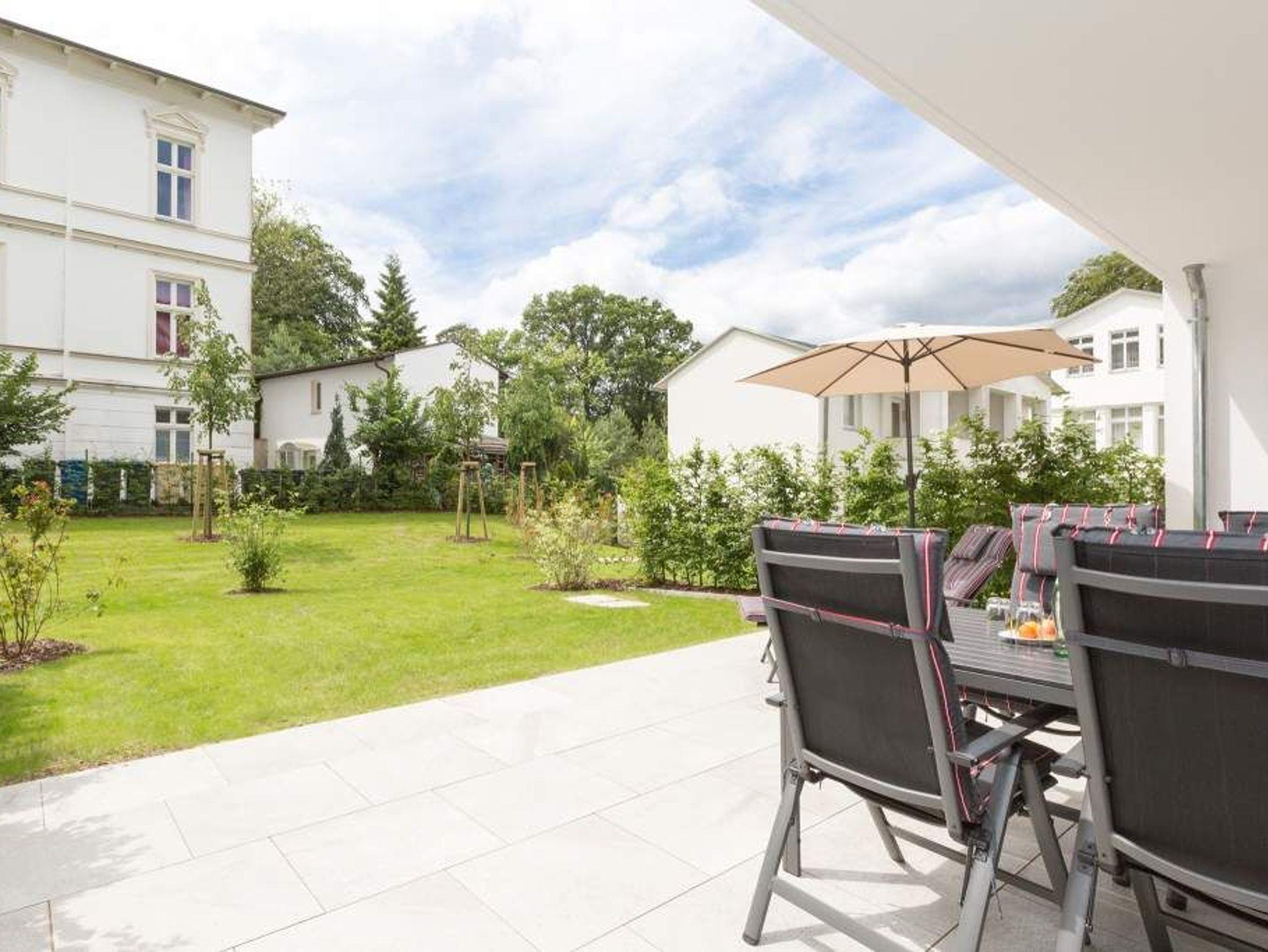 Vogelzwitschern und das sanfte Rauschen der Ostsee: Umgeben von wunderschönen, alten Bäumen atmet die 2017 fertig gestellte Villa Strandgrün das Flair der sie umgebenden Bädervillen. Mit seinen Balkonen und Erkern, die die Fassade untergliedern und auflockern, passt sich das strandnahe (100 Meter) Urlaubsdomizil angenehm in das Bild der aufwendig sanierten Villen um sie herum ein und wirkt selbst wie eine Weiterführung der einst mondänen Architektur des 19. Jahrhunderts. Das stilvolle Äußere setzt sich im exklusiven und eleganten Wohndesign im Inneren fort. Jede Ferienwohnung verfügt über eine Sonnenterrasse oder mehrere Balkone. Besondere Highlights eines jeden Appartements sind der Kamin, eine Sauna und je zwei Bäder bzw. ein zusätzliches Gäste WC. Die großzügigen 3- und 4-Raum-Suiten wurden mit allem Komfort konzipiert und ausgestattet. Vom ASA-Geschirr bis zu den hochwertigen Designmöbeln steht das Wohlfühlen an erster Stelle. In der Tiefgarage gibt es für jedes Appartement einen Stellplatz. Außerdem steht für jede Wohnung ein Briefkasten am Haus zur Verfügung.